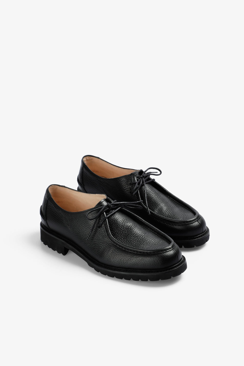 Zapatos confeccionados 100% piel. Detalle de ribete de cuero en toda la parte superior / lengüeta. Etiqueta tejida en la solapa en el talón y plantilla de goma antideslizante. Cierre con cordones.