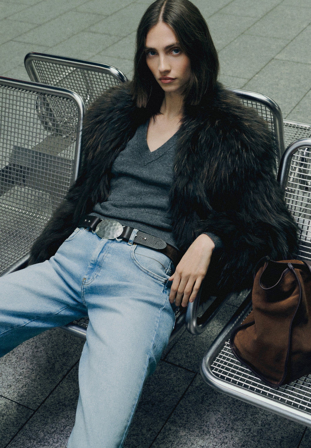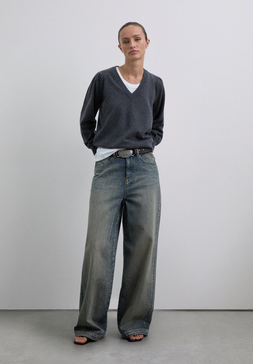 Jersey confeccionado en mezcla de lana con escote en V. Regular fit. Manga larga ligeramente abullonada acabadas en puño en rib. Detalle de calavera bordada a tono en parte trasera.