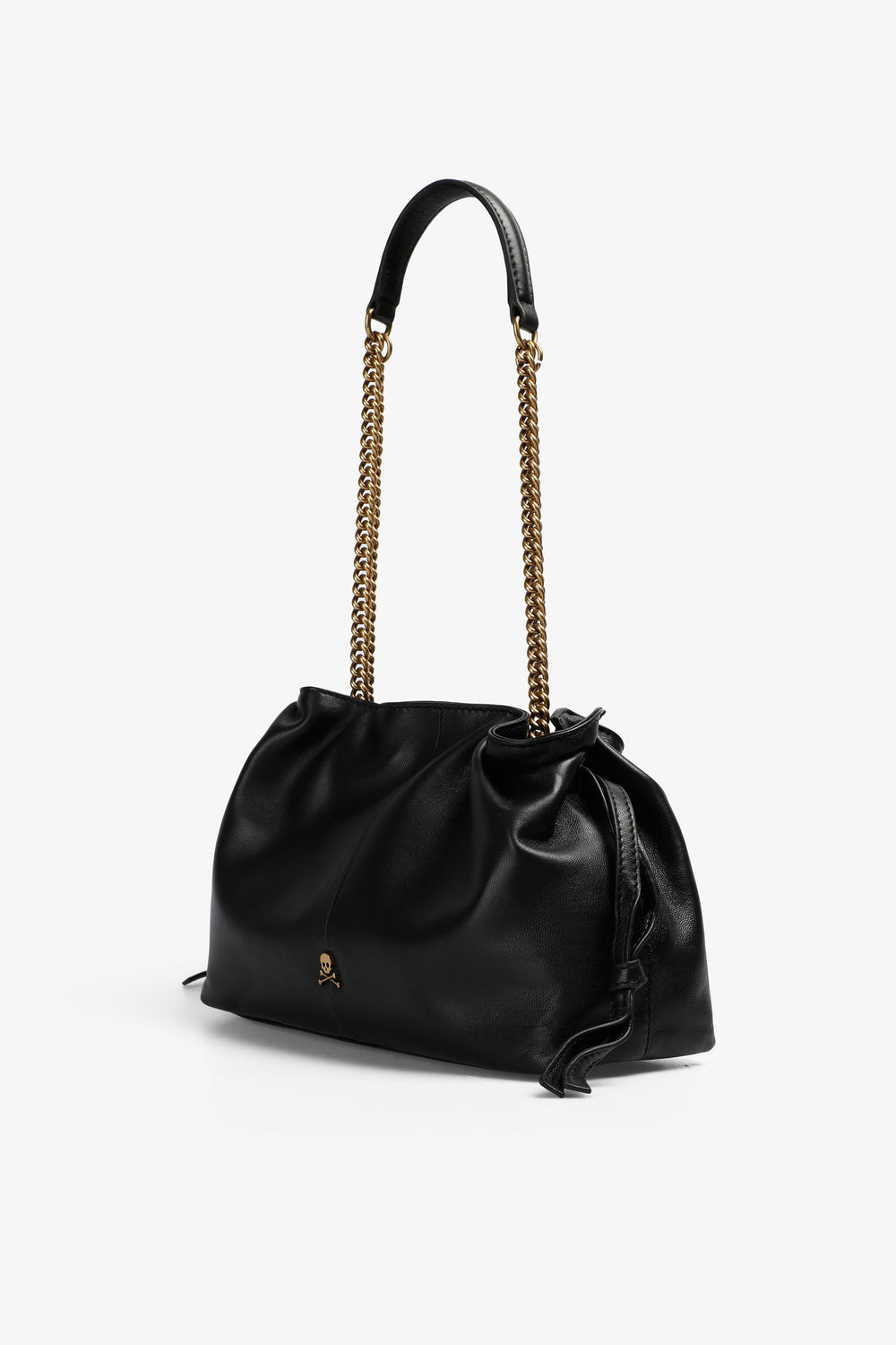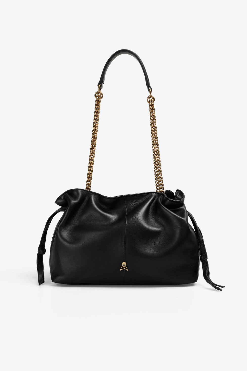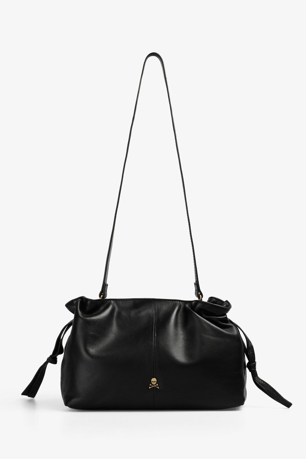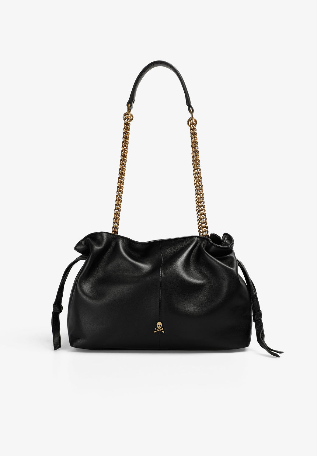 Bolso confeccionado en 100% piel. Compartimento interior. Cadena de hombro. Cierre mediante botón. Ajustable en lateral. Detalle de calavera en metal en frontal.