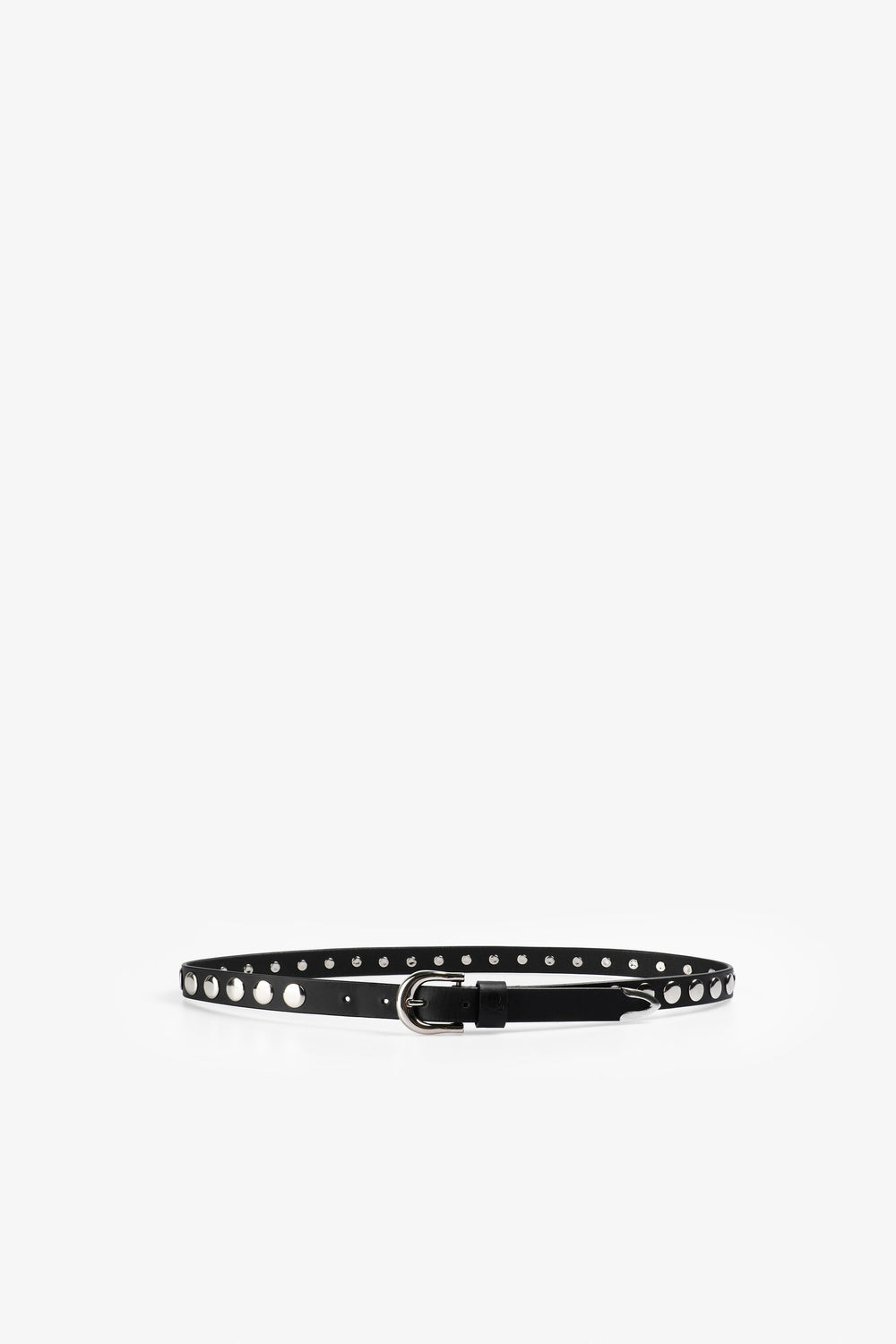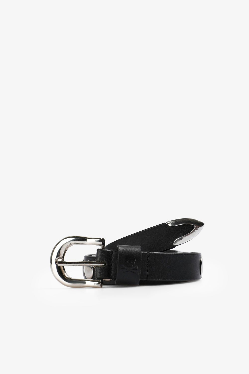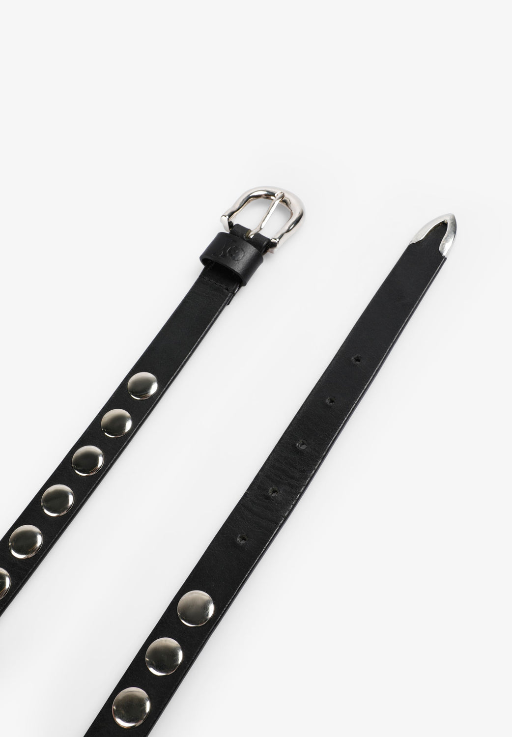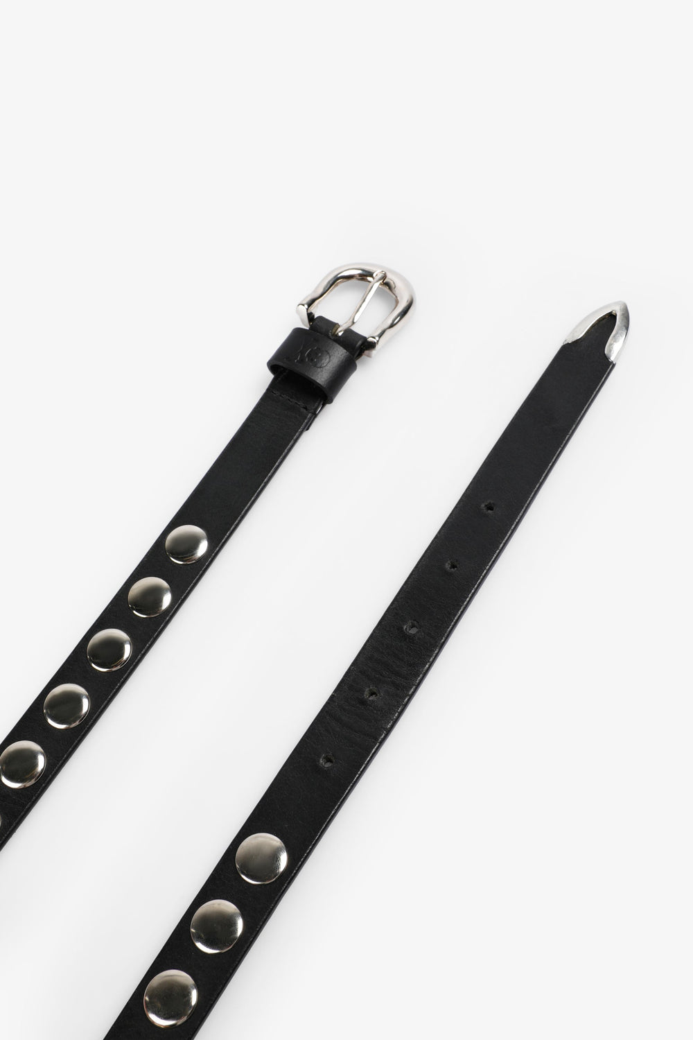 Cinturón confeccionado en piel 100% con detalle de tachuelas en metal. Logo estampado.