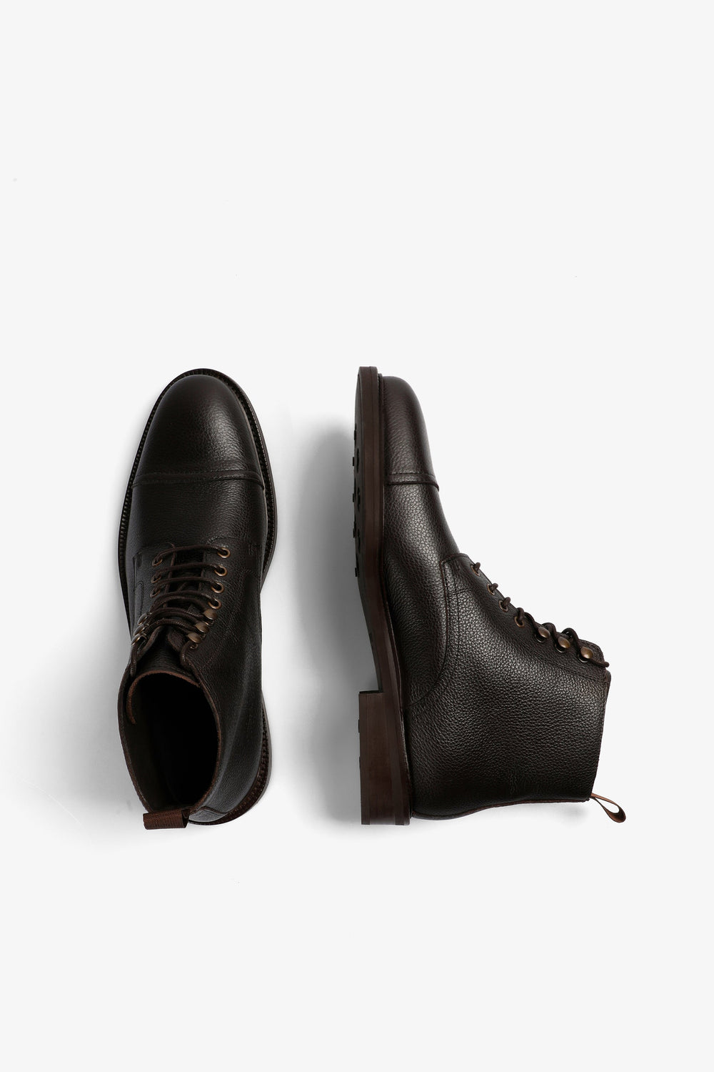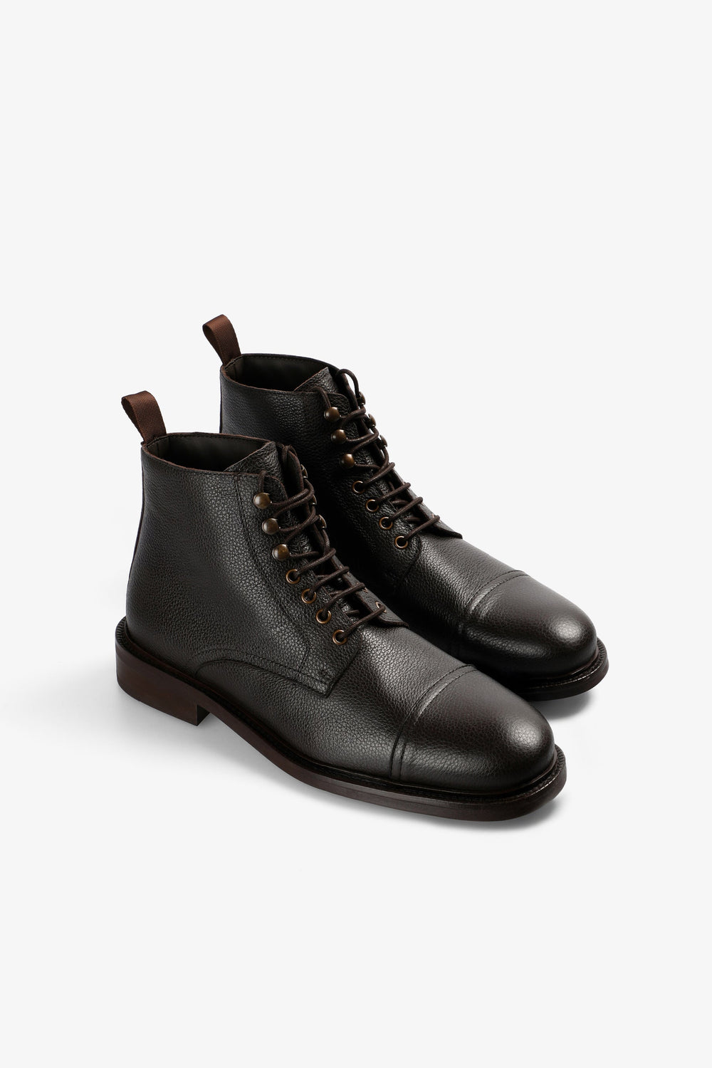 Botas confeccionadas en 100% piel de vacuno. Cierre ajustable mediante cordones. Lengüeta en talón. Forro interior confeccionado en piel.