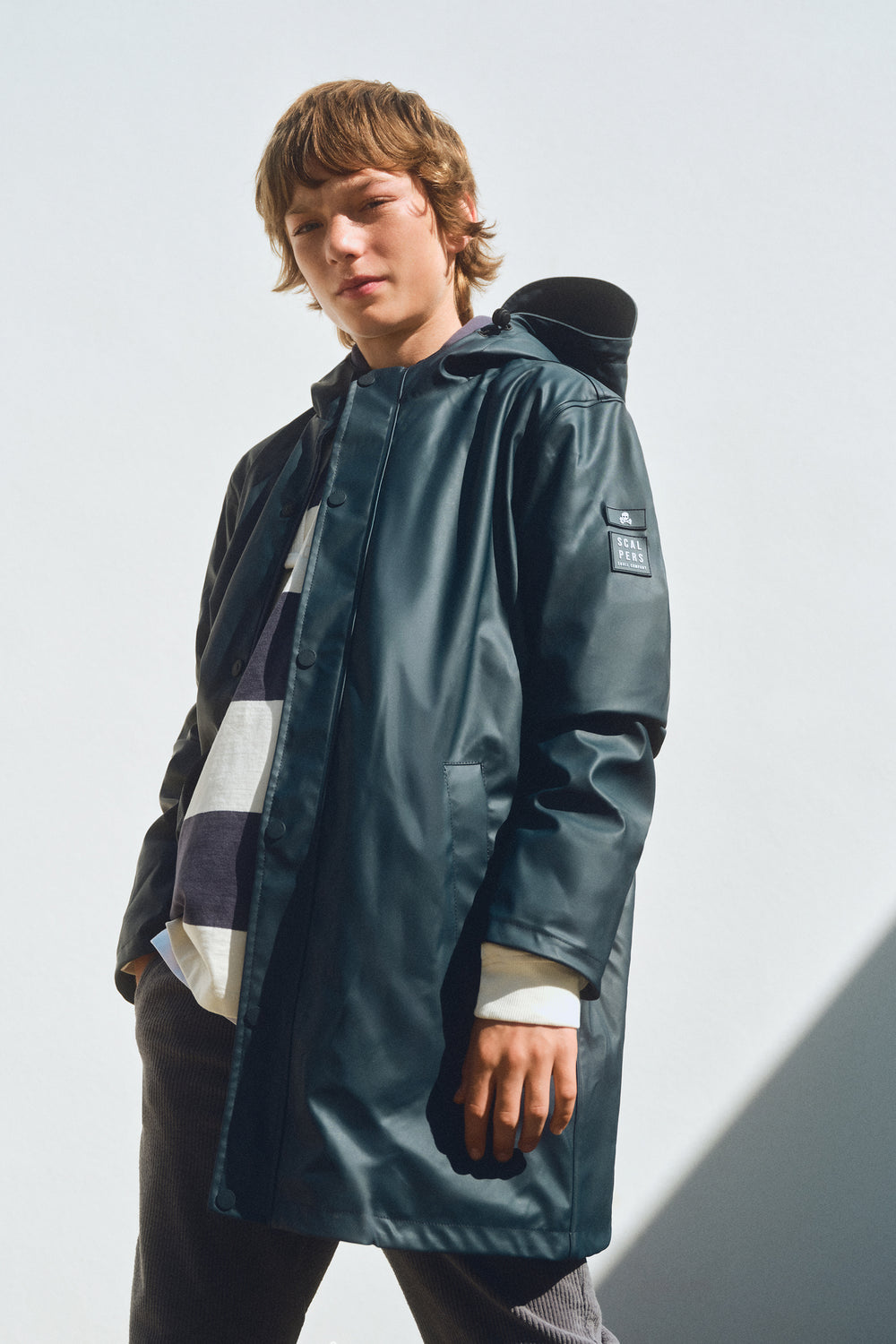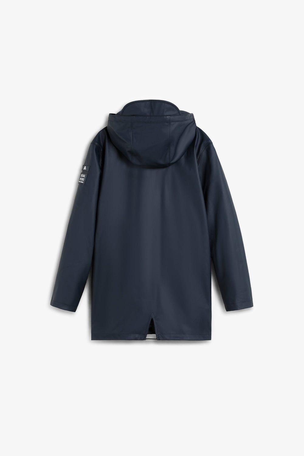 Parka impermeable con capucha ajustable. Bolsillos laterales con tapeta y snap. Forro interior sintético. Detalle de parche engomado con logo y calavera. Cierre mediante abotonadura. Manga larga.