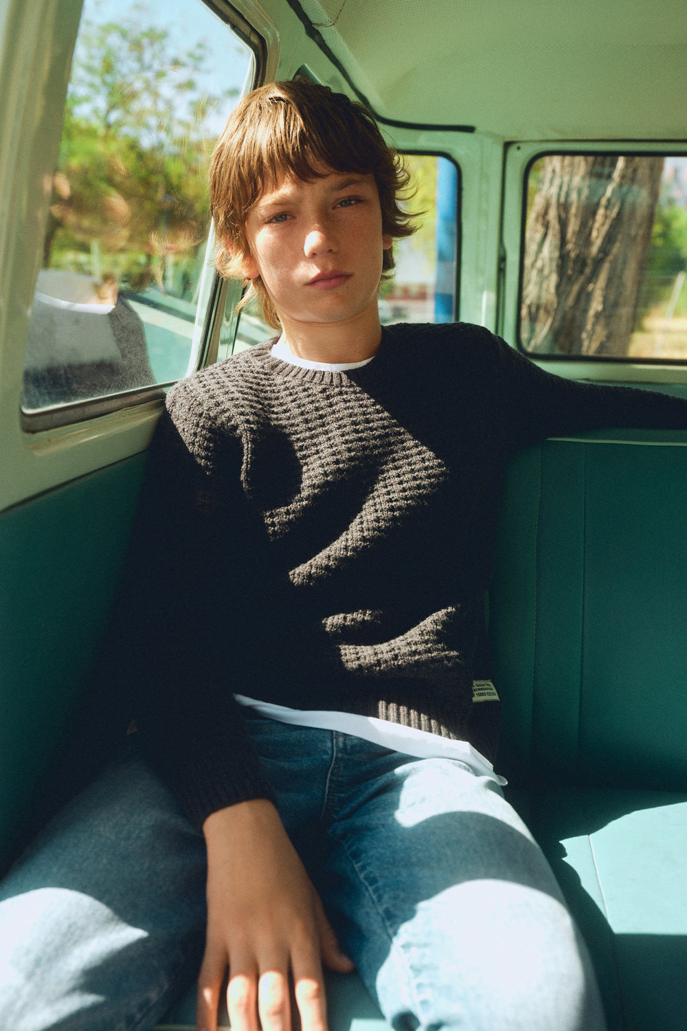 Jersey estructura. Confeccionado en mezcla de lana. Corte Regular Fit. Manga larga. Cuello redondo. Detalle de parce bordado en el bajo.