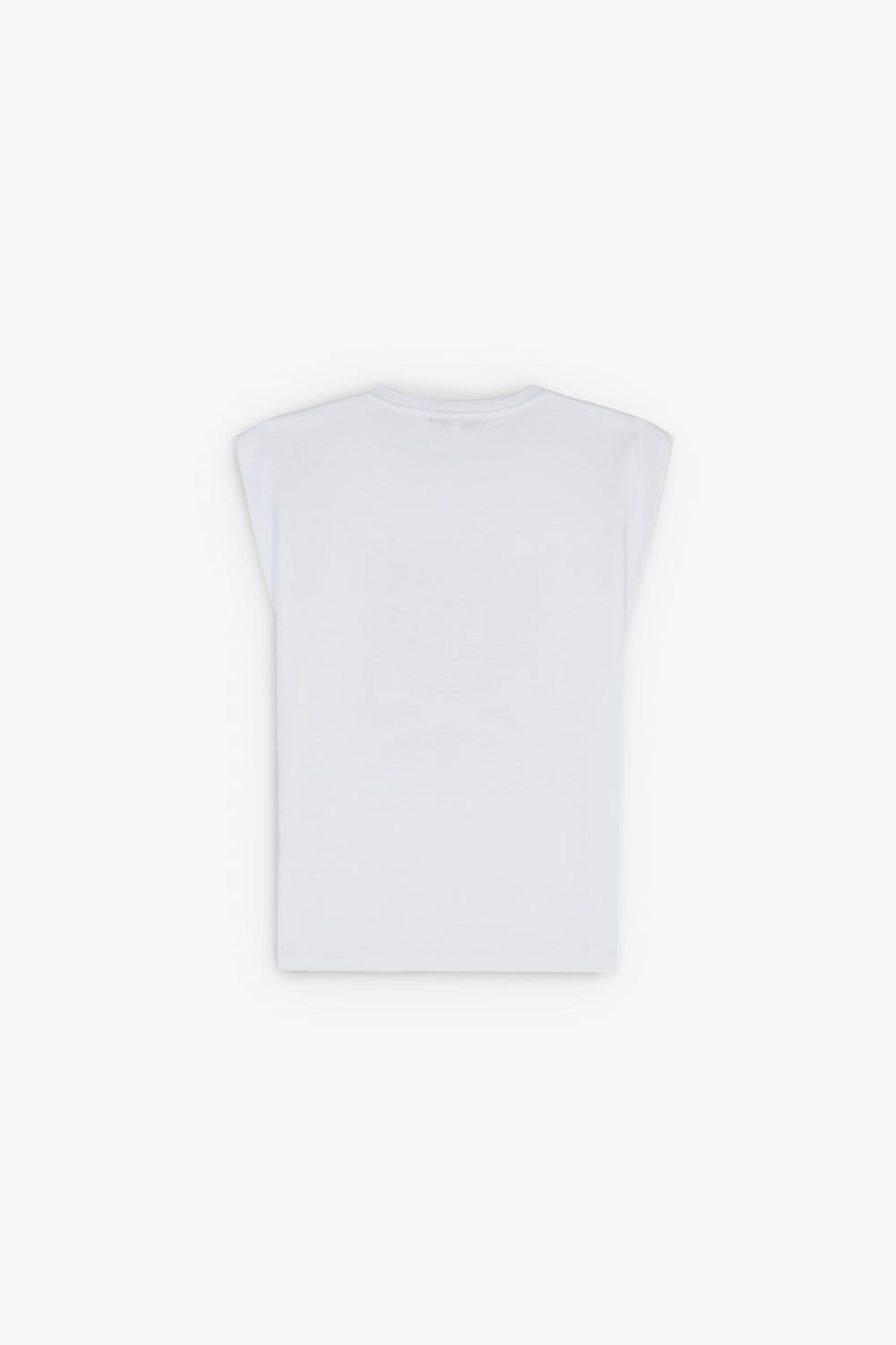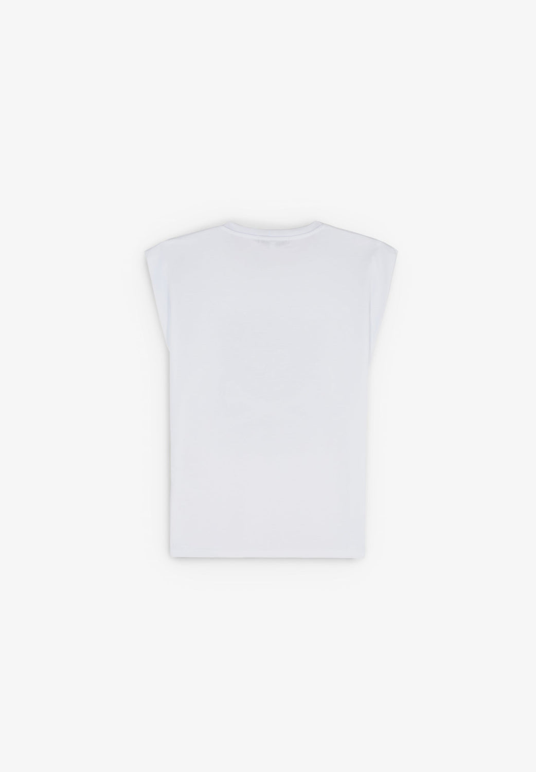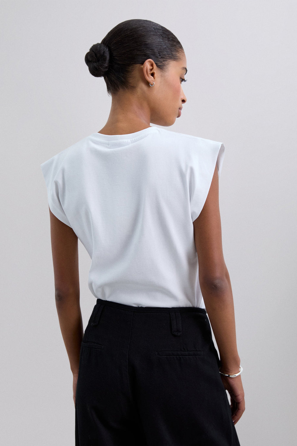Camiseta confeccionada en 100% algodón. Corte regular fit, cuello redondo y manga en sisa con pliegues.