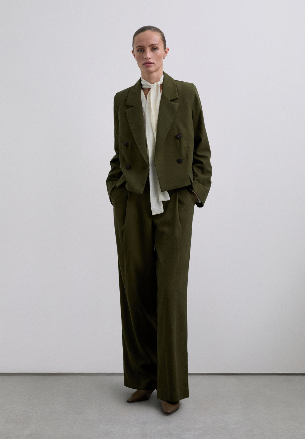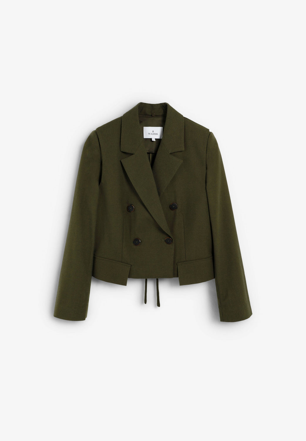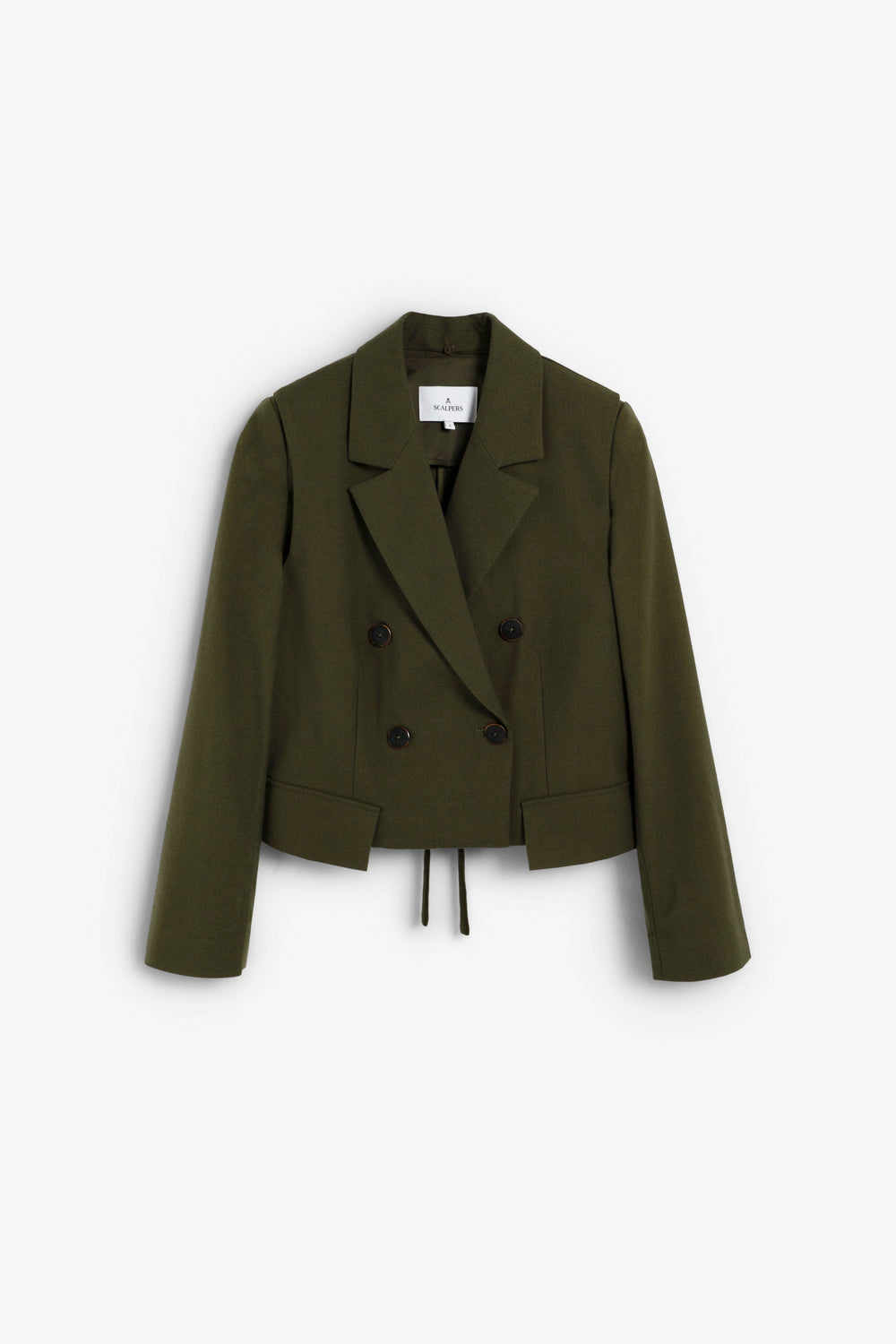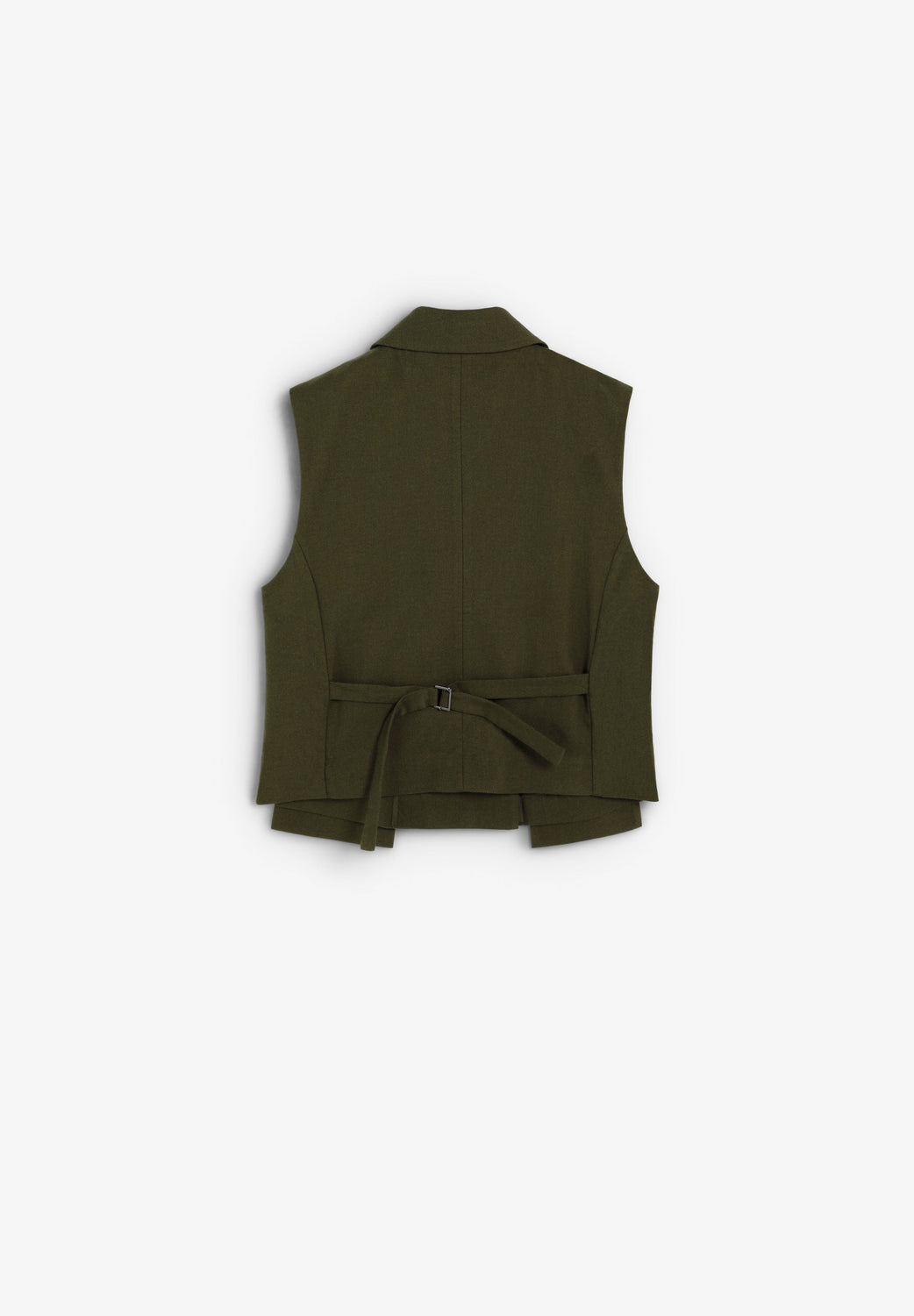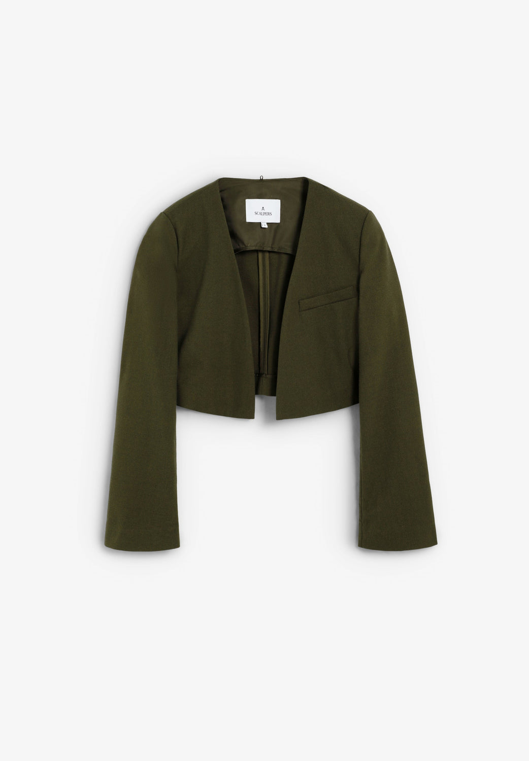 Blazer confeccionada en mezcla de viscosa. Desmontable en chaleco y torera. Chaleco con cuello de solapa, manga en sisa, cierre de botones y ajustable en parte trasera. Torera cropped, cuello sin solapa, manga larga y bolsillo en pecho de vivo.