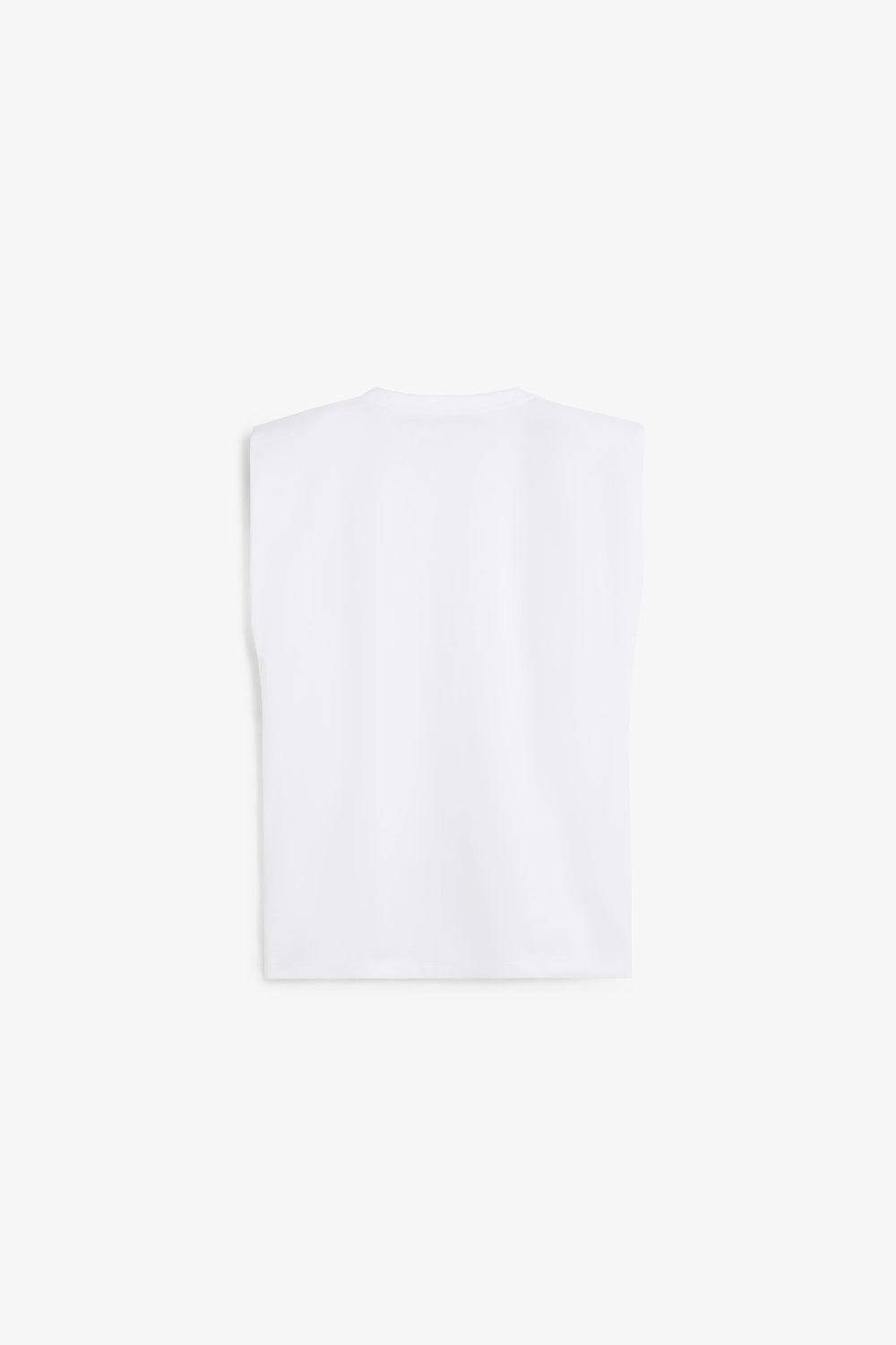 Camiseta confeccionada en 100% algodón BCI. Regular Fit. Cuello redondo y manga sisa. Detalle de tachuelas en hombros.