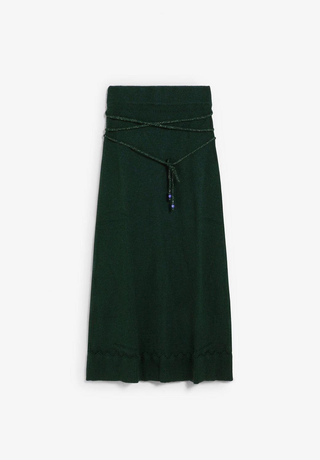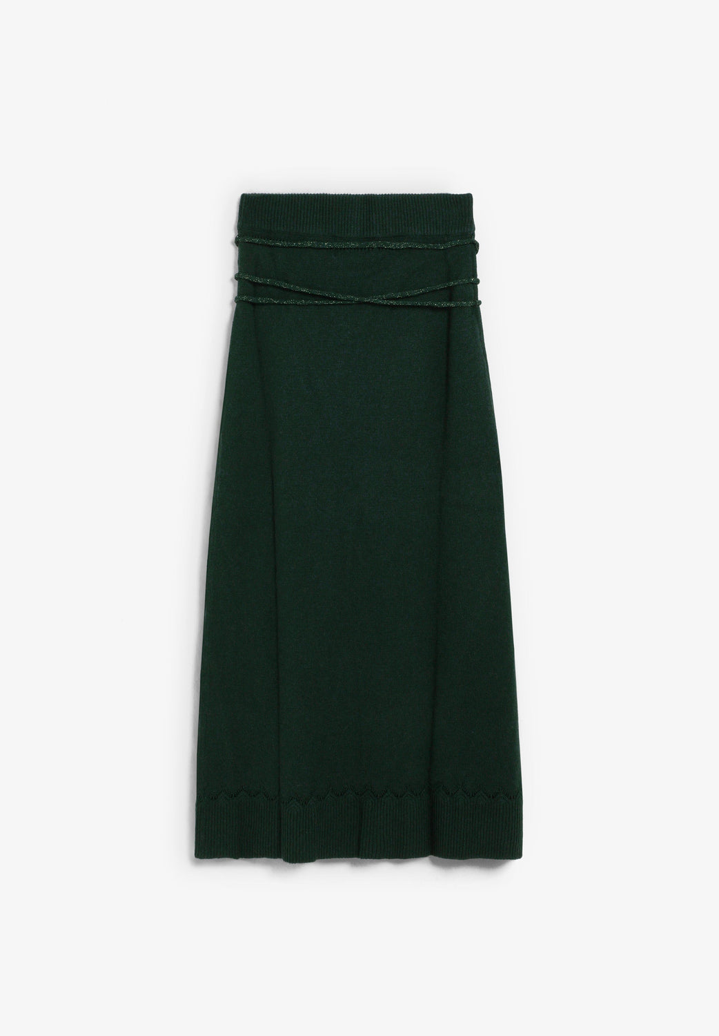 Falda de punto confeccionada en mezcla de lana. Regular fit. Corte midi. Cinturilla elástica. Detalle de cordón con hilo metalizado y cuentas en cintura.