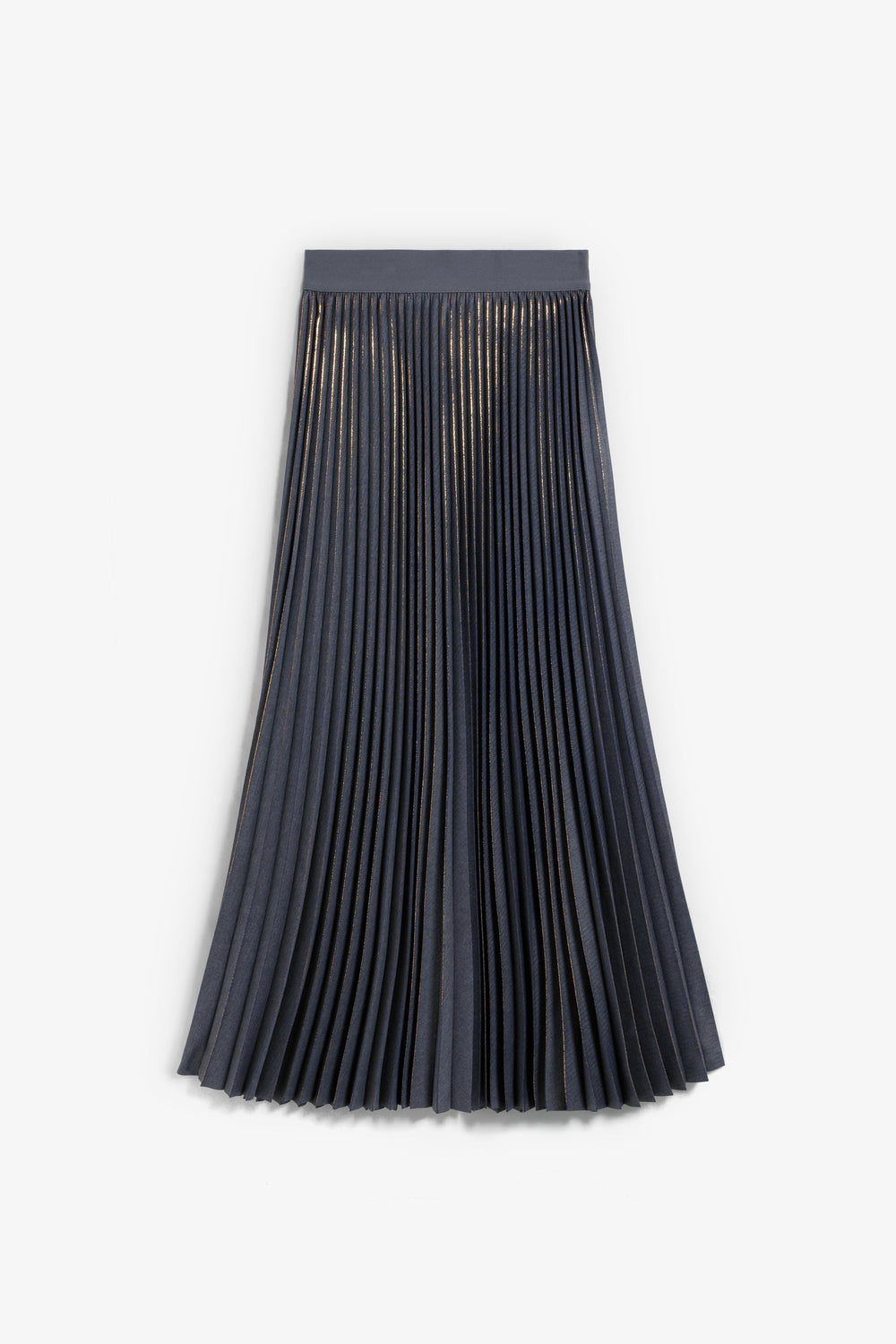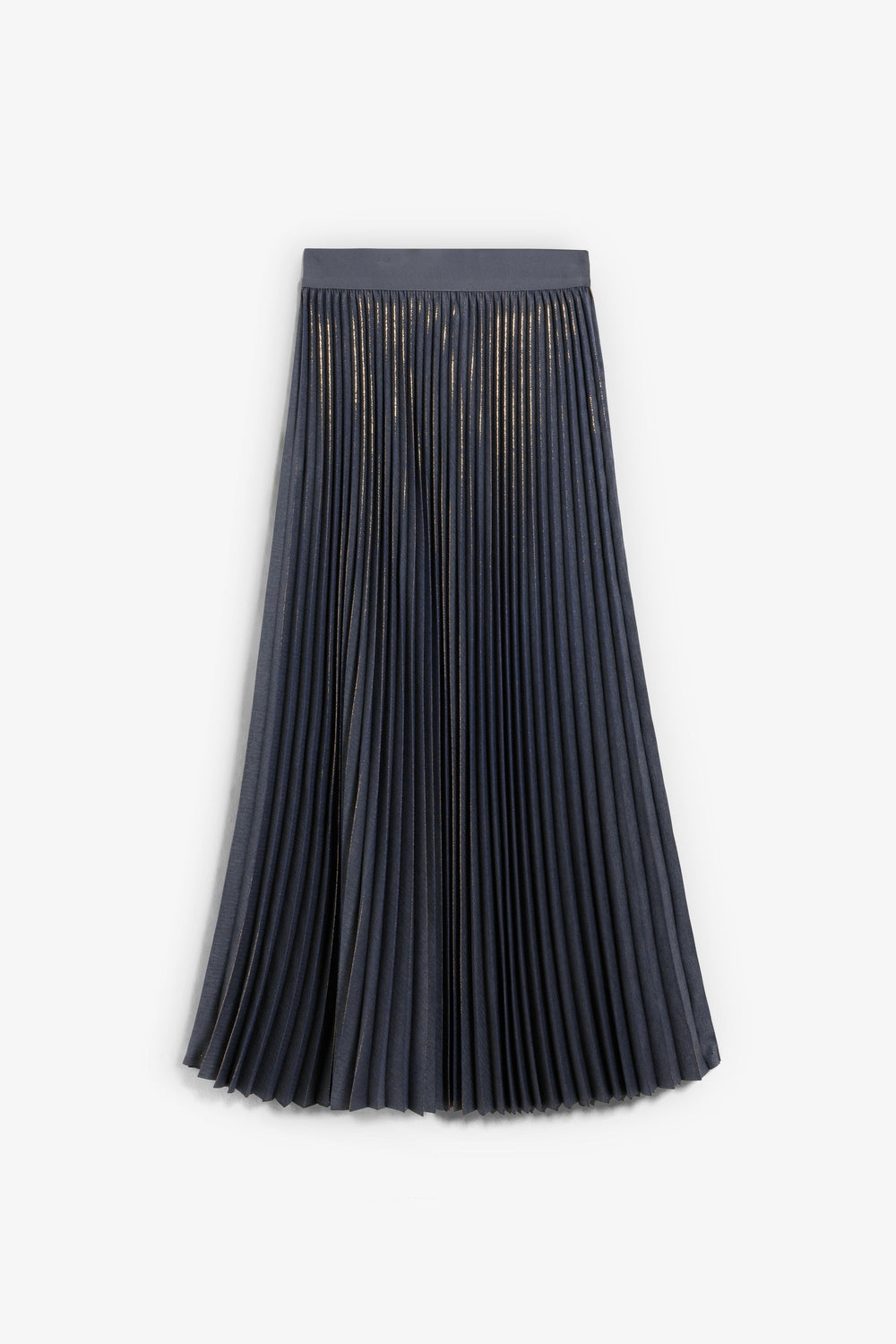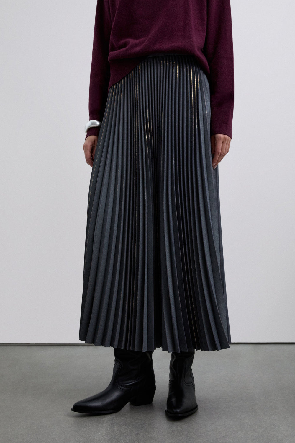 Falda midi plisada a tablas confeccionada en tejido fluido con detalles de lúrex en pliegues. Regular fit. Cinturilla elástica.