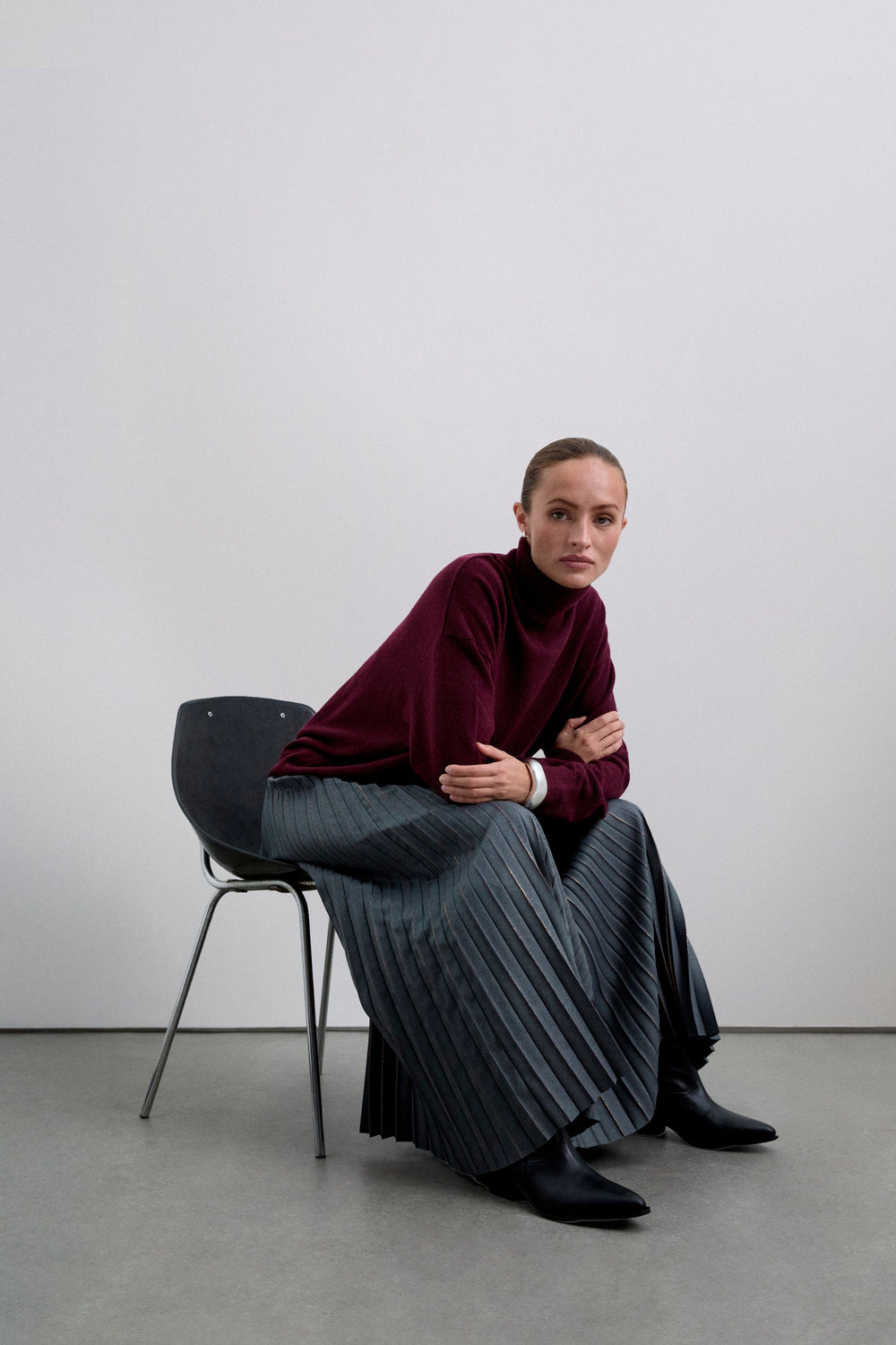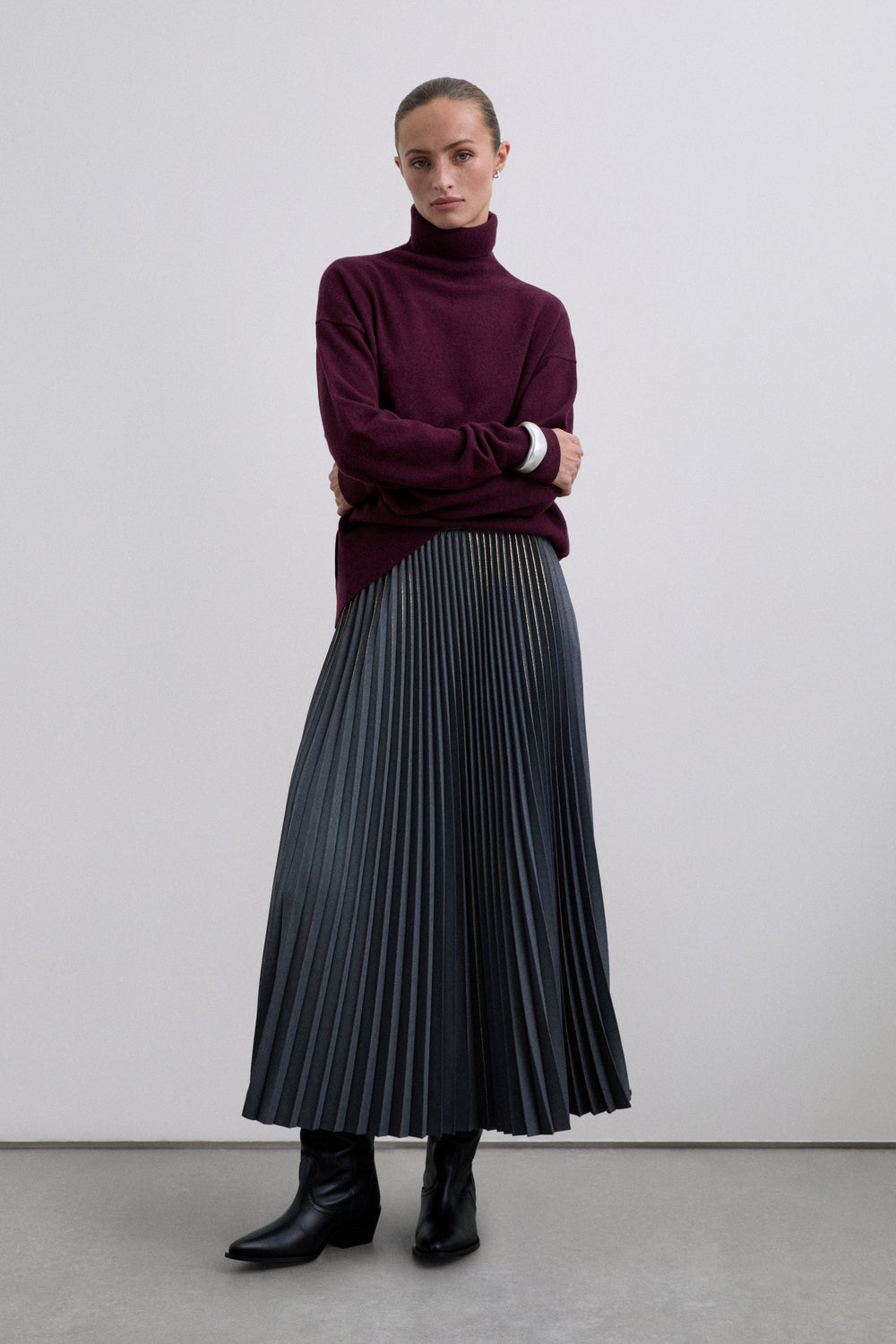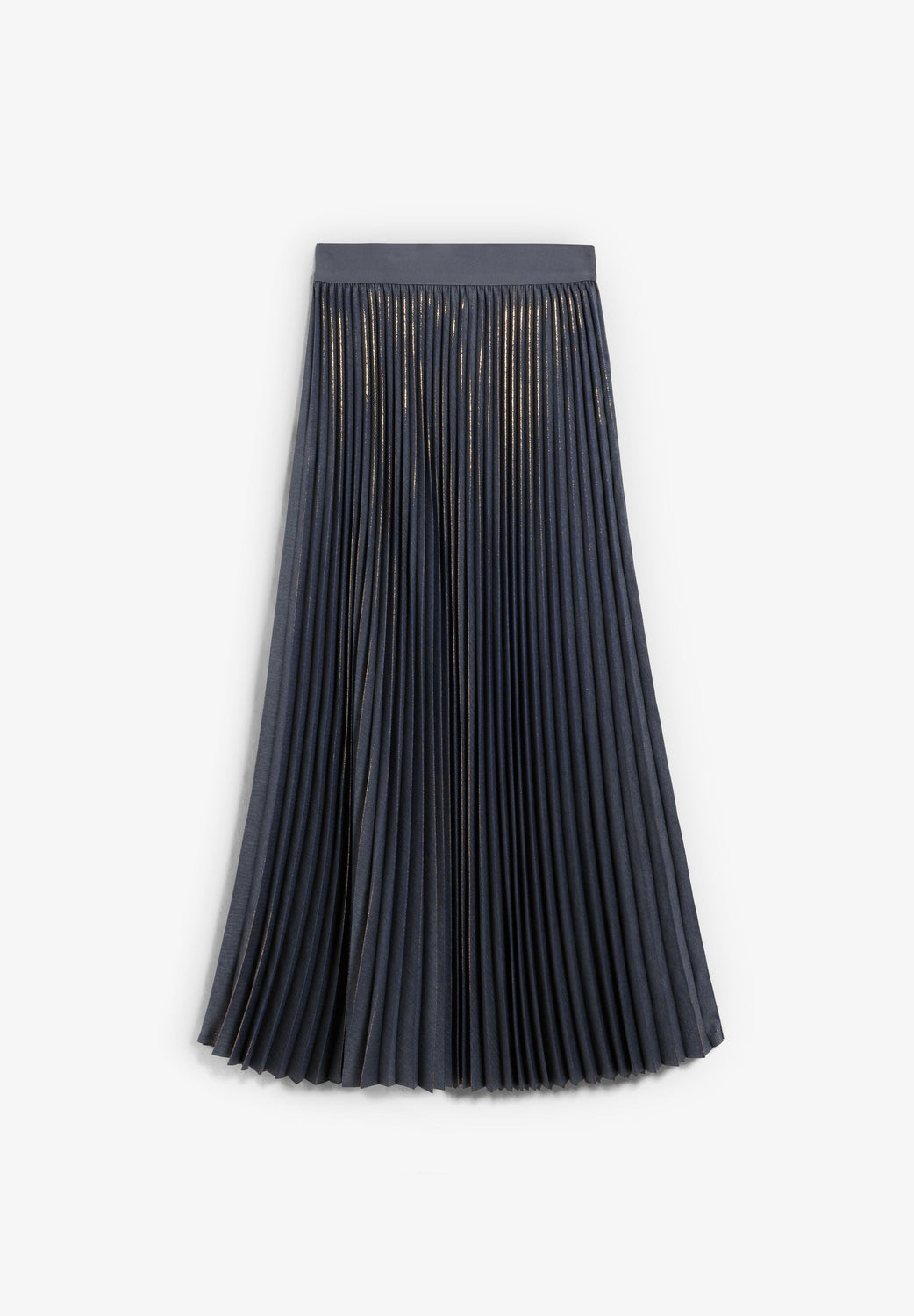 Falda midi plisada a tablas confeccionada en tejido fluido con detalles de lúrex en pliegues. Regular fit. Cinturilla elástica.