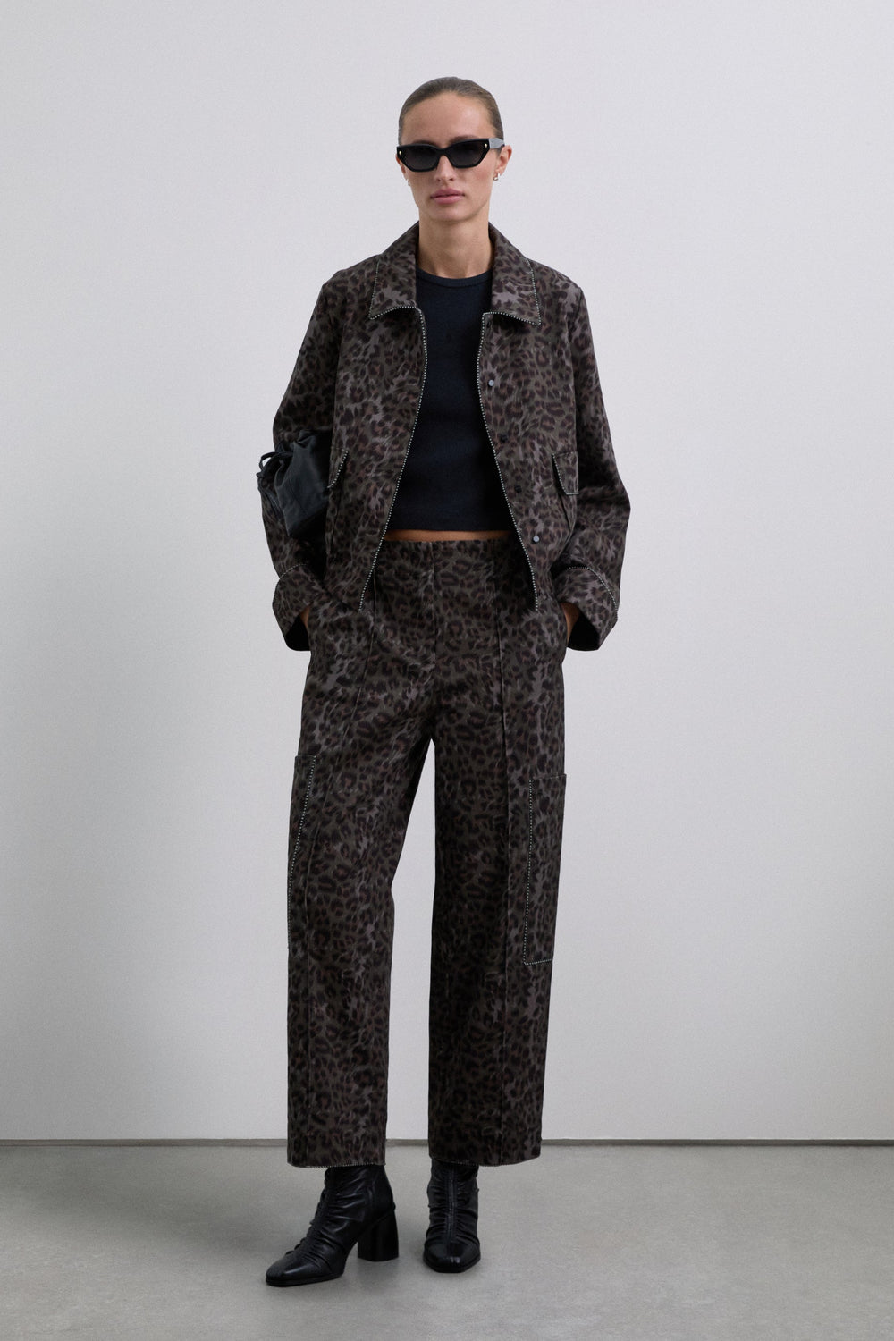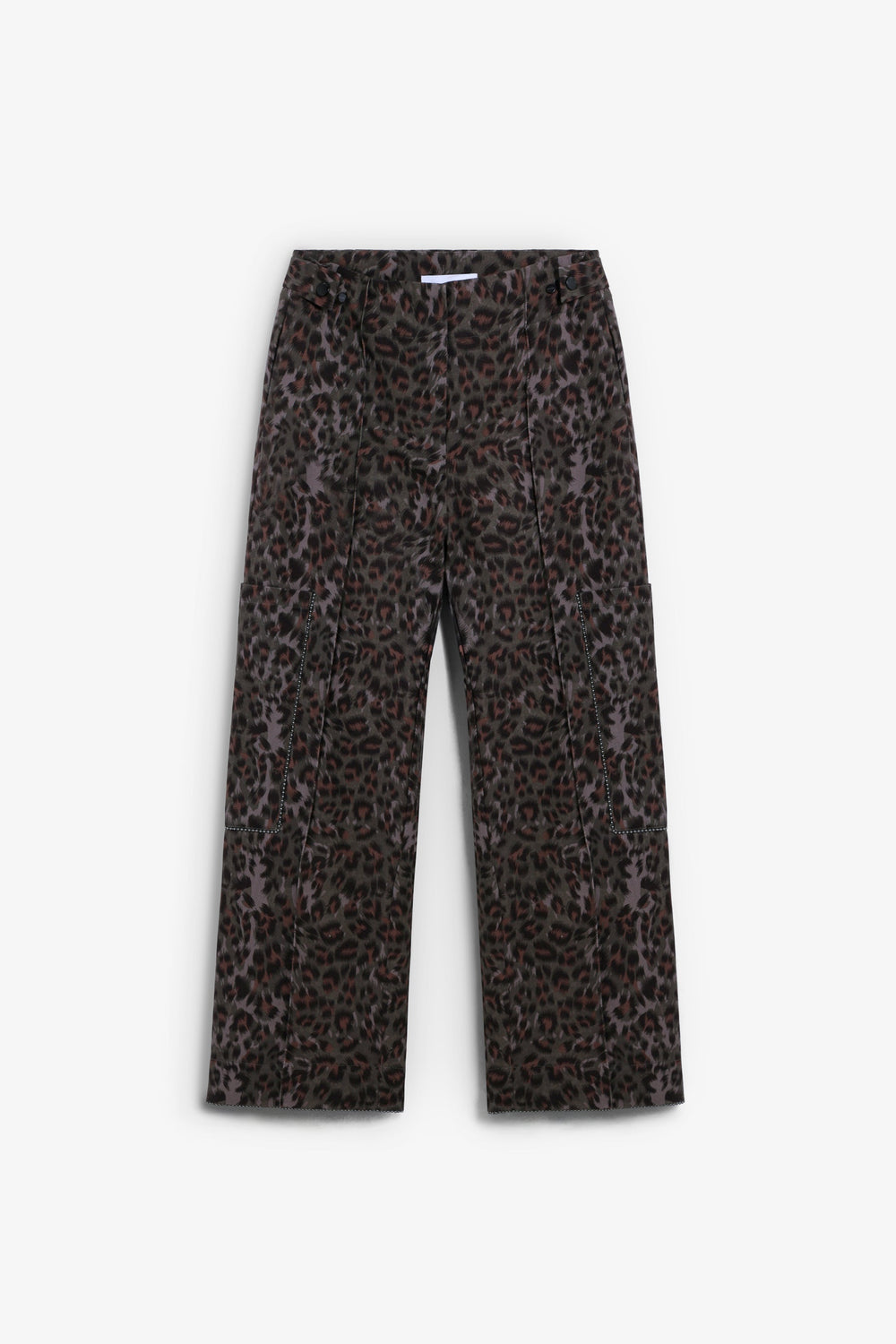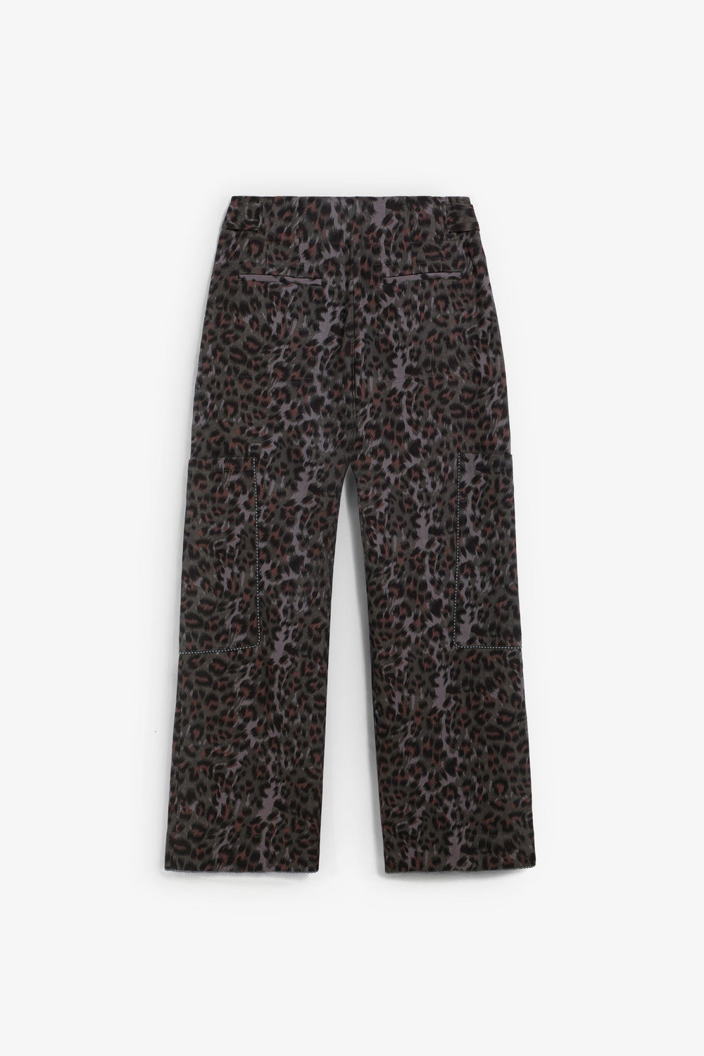 Pantalón estampado de animal print. Cierre con cremallera delantera. Bolsillos laterales estilo cargo. Detalles en las costuras principales. Botones ajustables en cadera.