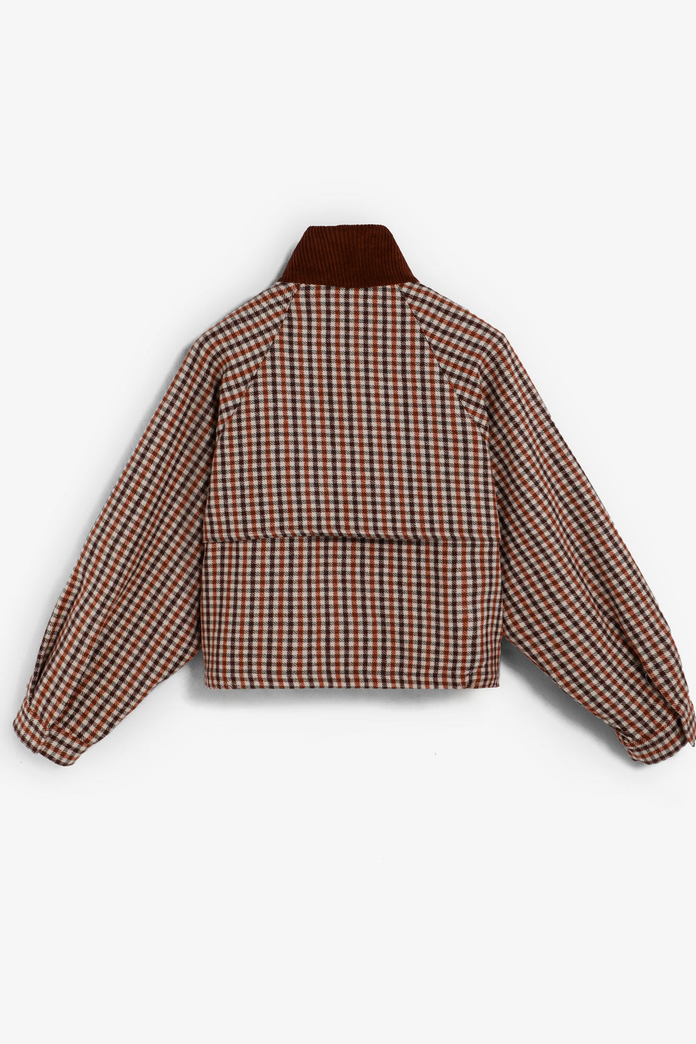 CHAQUETA BOMBER CUADROS CUELLO PANA