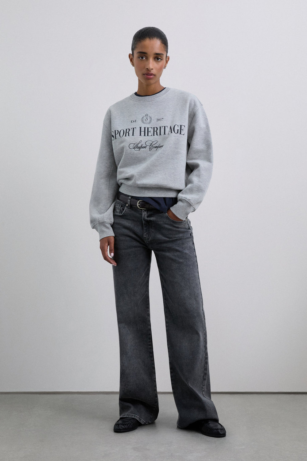 Sudadera confeccionada en algodón 100% BCI. Corte regular fit. Cuello redondo. manga larga con puños acabados en rib. Print frontal.