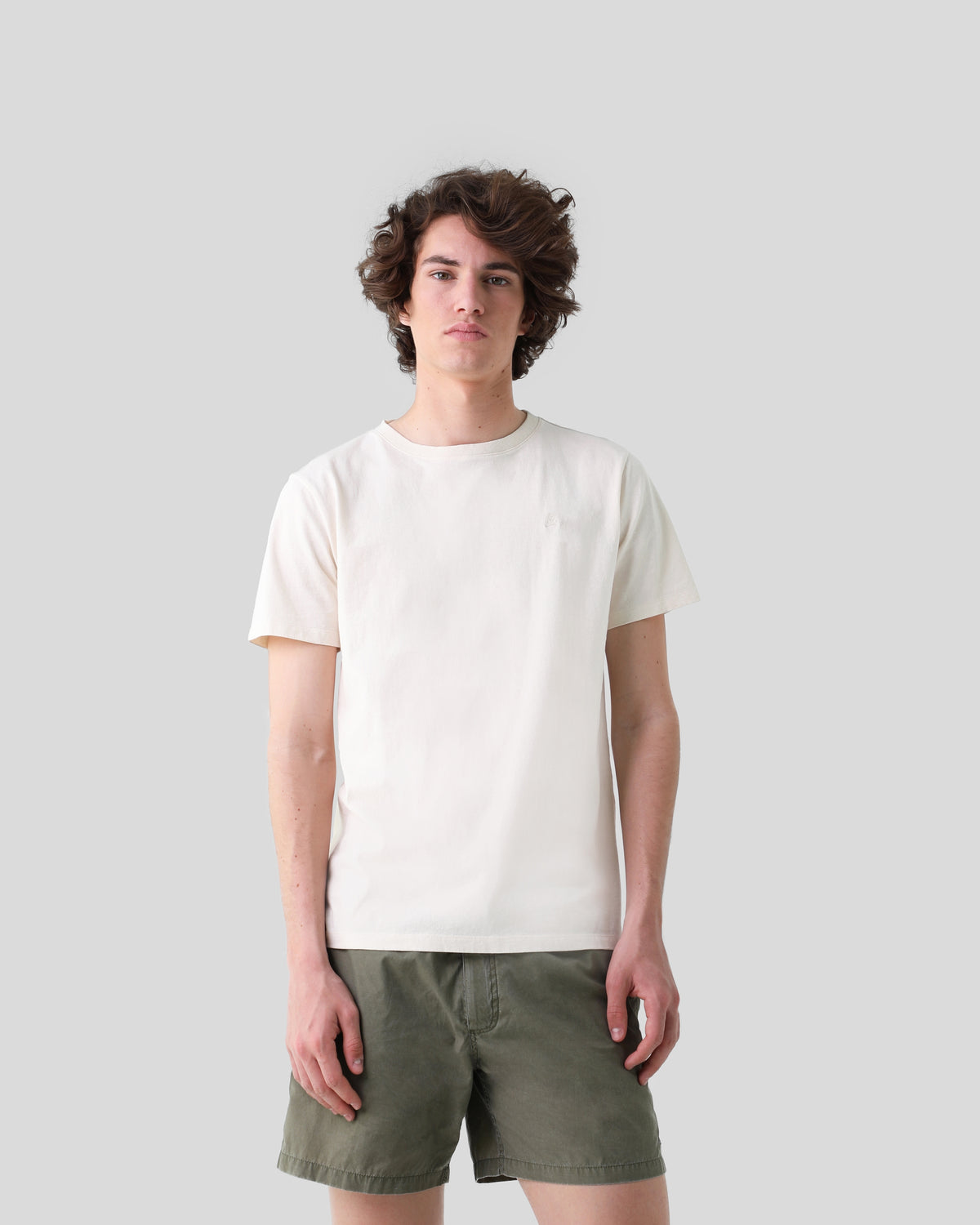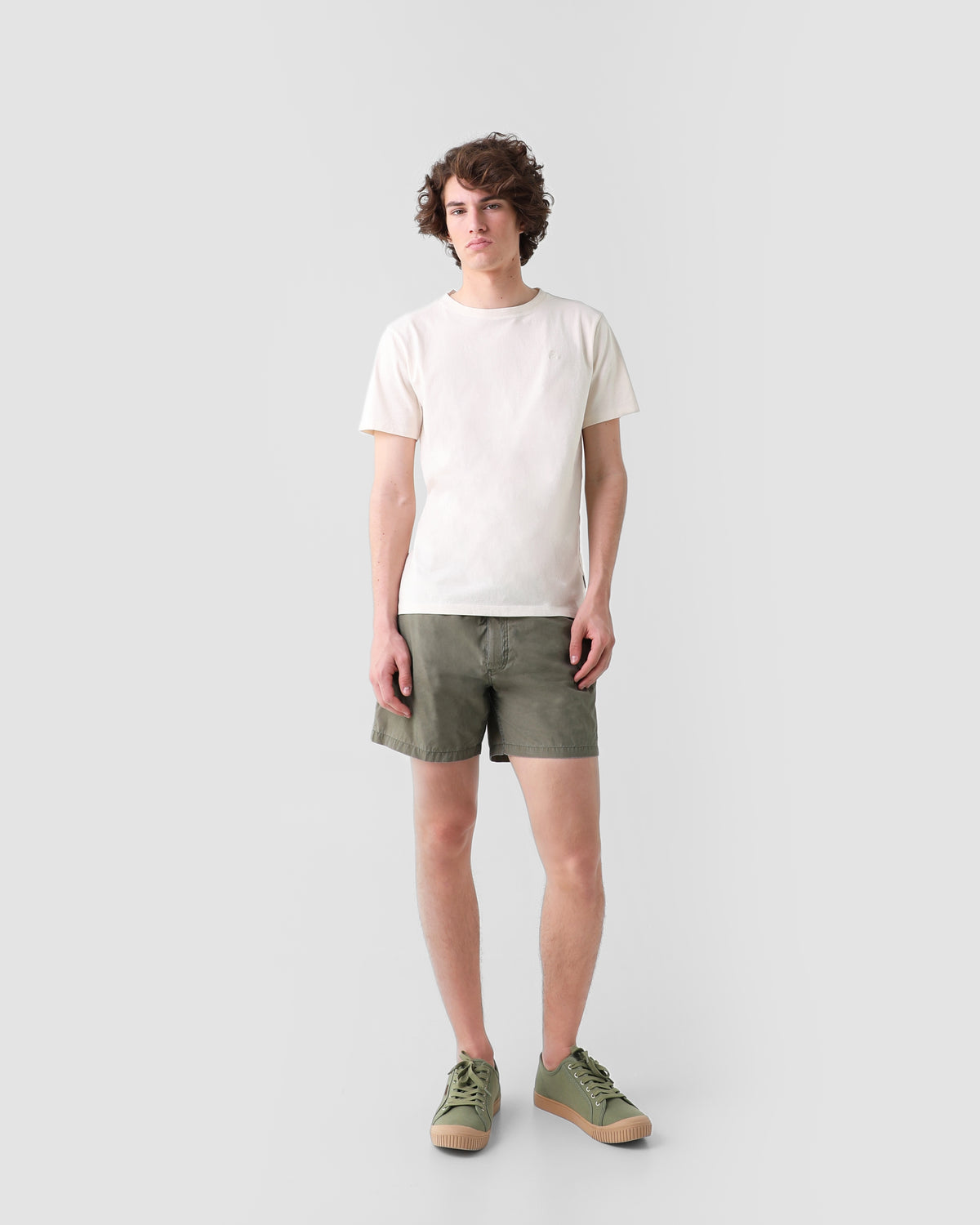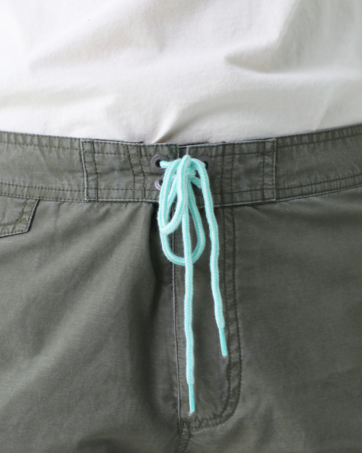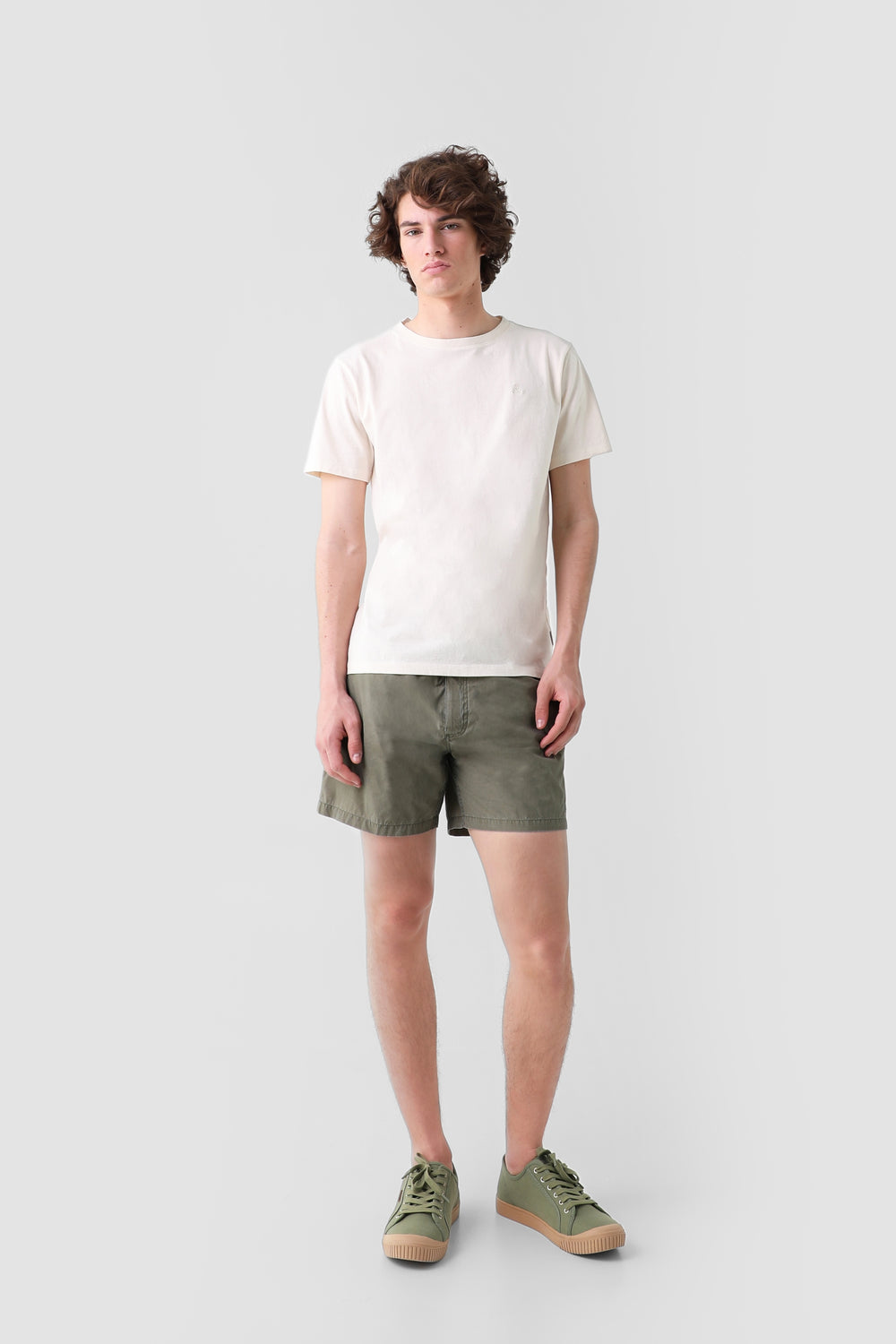 Bañador confeccionado en tejido liso de efecto delavé. Corte surfero, cierre con cordón ajustable y dos bolsillos laterales. Como detalle tiene un parche bordado en el bajo izquierdo.