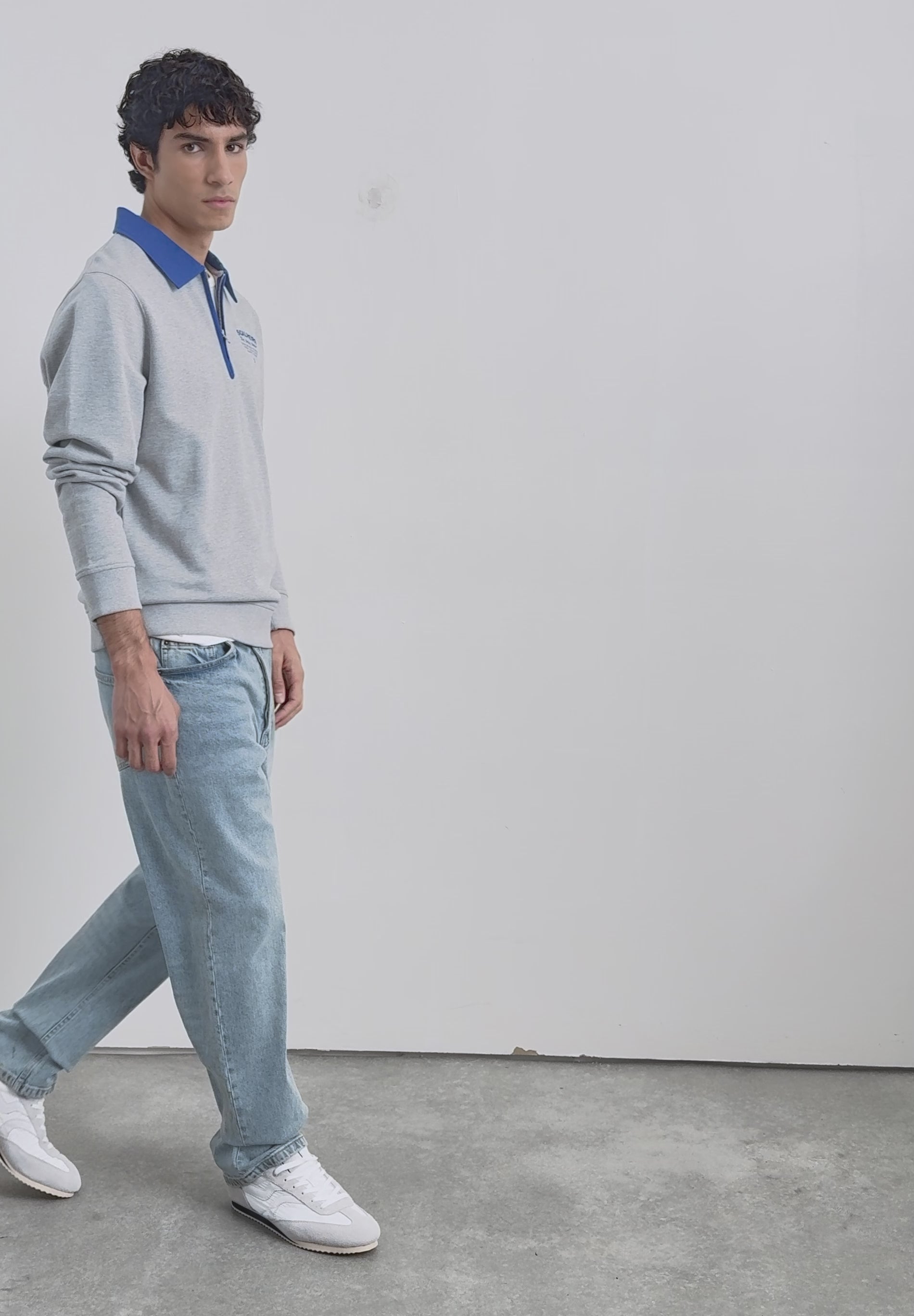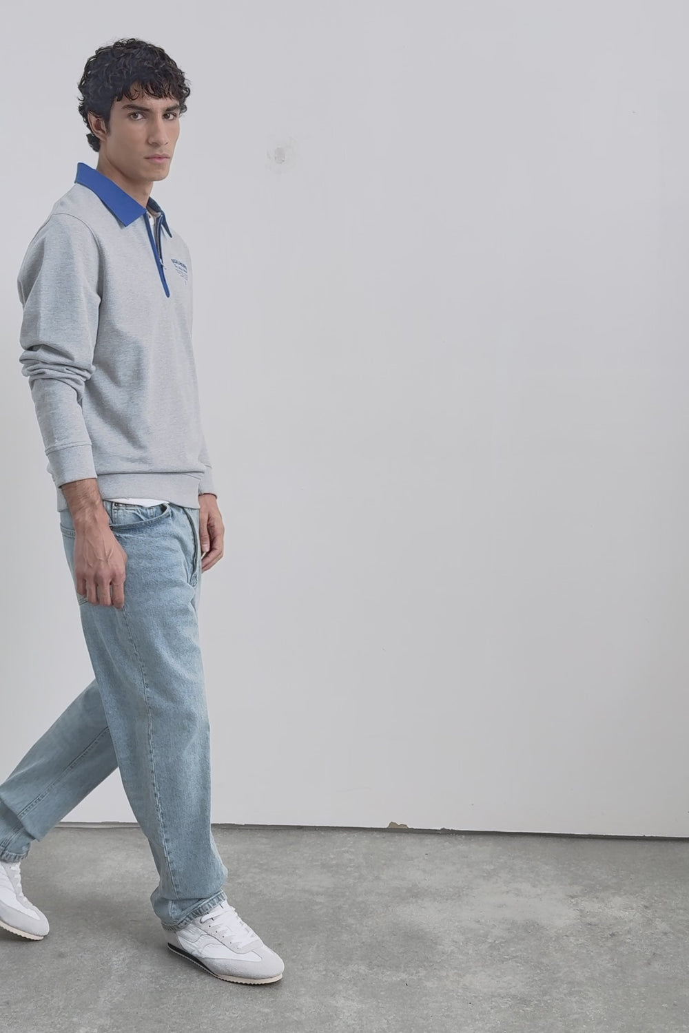 Sudadera confeccionada en 100% algodón BCI. Cuello polo con media cremallera. Corte Regular Fit. Manga larga. Detalle de logo y calavera bordados a contraste. Acabados en rib.
