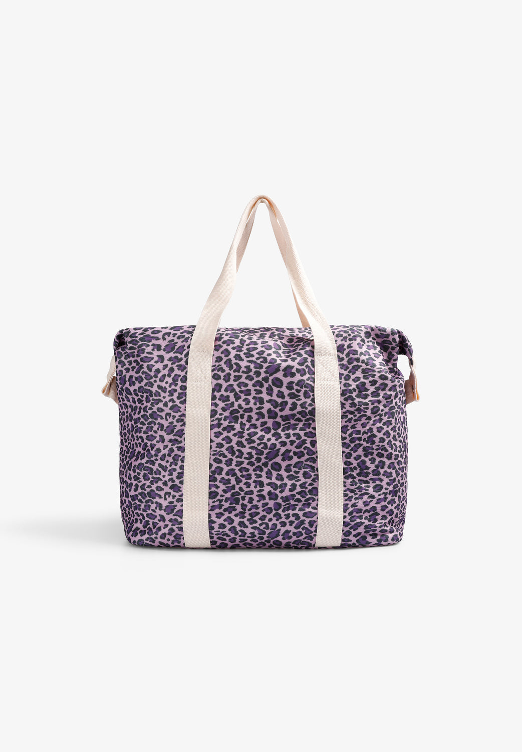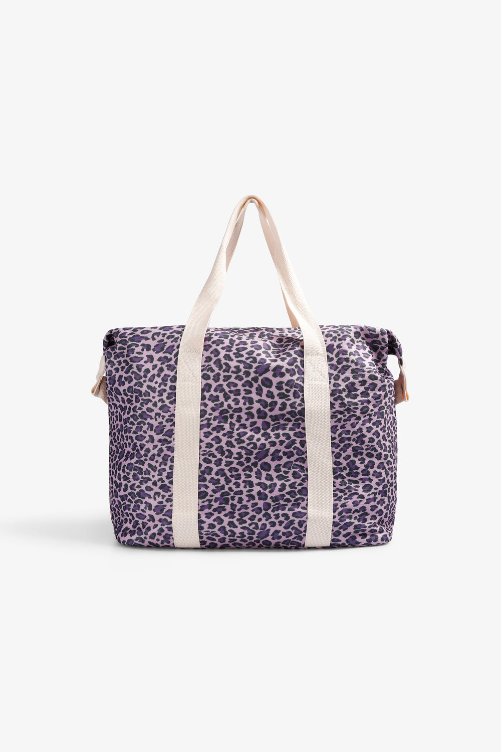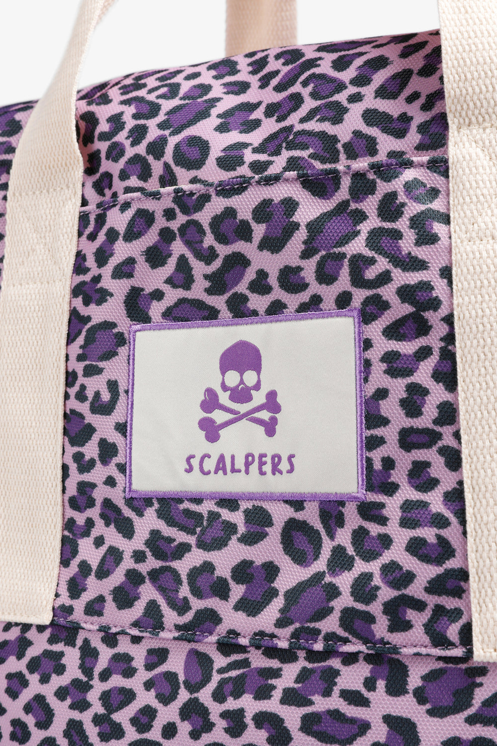 Bolsa de doble asa. Animal print. Etiqueta frontal bordada con logo y calavera. Cierre con cremallera. Detalle de logo en el interior.
