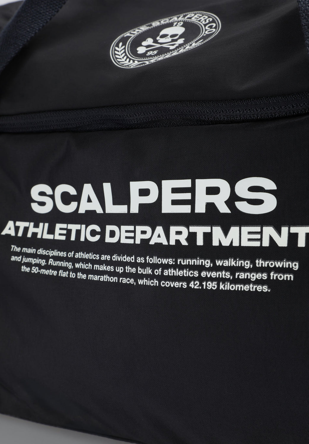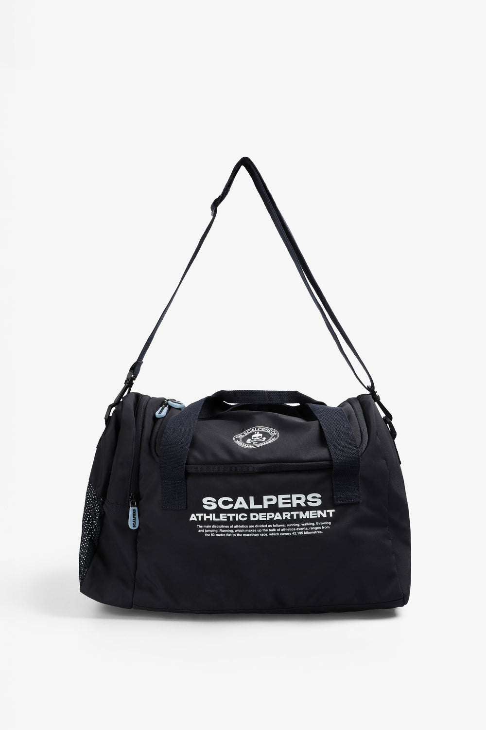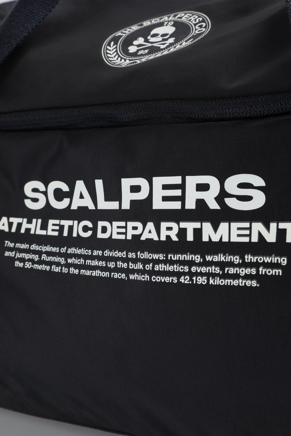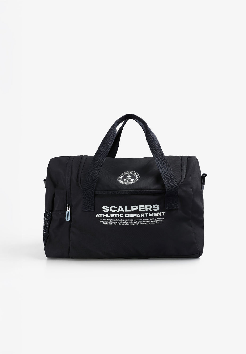 Bolsa confeccionada en tejido técnico. Compartimento principal con cierre por cremallera. Un bolsillo lateral con cremallera. Asa corta principal de hombro y asa larga desmontable. Print frontal con logo y calavera. Detalle de logo en cremallera.