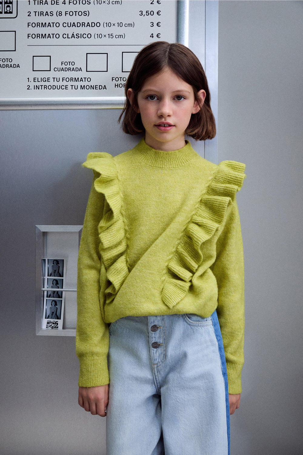 Jersey confeccionado en mezcla sintética. Manga larga. Corte regular fit. Cuello ligeramente alto y mangas acabados en rib. Detalles frontales de volantes.