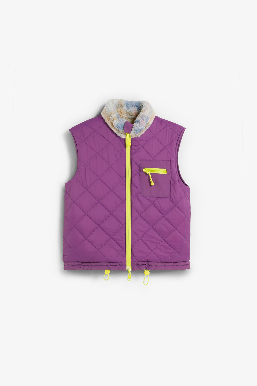 Chaleco reversible. Cintura ajustable. Bolsillo con cremallera en pecho a contraste. Cierre frontal con cremallera a contraste de doble carro. Detalle de parche engomado con logo en espalda.