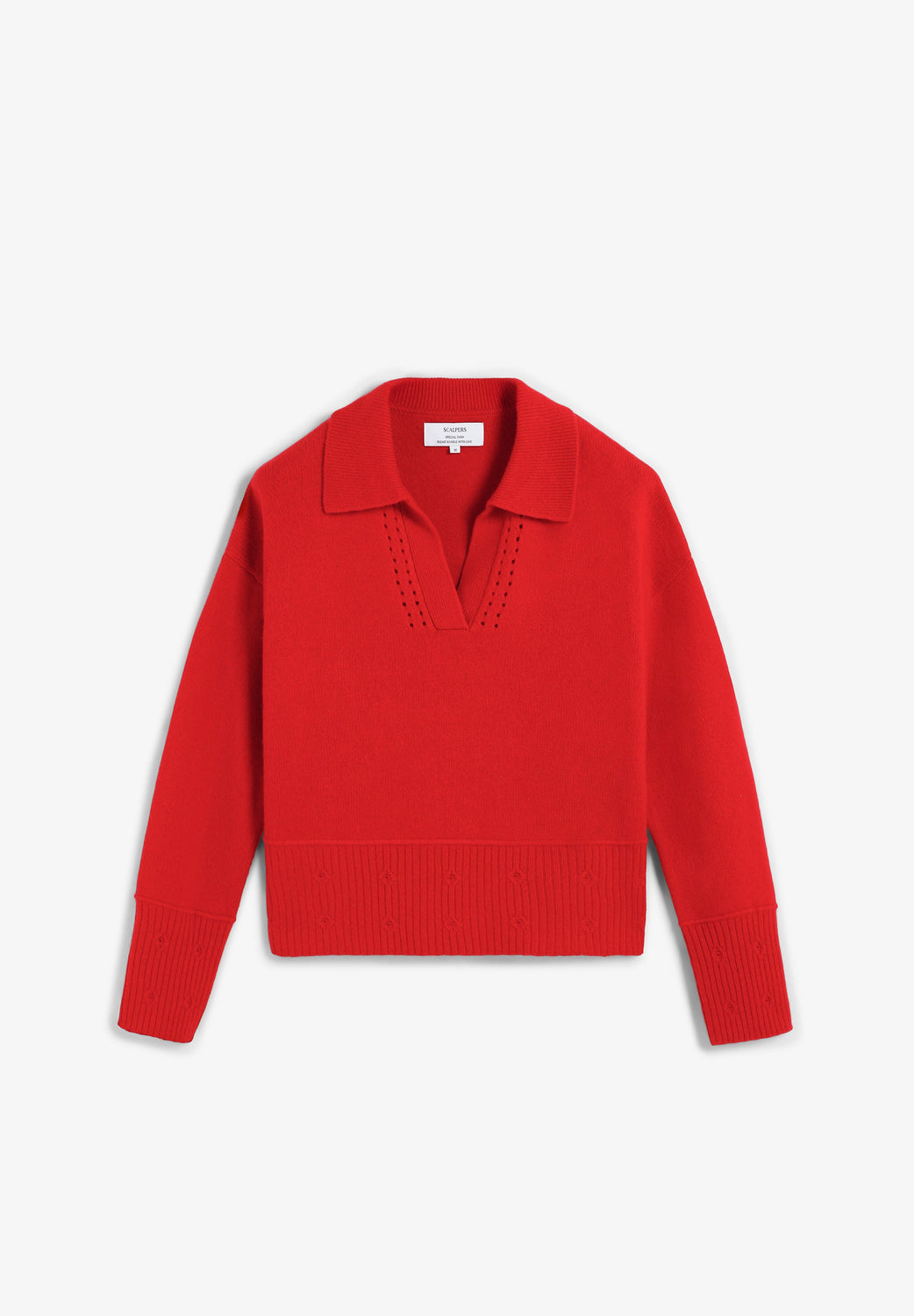 Jersey tipo polo confeccionado en mezcla de lana y cachemira. Cuello polero con detalles de aberturas en cuello. Regular fit. Manga larga con puños acabados en rib. Bajo acabado en rib con detalles en relieve.