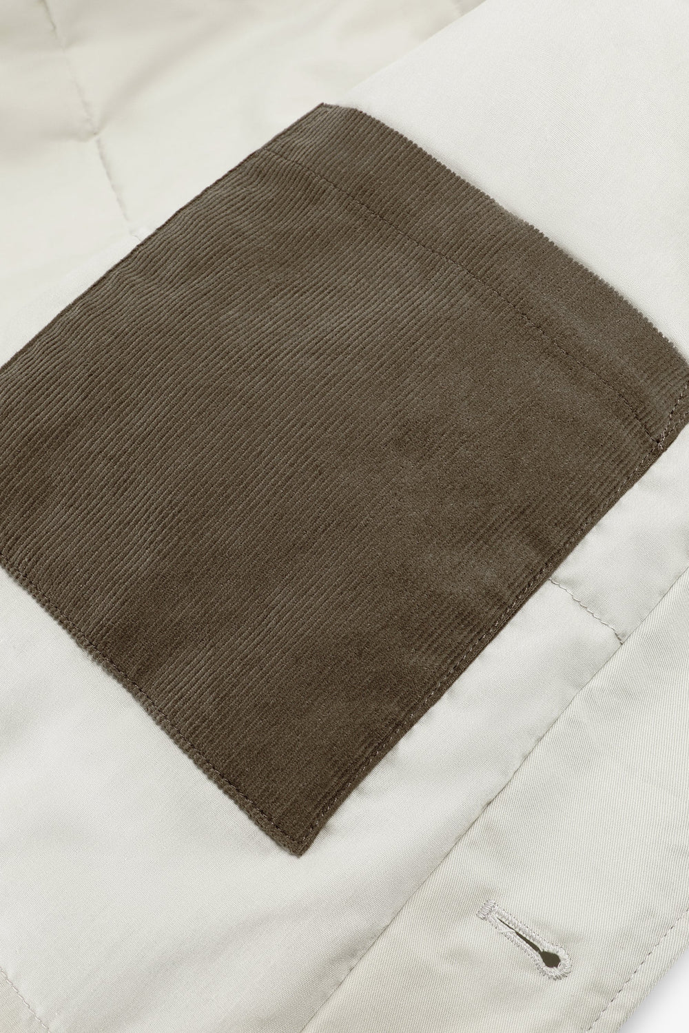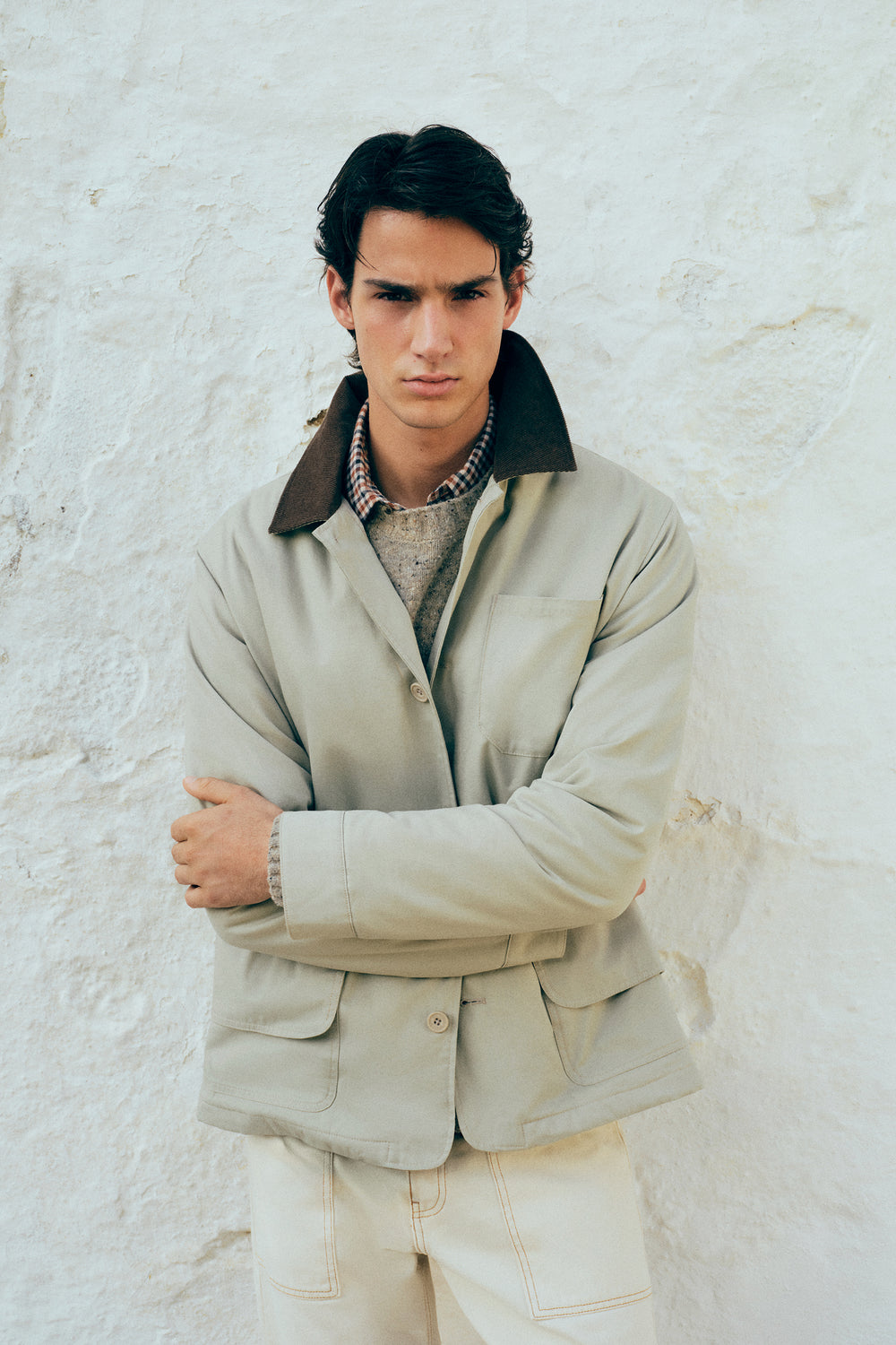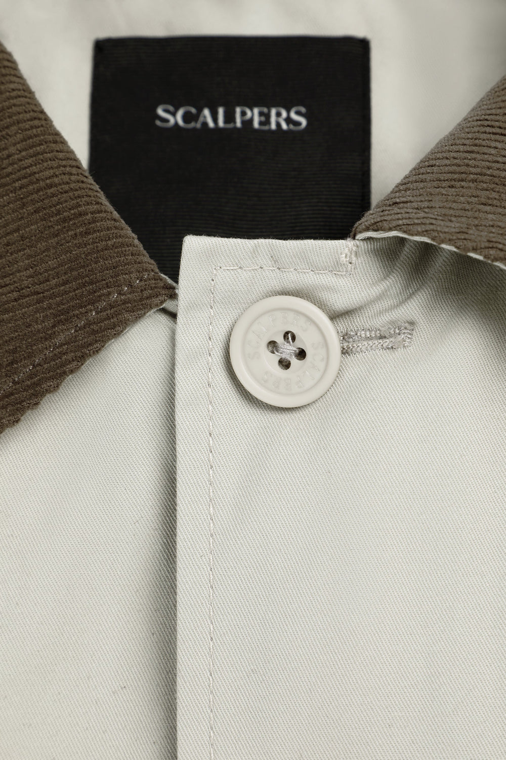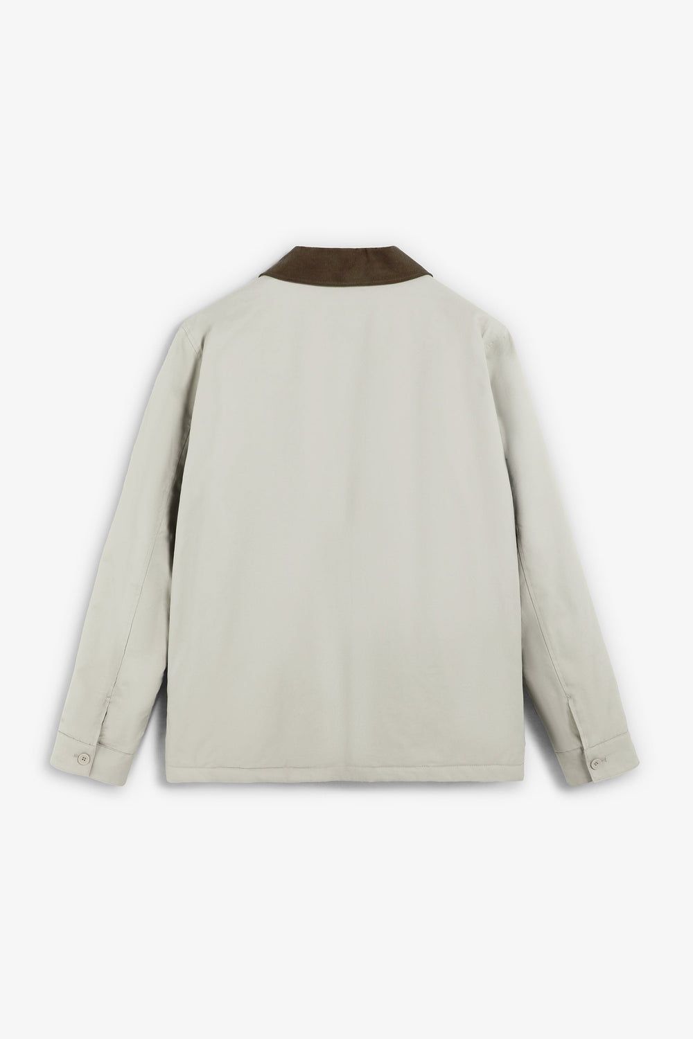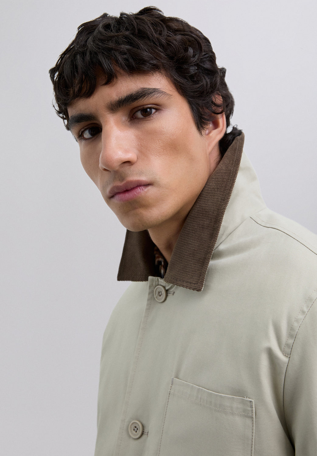 Chaqueta confeccionada en 100% algodón. Cuello de pana a contraste. Cierre mediante abotonadura. Bolsillo de parche en el pecho y dos laterales con aberturas inclinadas. Manga larga. Puños con cierre mediante botón.