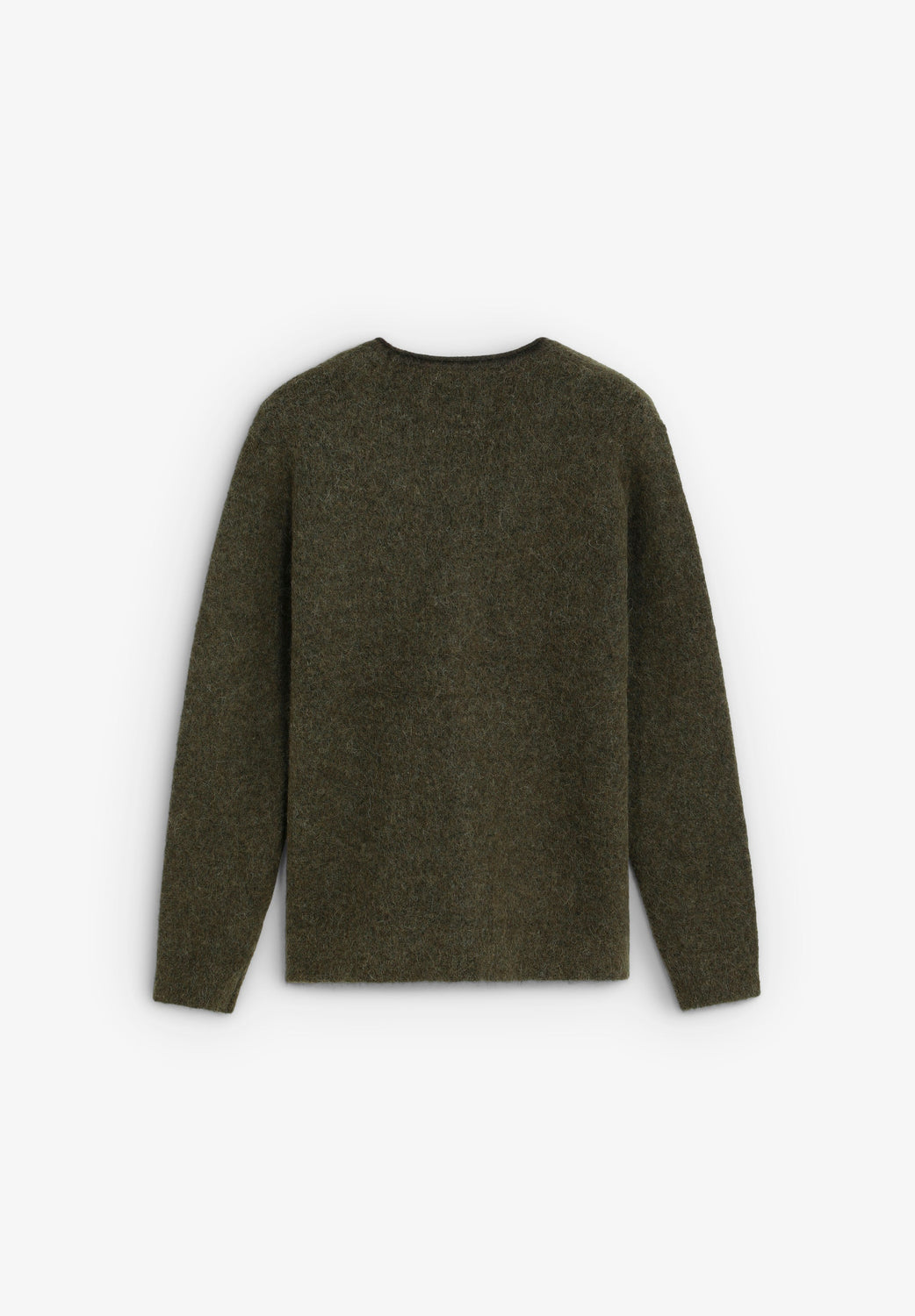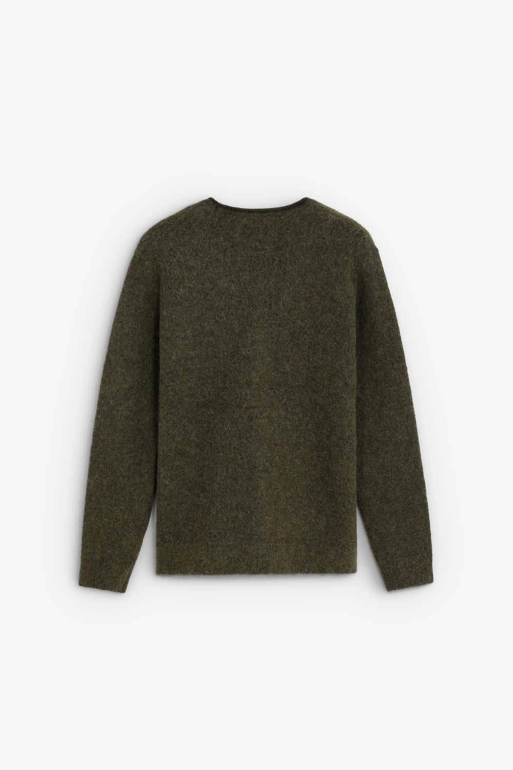 Cárdigan confeccionado en mezcla alpaca. Cuello en pico. Manga larga. Dos bolsillos frontales. Cierre mediante botonadura frontal.
