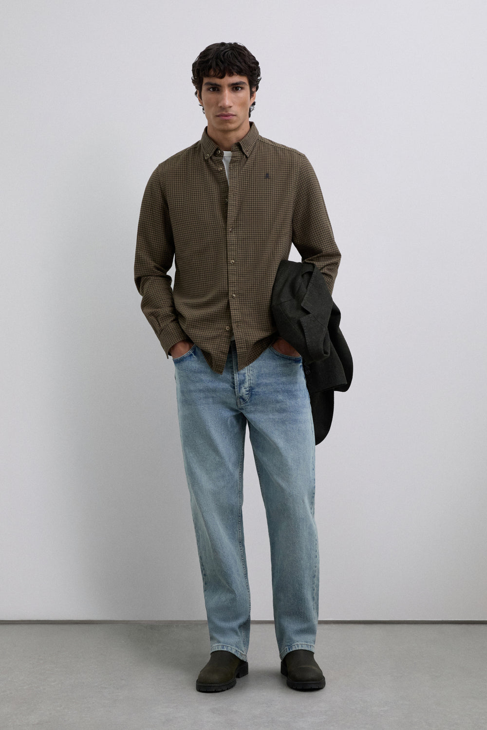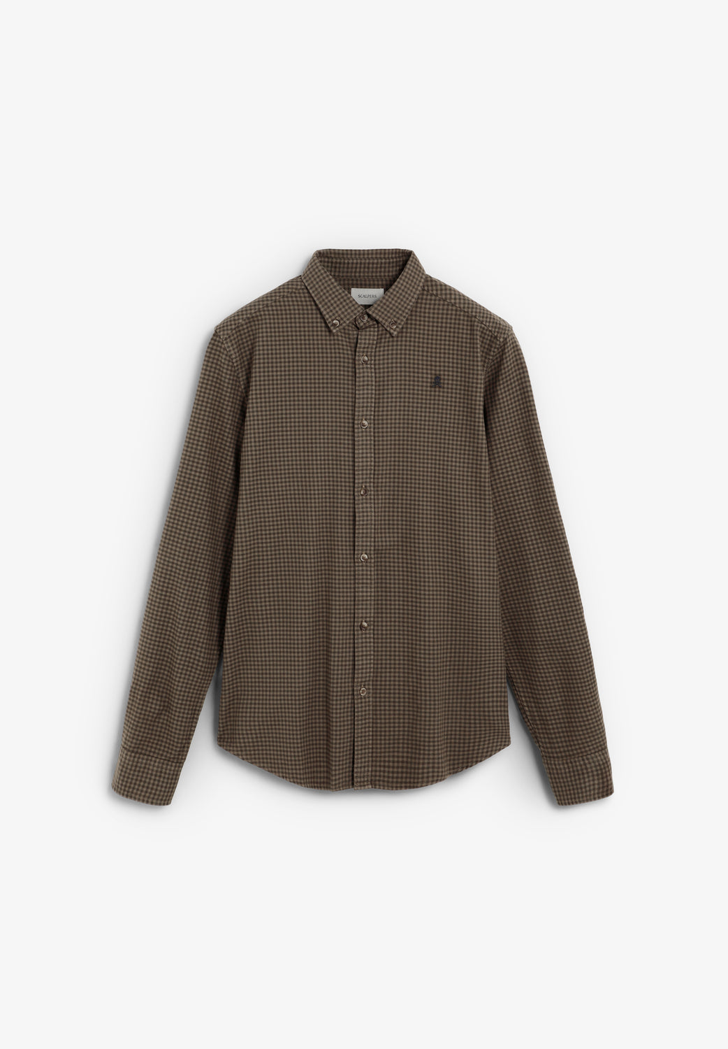 Camisa confeccionada en 100% algodón. Regular fit. Cuello abotonado. Manga larga. Puños abotonados. Detalla de logotipo bordado a contraste en pecho.