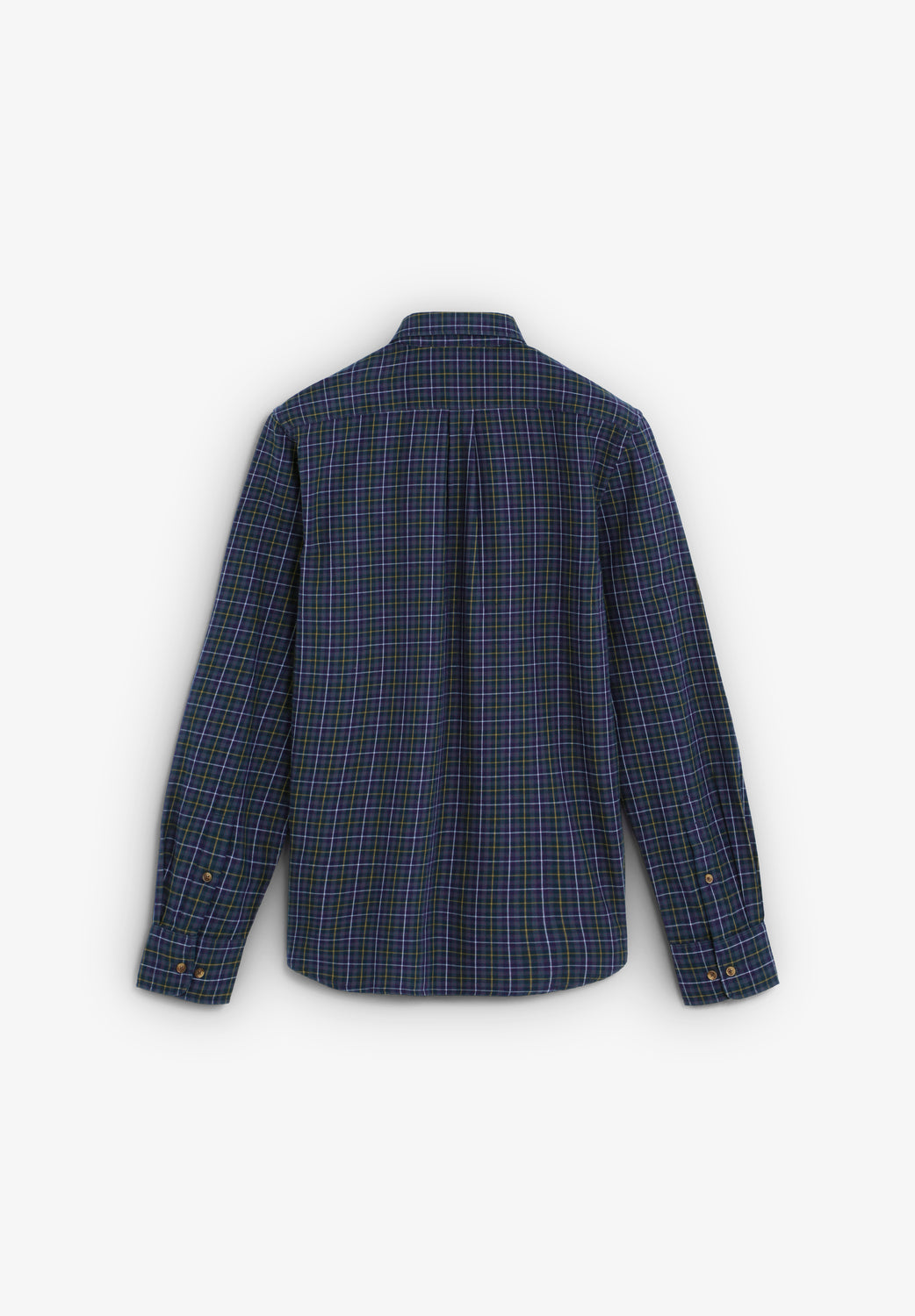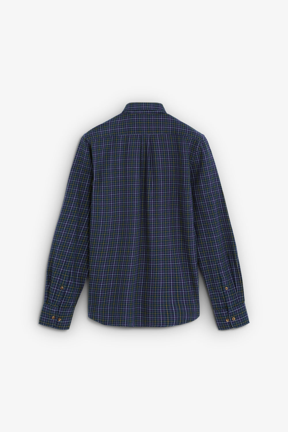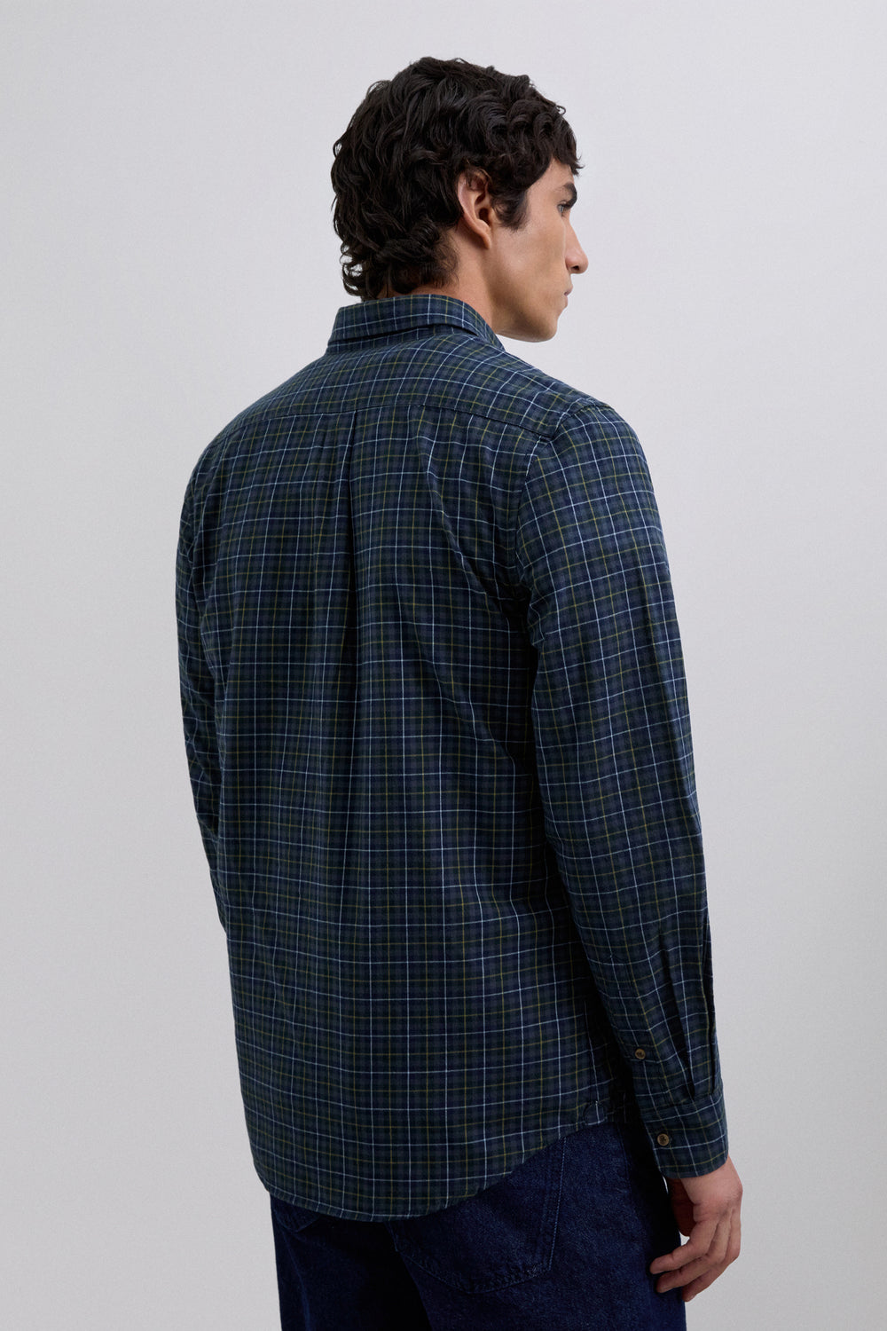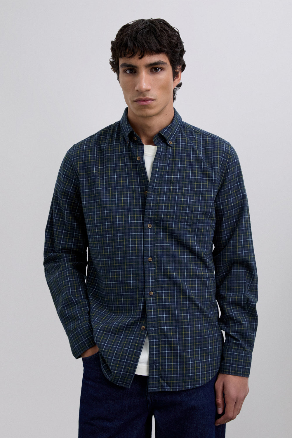 Camisa confeccionada en 100% algodón BCI. Estampado tartán. Regular fit. Cuello con botones. Manga larga. Puños abotonados. Bolsillo en pecho.