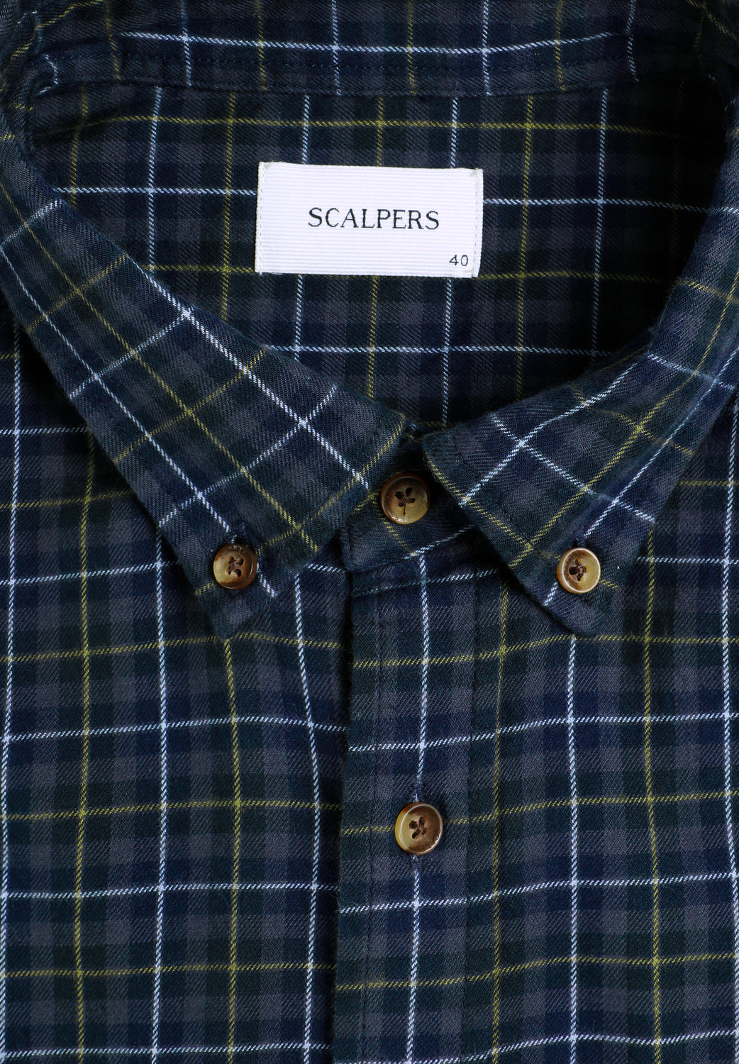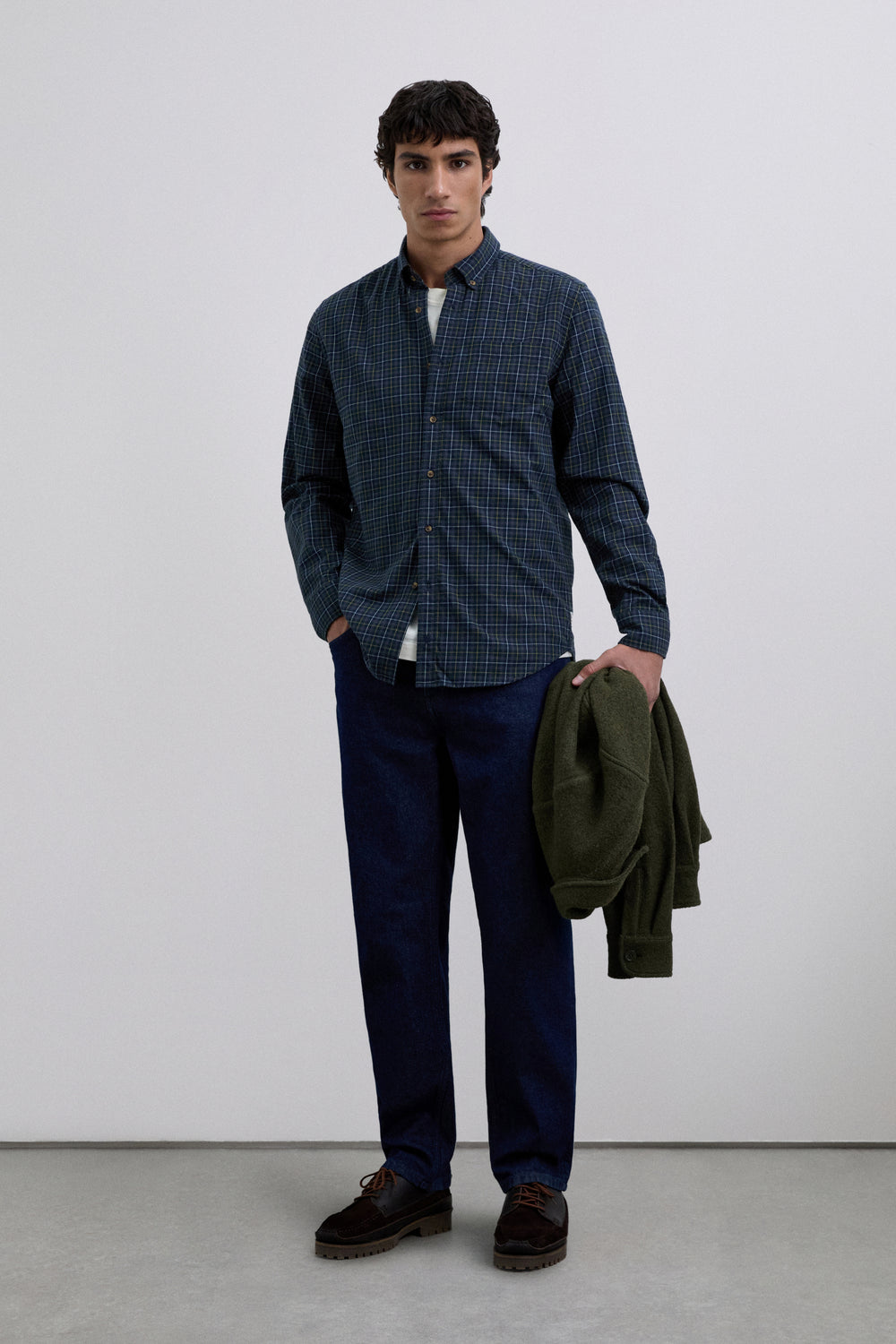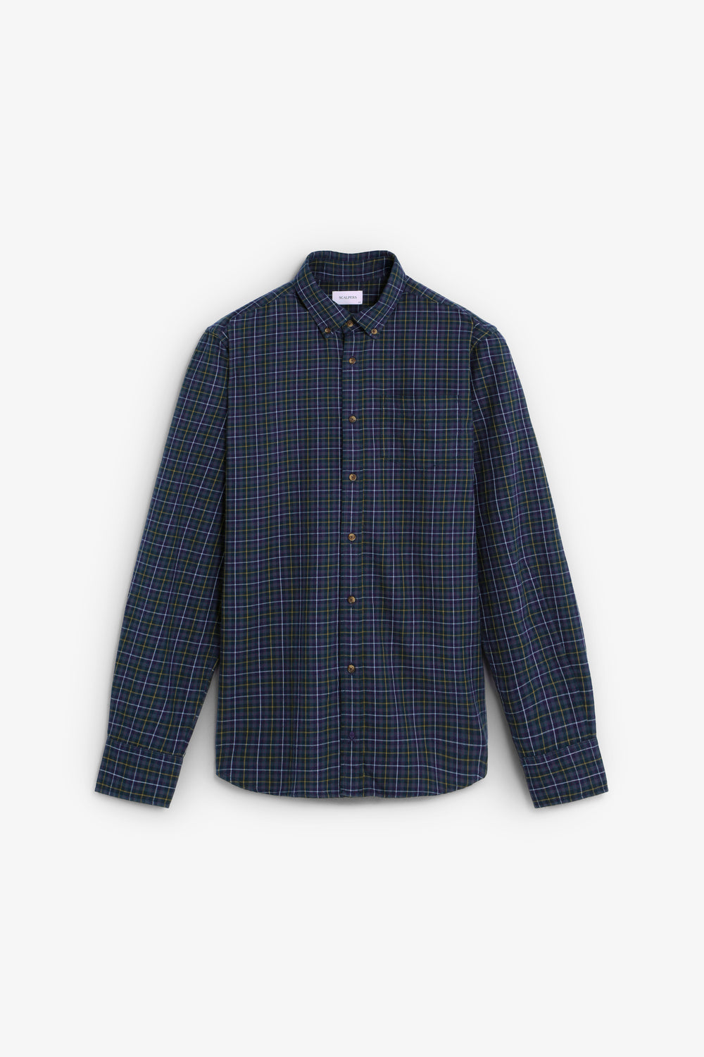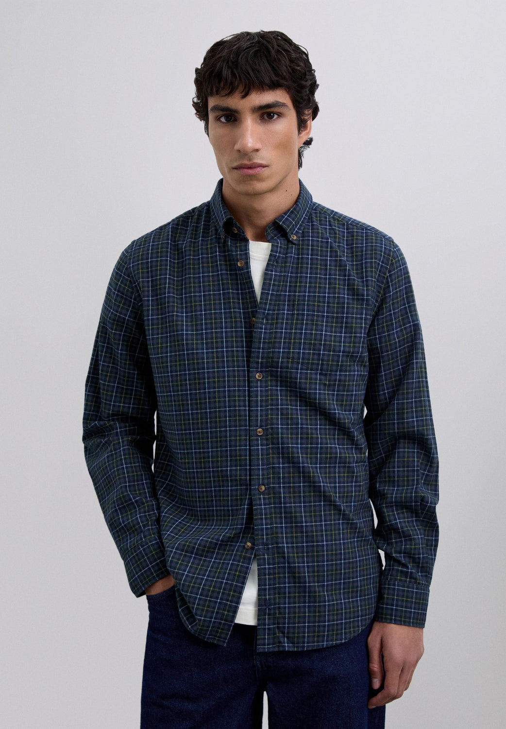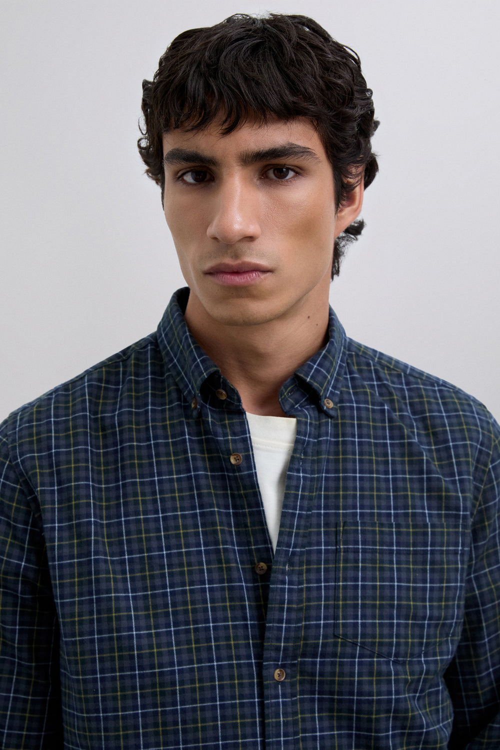 Camisa confeccionada en 100% algodón BCI. Estampado tartán. Regular fit. Cuello con botones. Manga larga. Puños abotonados. Bolsillo en pecho.