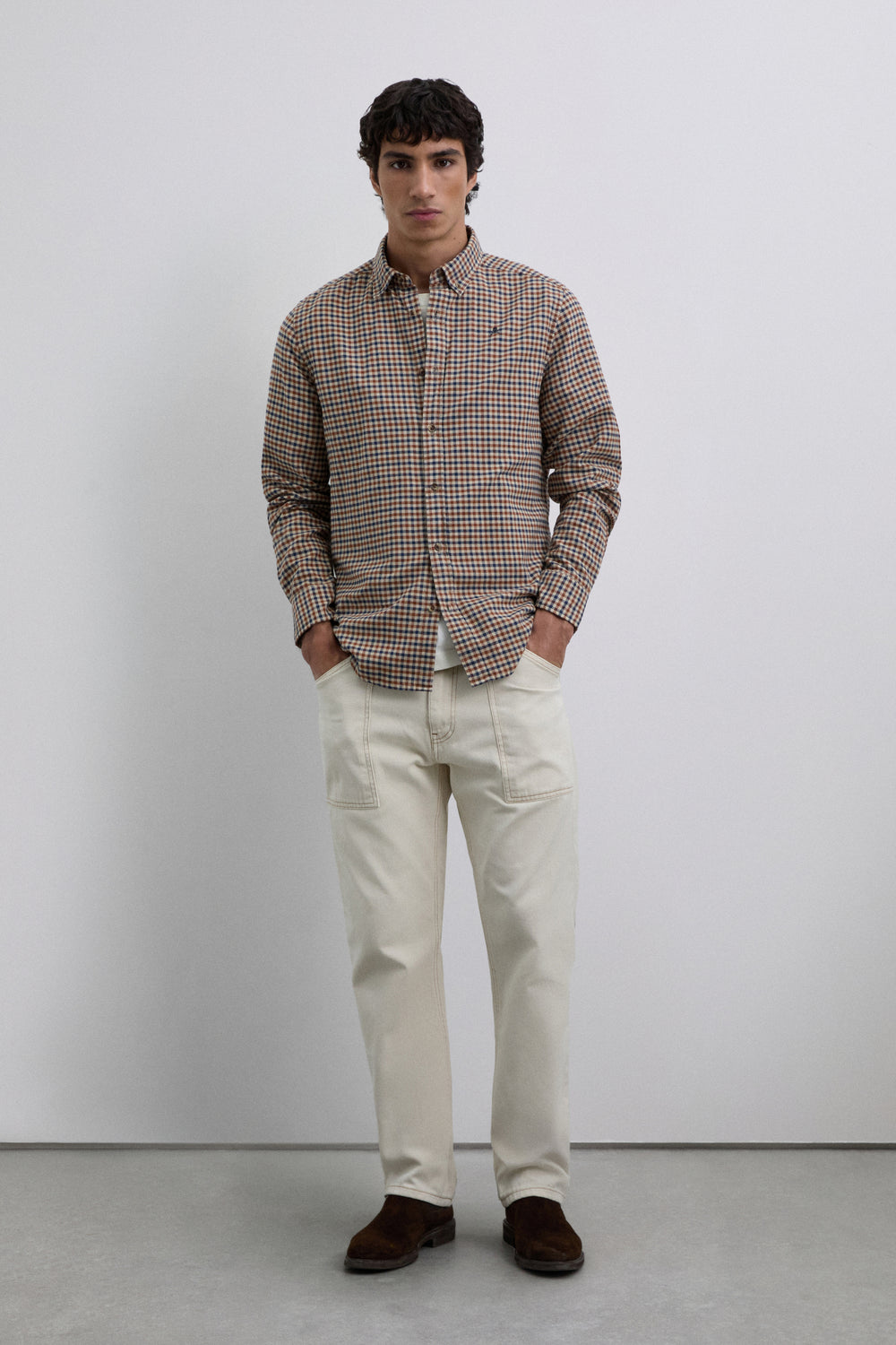 Camisa confeccionada en 100% algodón BCI. Regular fit. Cuello abotonado. Manga larga. Puños abotonados. Detalle de logotipo bordado a contraste en pecho.