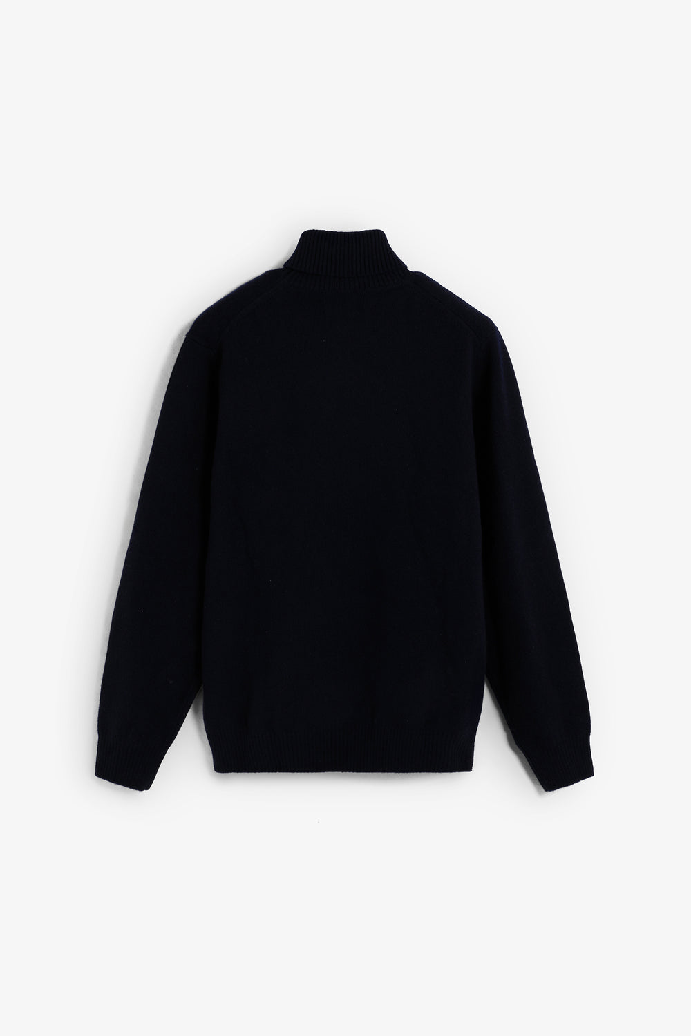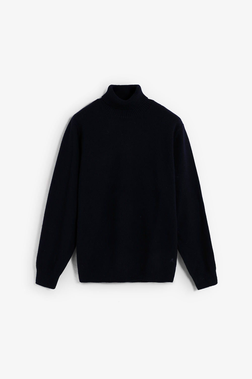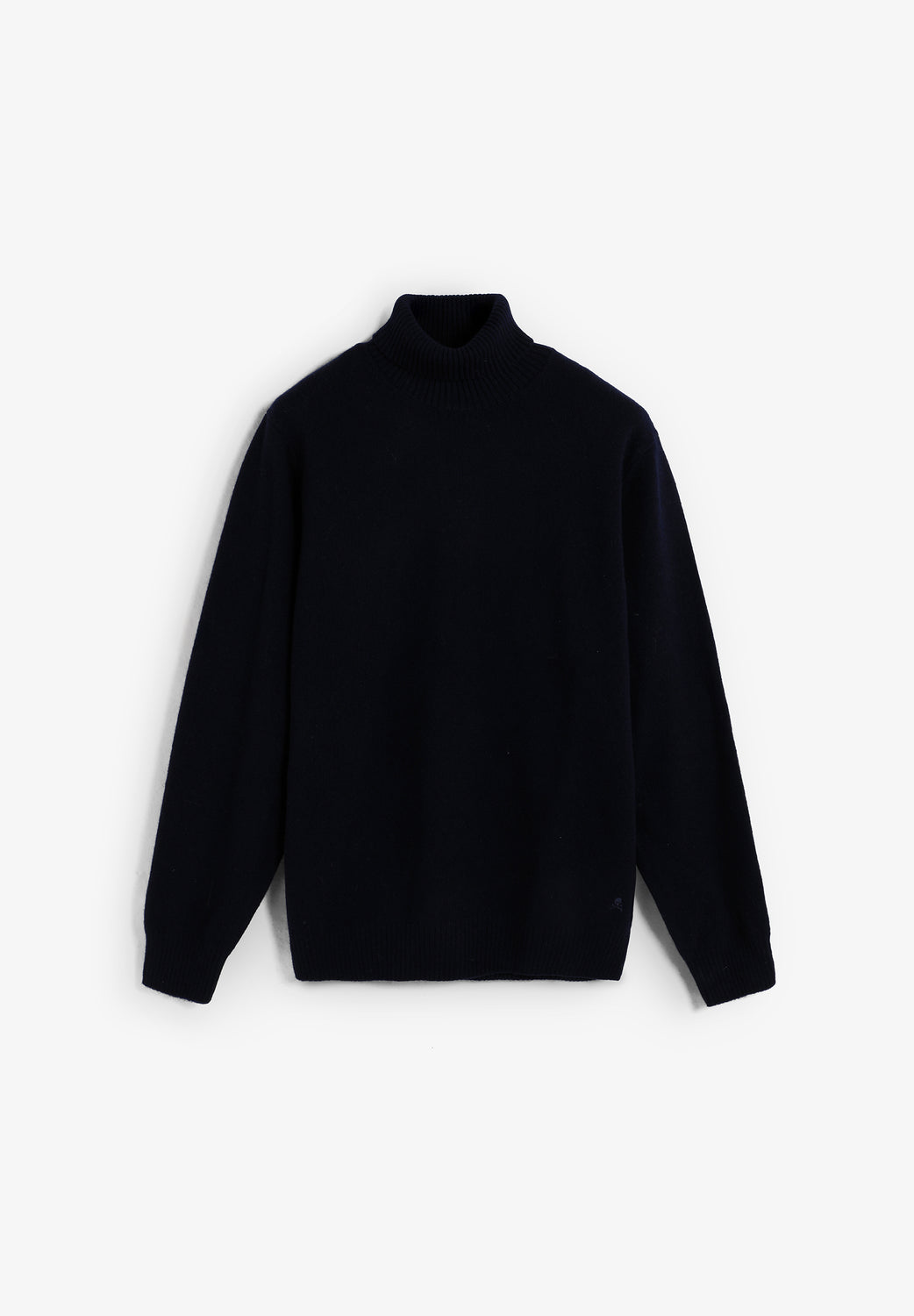 Jersey confeccionado en mezcla de lana y cashmere. Cuello alto. Manga larga. Acabados en rib.