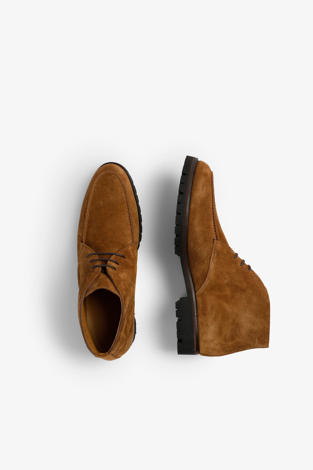 Botines confeccionados en 100% piel de ante. Cierre mediante cordones. Suela Vibram® de goma de alto rendimiento. Hecho en España.