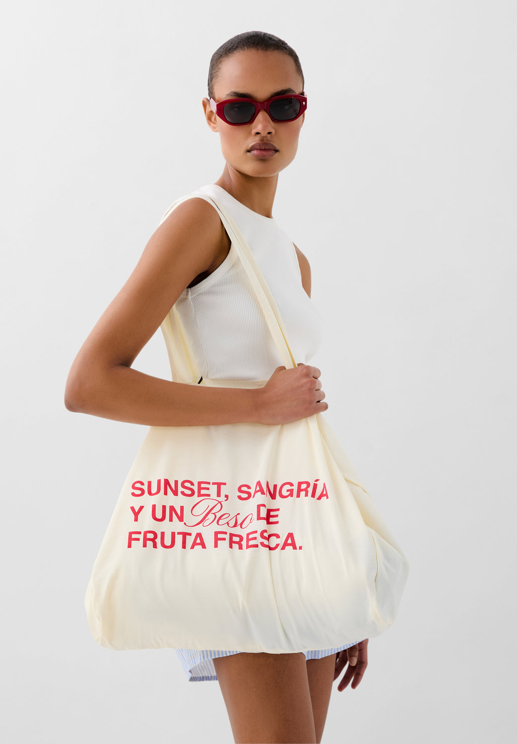 Tote bag confeccionada en tejido técnico con print delantero y trasero.