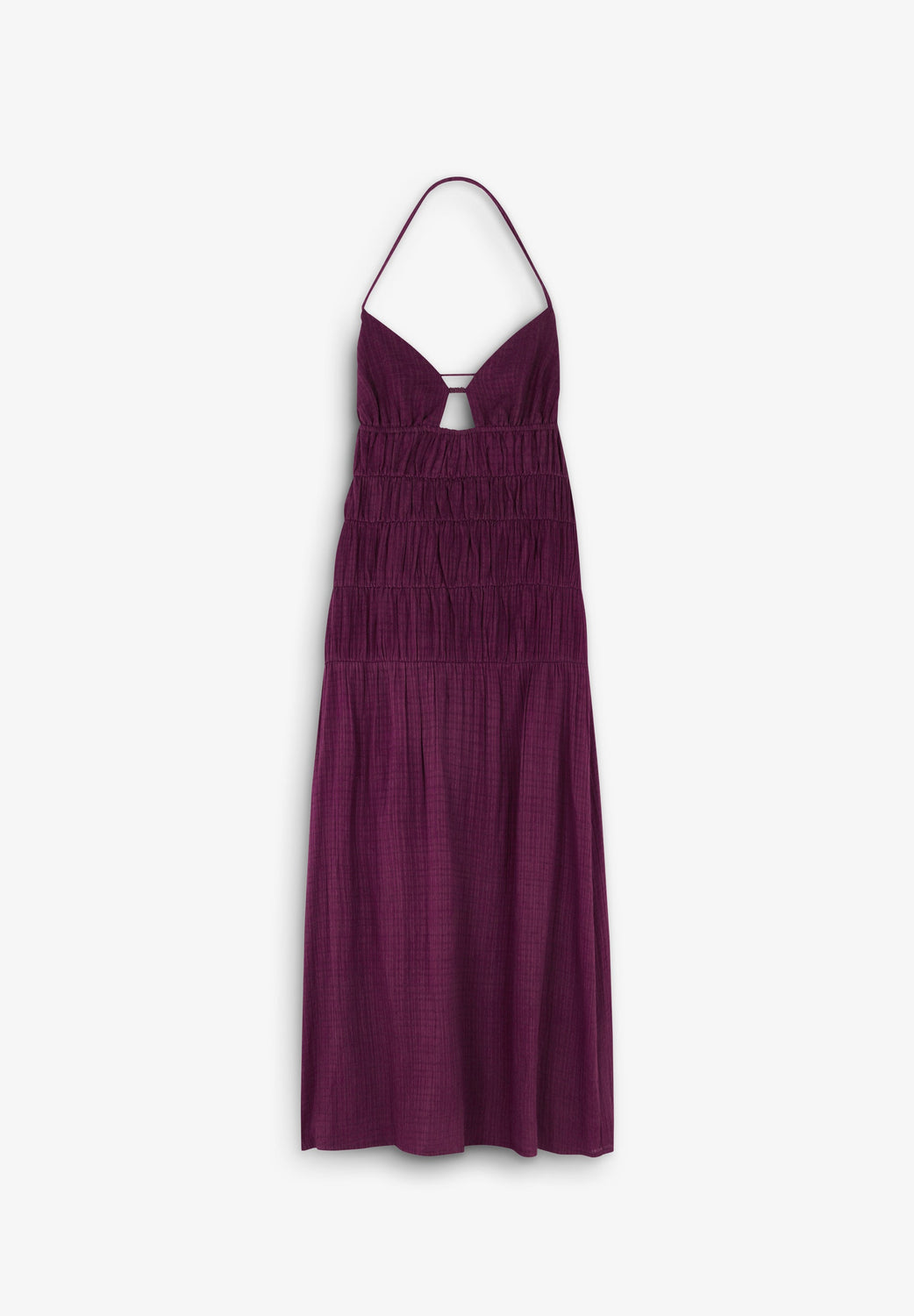Este vestido está diseñado en colaboración con Scalpers y pertenece a la colección ROBIN x SCALPERS. Vestido midi confeccionado en 100% algodón orgánico BCI. Escote en pico con cut out y detalle cuentas a tono. Tejido drapeado en pecho con eláticos. Detalle de entredoses. Cierre ajustable mediante tirantas en espalda.