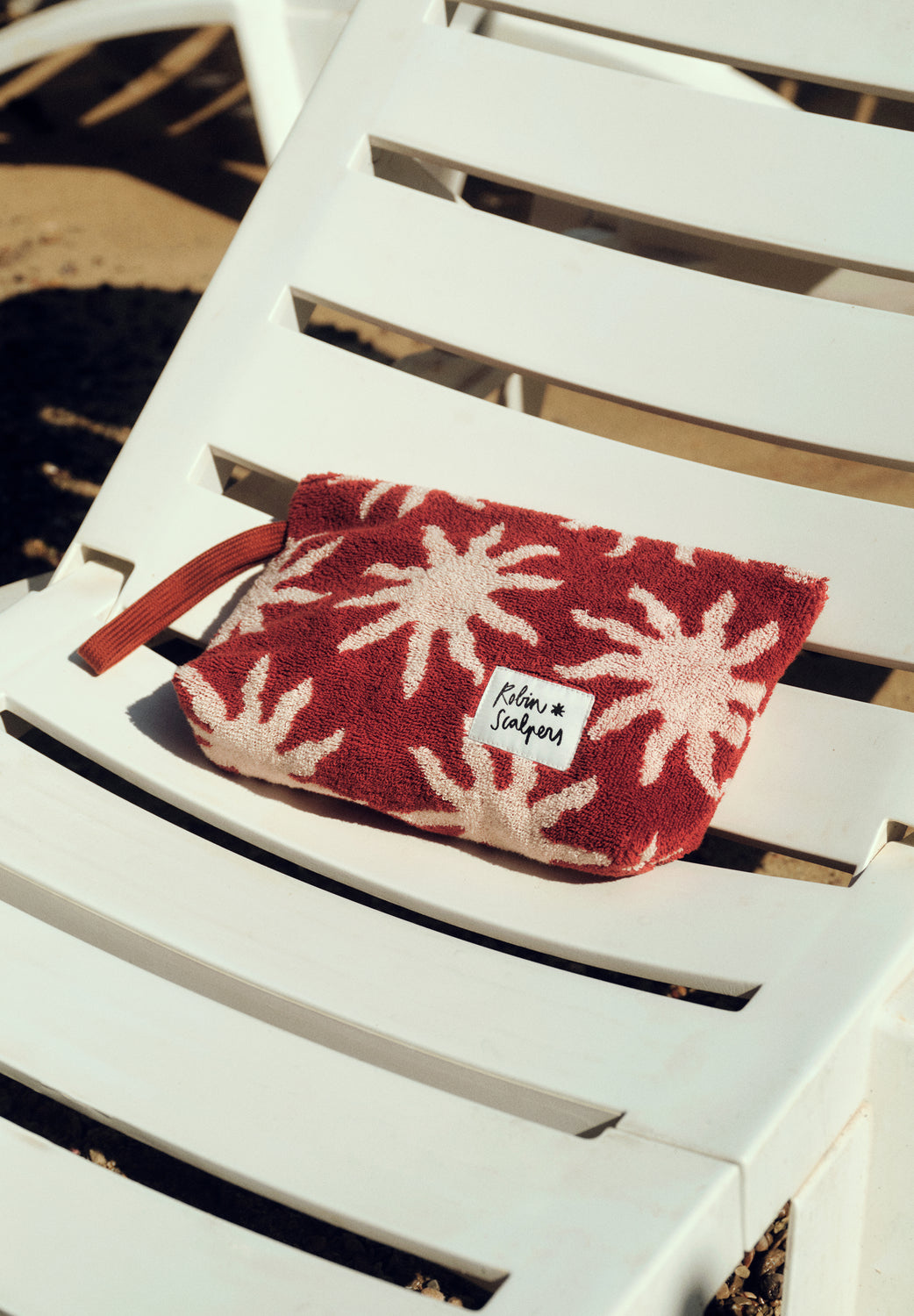 Este neceser está diseñado en colaboración con Scalpers y pertenece a la colección ROBIN x SCALPERS. Neceser estampado confeccionado en rizo de 100% algodón orgánico BCI.