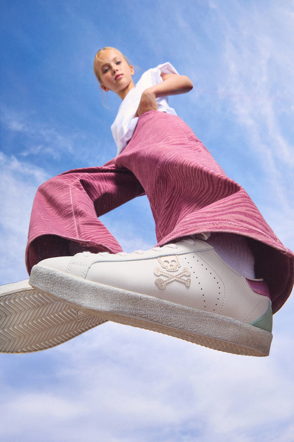 Sneakers con calavera lateral a contraste. Suela efecto desgastado de goma. Talón a contraste con logo a tono. Cierre con cordones.