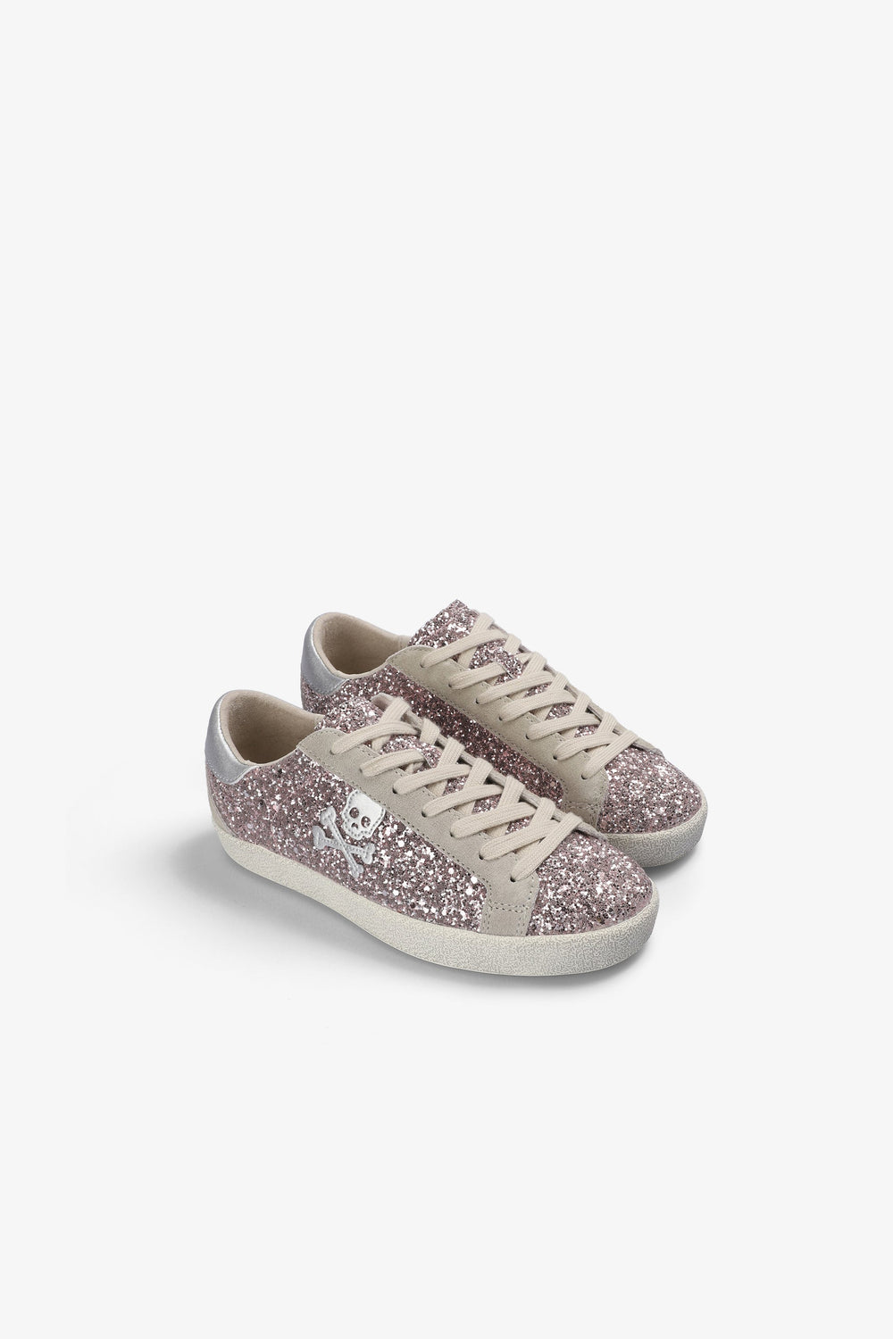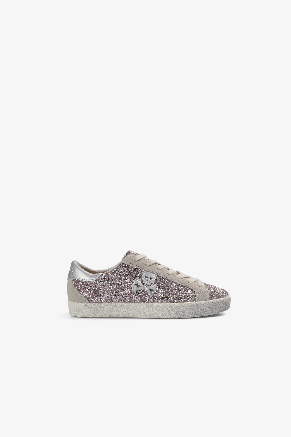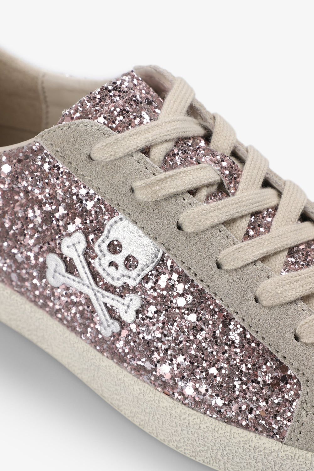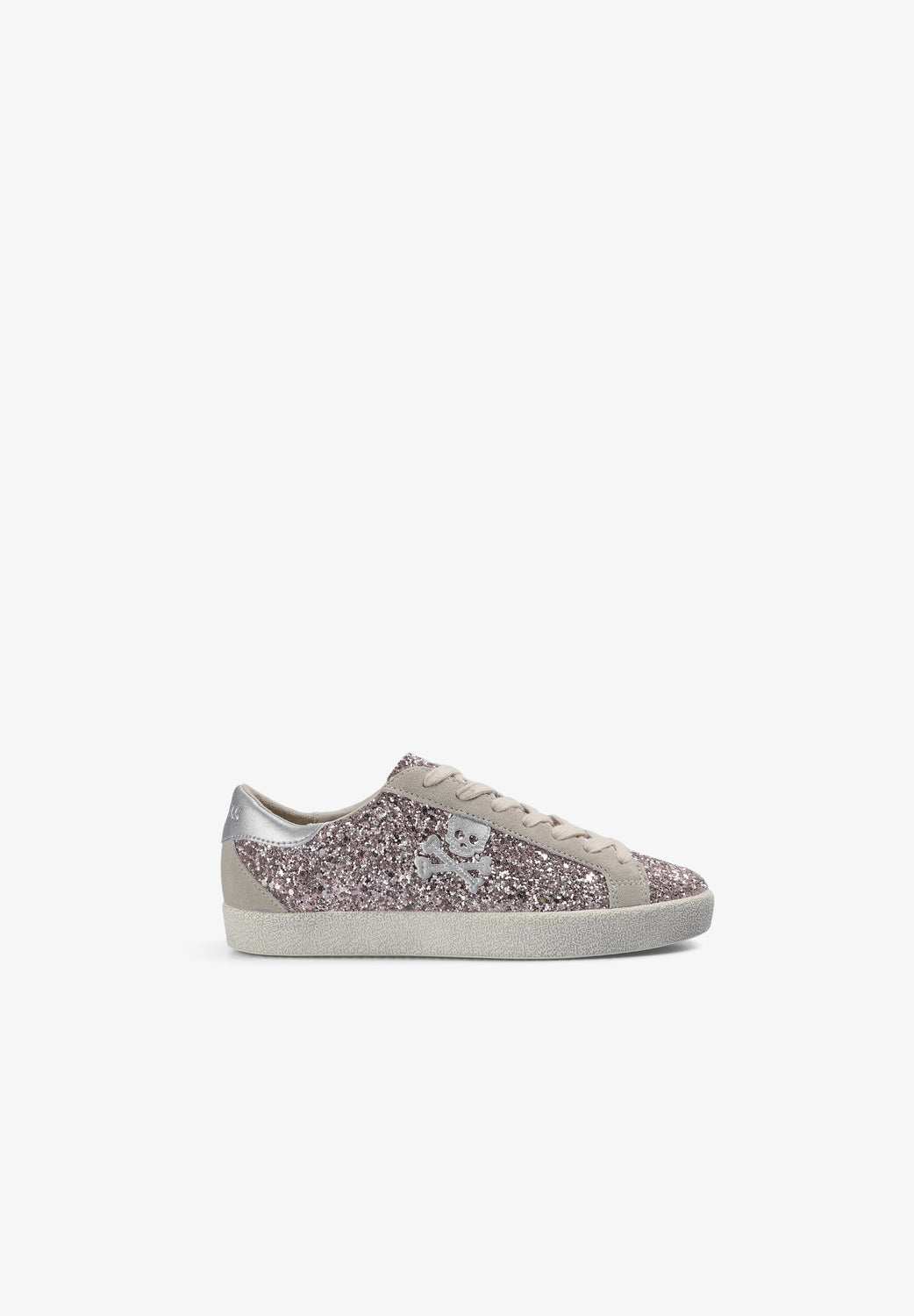 Sneakers de glitter. Cierre con cordones. Suela efecto desgastado de goma. Calavera lateral a contraste. Talón a contraste con logo a tono.