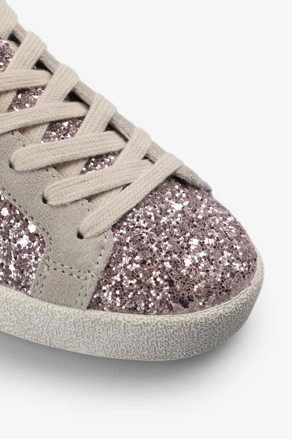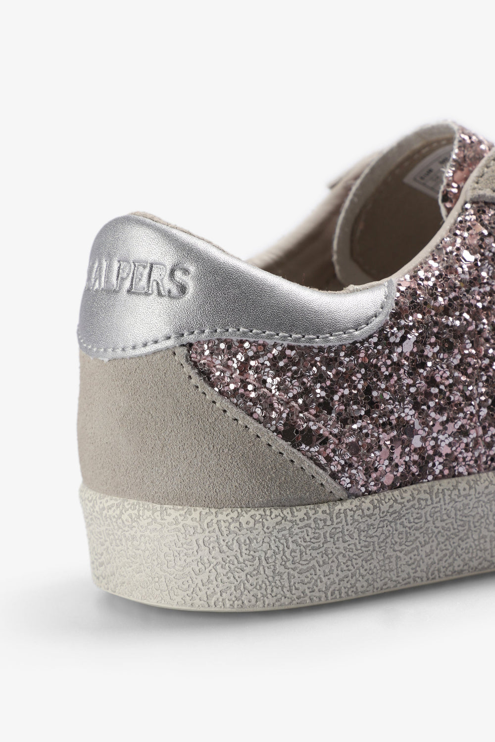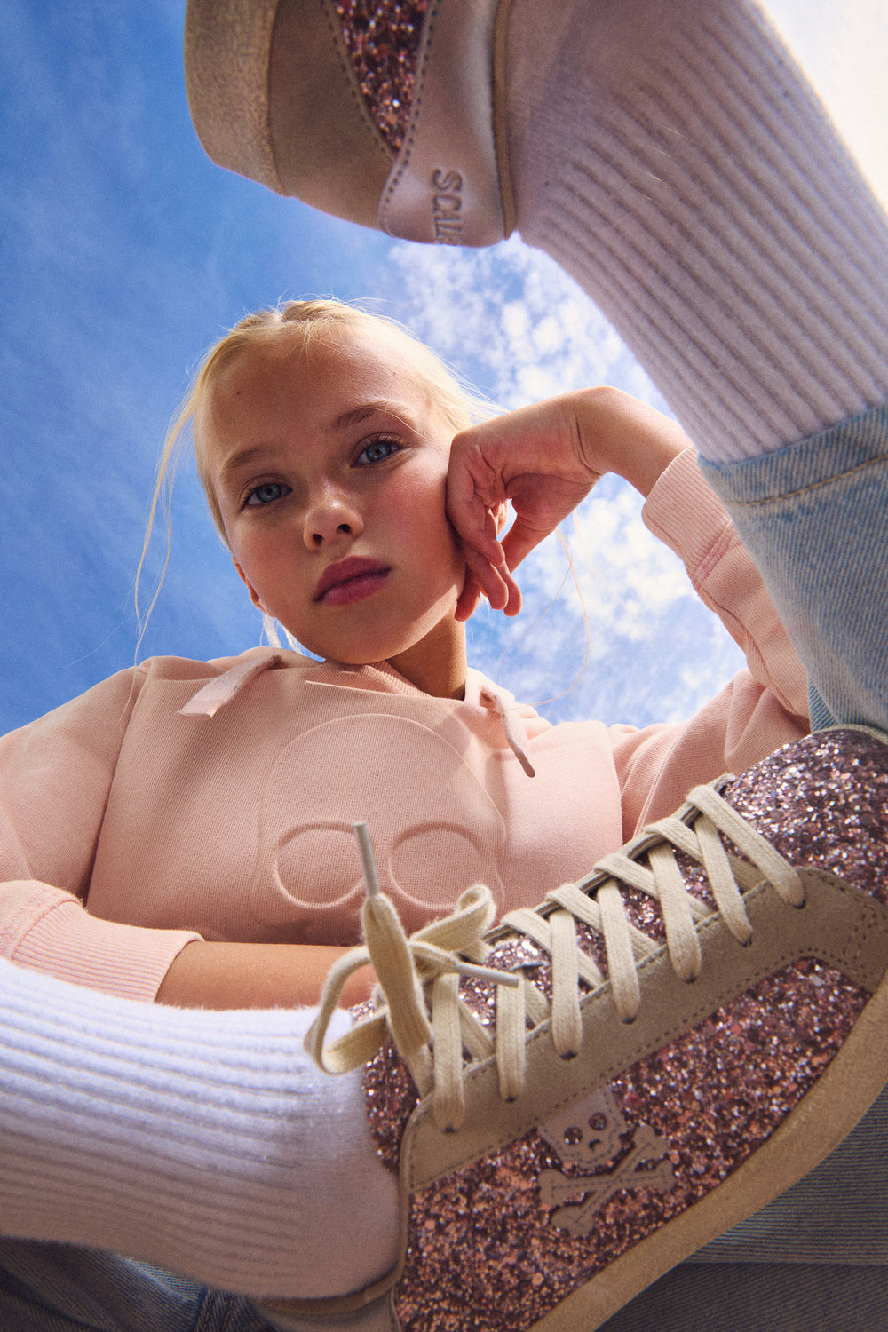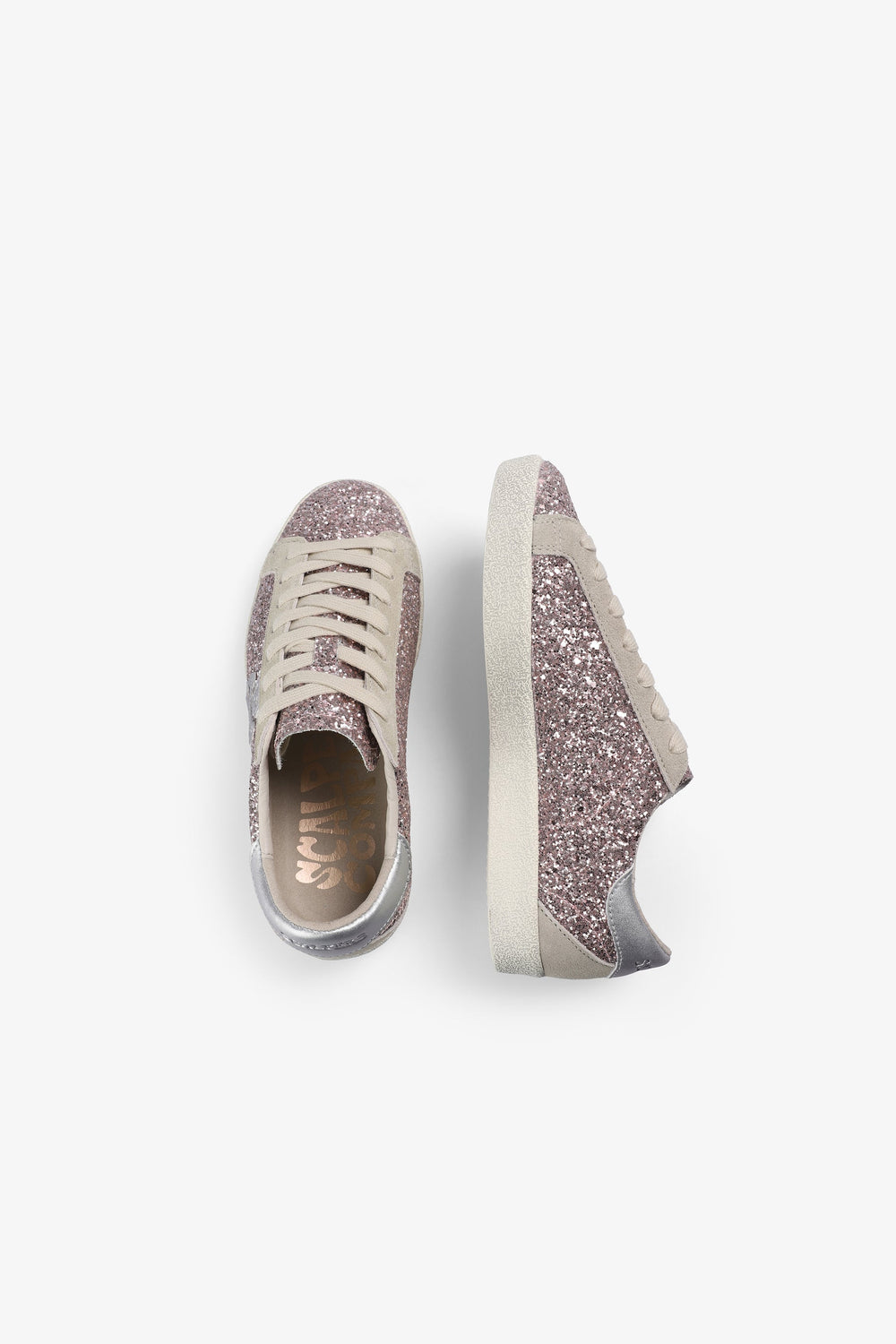 Sneakers de glitter. Cierre con cordones. Suela efecto desgastado de goma. Calavera lateral a contraste. Talón a contraste con logo a tono.
