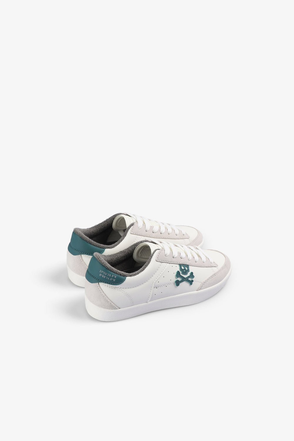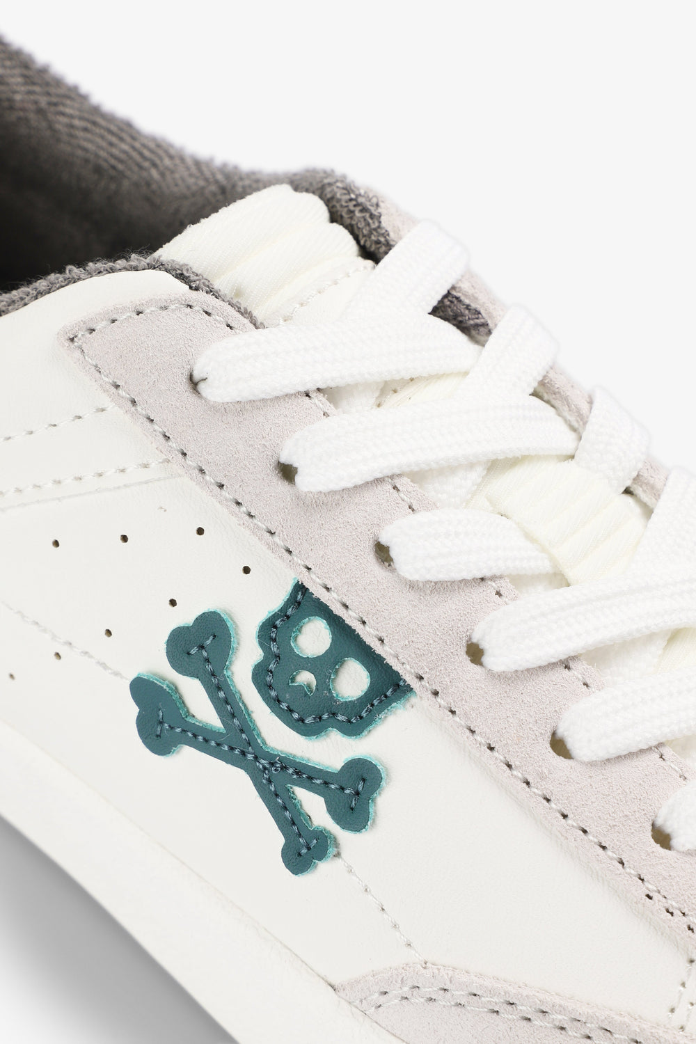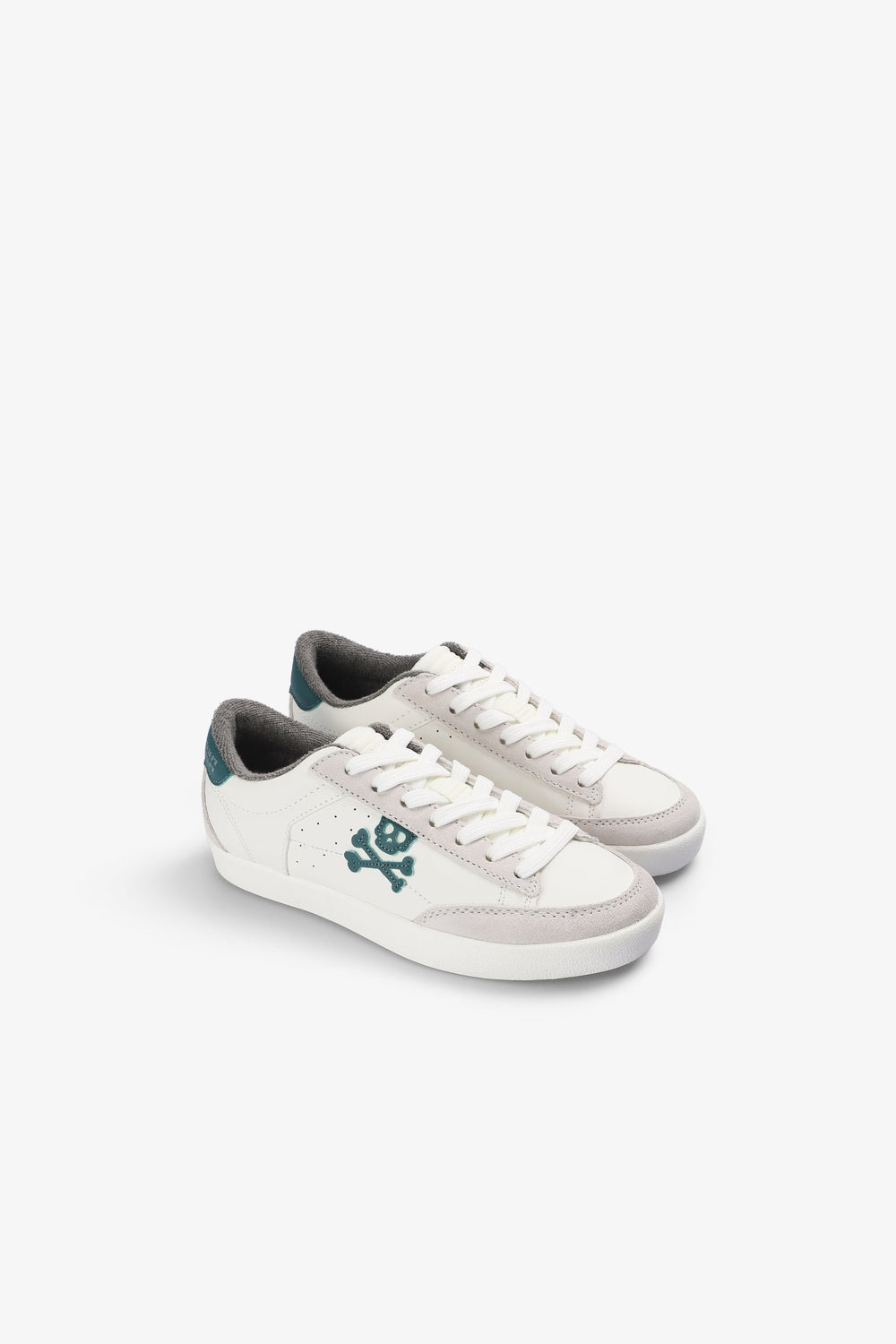 Sneakers bajas con calavera lateral a contraste. Cierre con cordones. Suela efecto desgastado de goma. Detalle en talón a contraste.