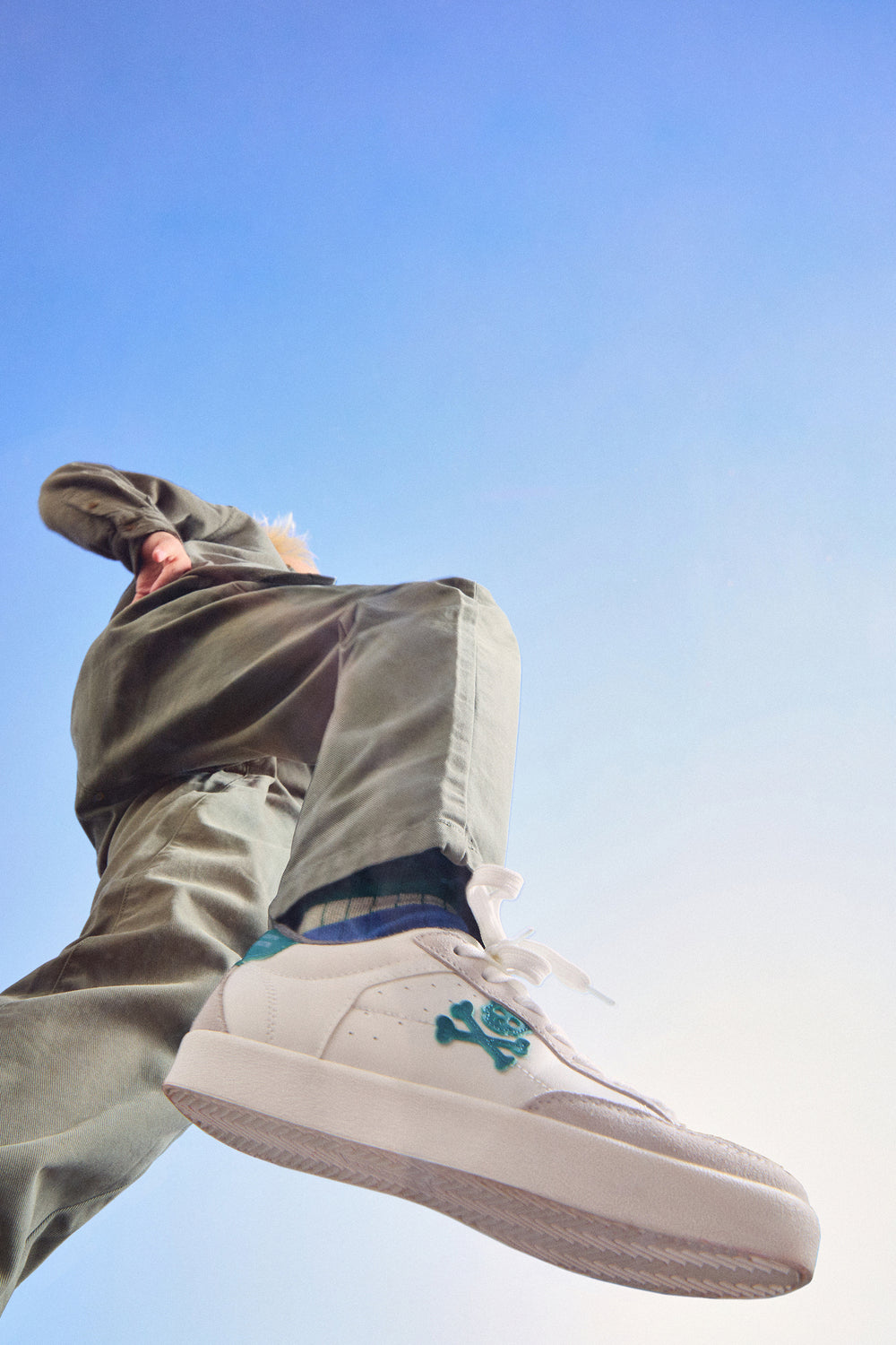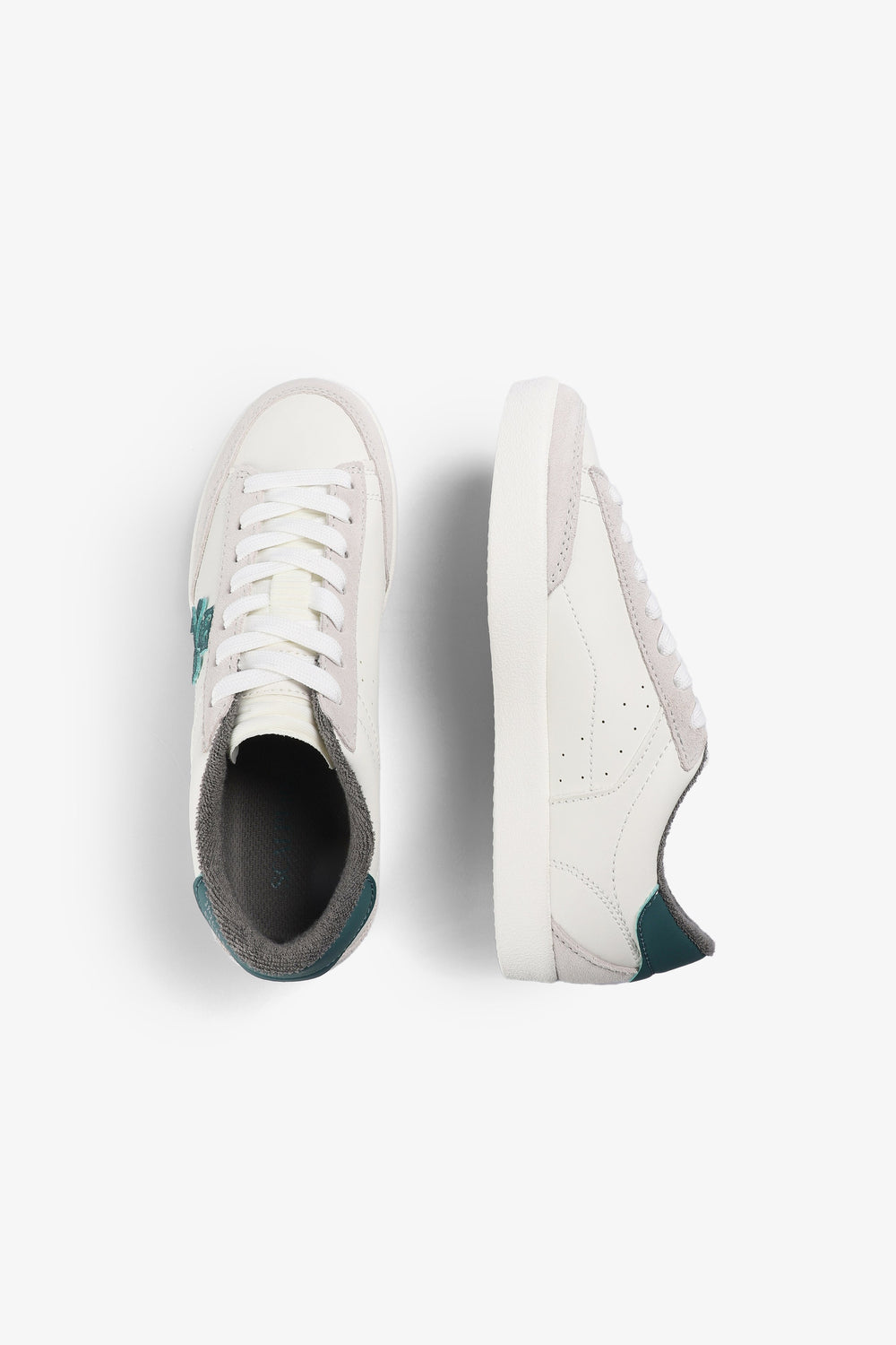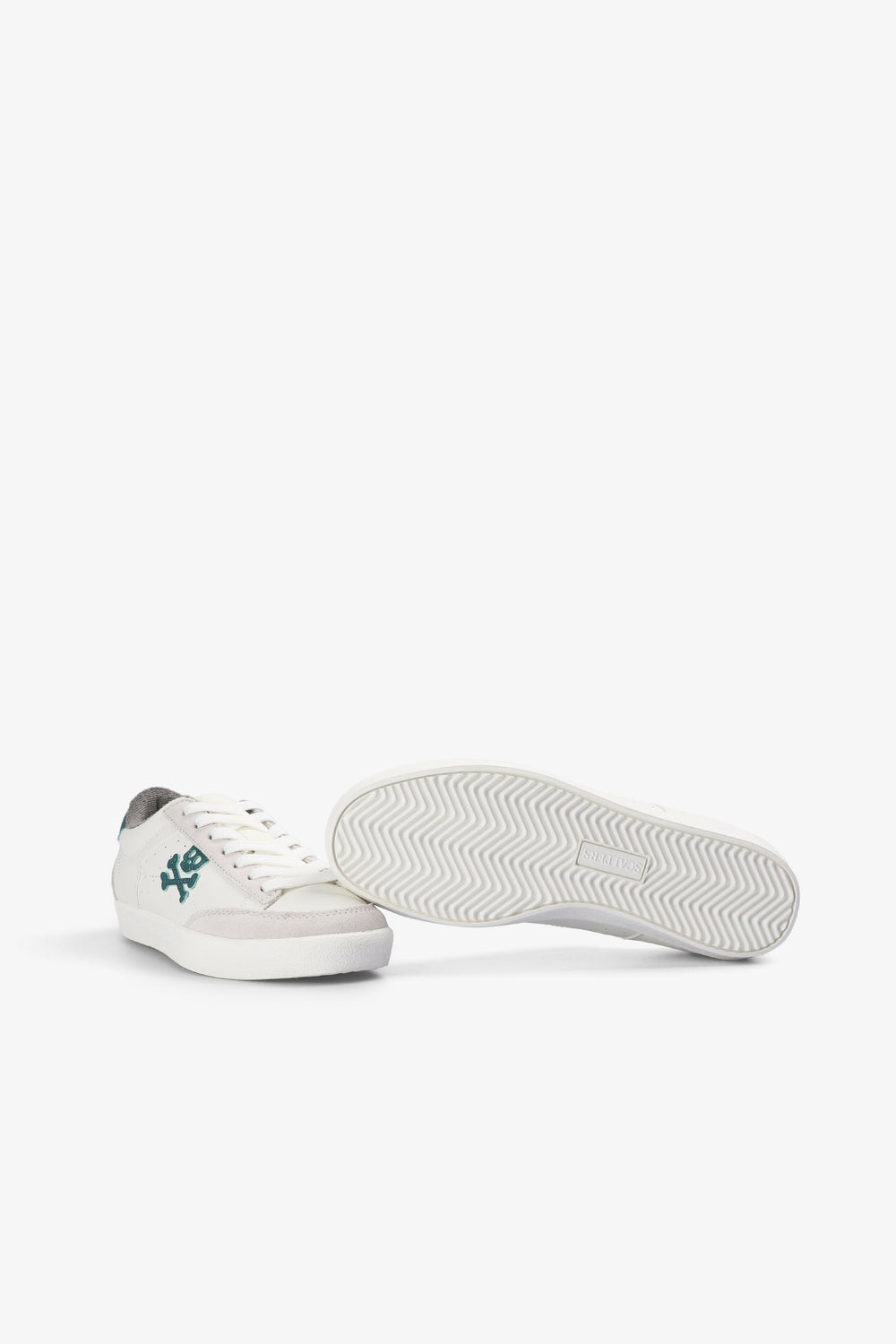 Sneakers bajas con calavera lateral a contraste. Cierre con cordones. Suela efecto desgastado de goma. Detalle en talón a contraste.