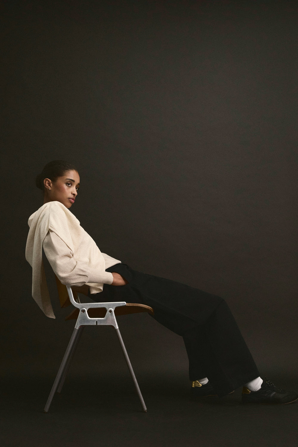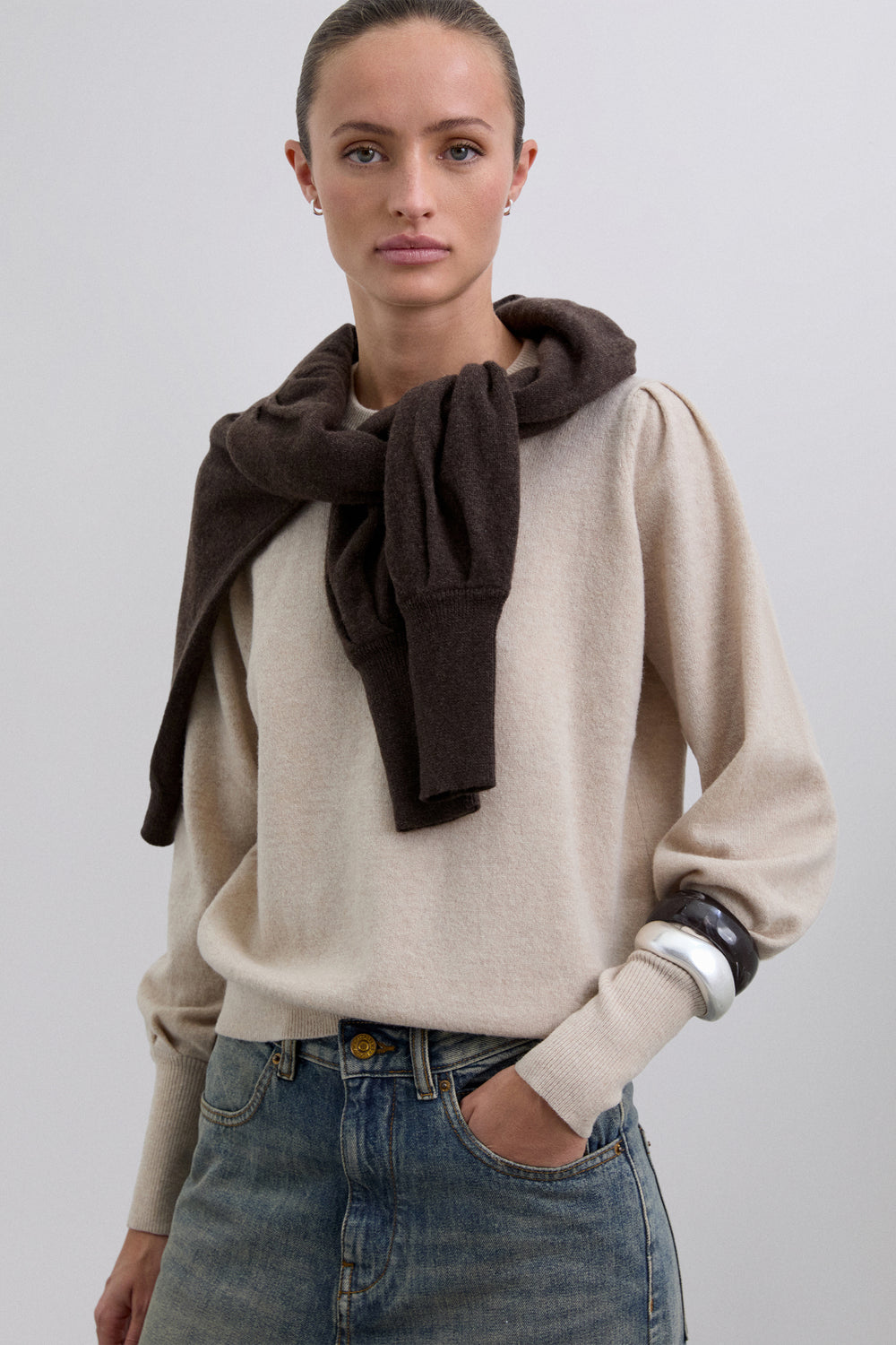 Jersey confeccionado en mezcla con lana. Regular fit. Cuello redondo. Manga larga ligeramente abullonada con puños acabados en rib.