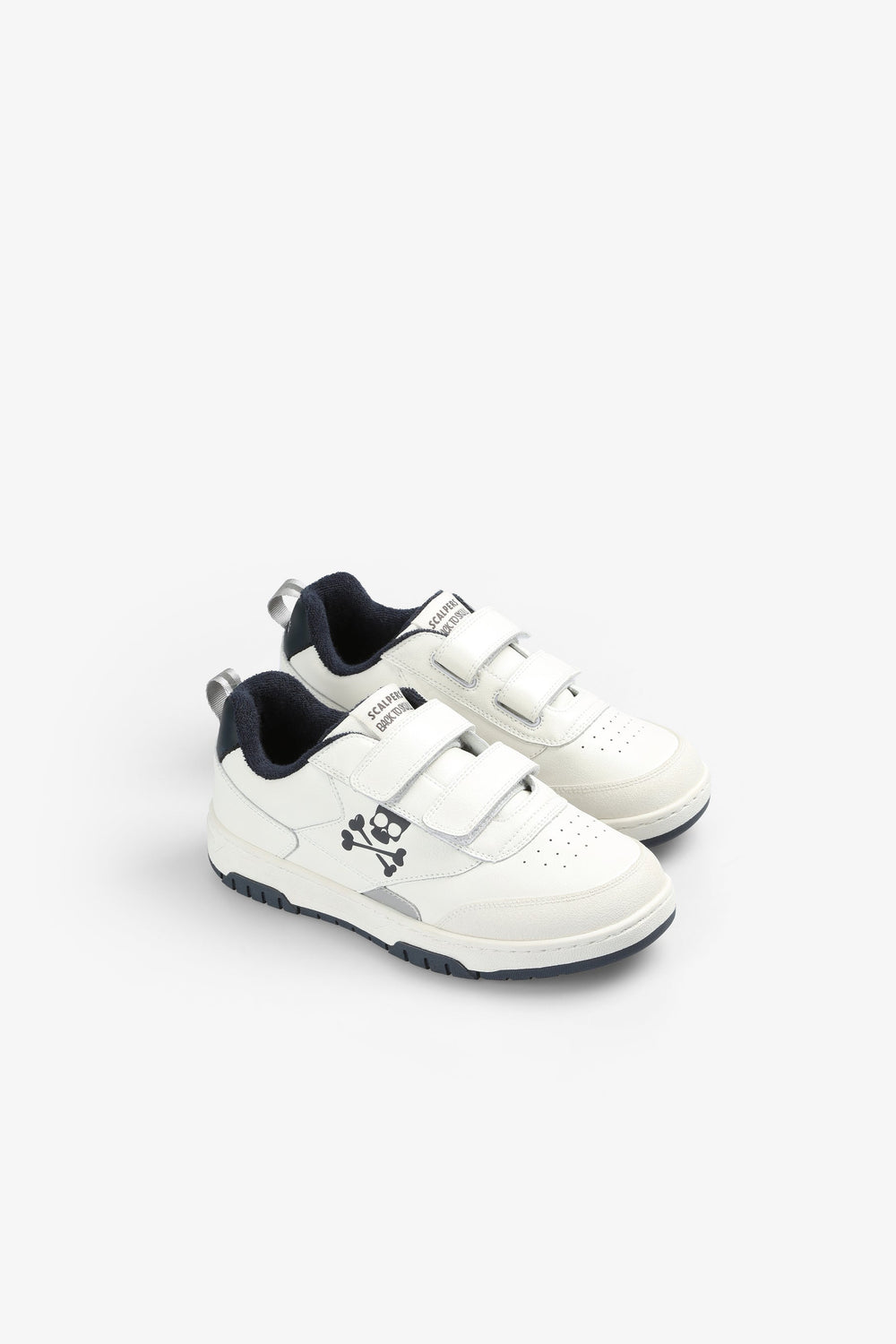 Sneakers confeccionadas en piel. Cierre con velcros, suela de goma y calavera lateral.