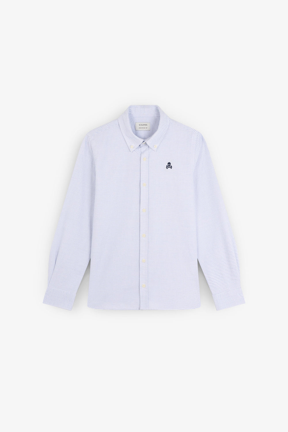 Camisa Oxford confeccionada en 100% algodón BCI. Regular Fit. Cuello clásico y cierre con botones. Manga larga con puños terminados mediante botón. Calavera bordada en pecho a contraste.