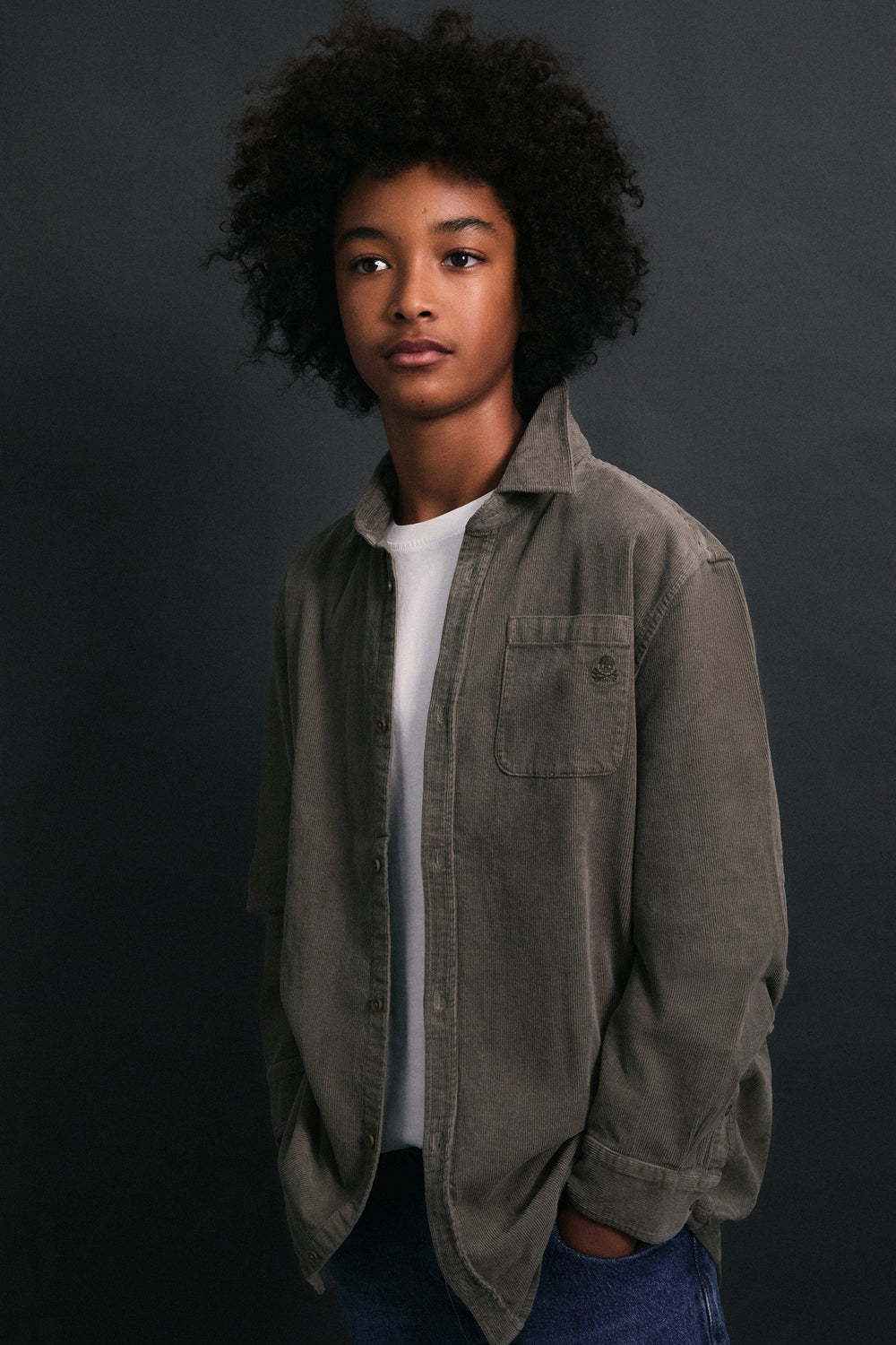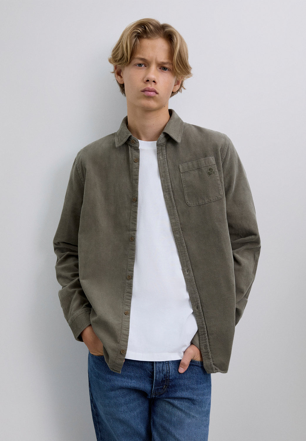 Camisa de pana confeccionada en 100% algodón BCI. Regular Fit. Cierre con botones. Manga larga con puños terminados mediante botón. Calavera bordada en pecho a tono.