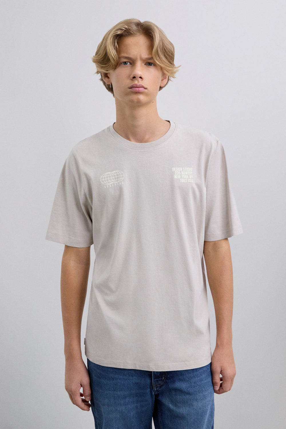 Camiseta confeccionada en algodón 100% orgánico. Corte regular fit, cuello redondo y manga corta. Print trasero y delantero con logo.