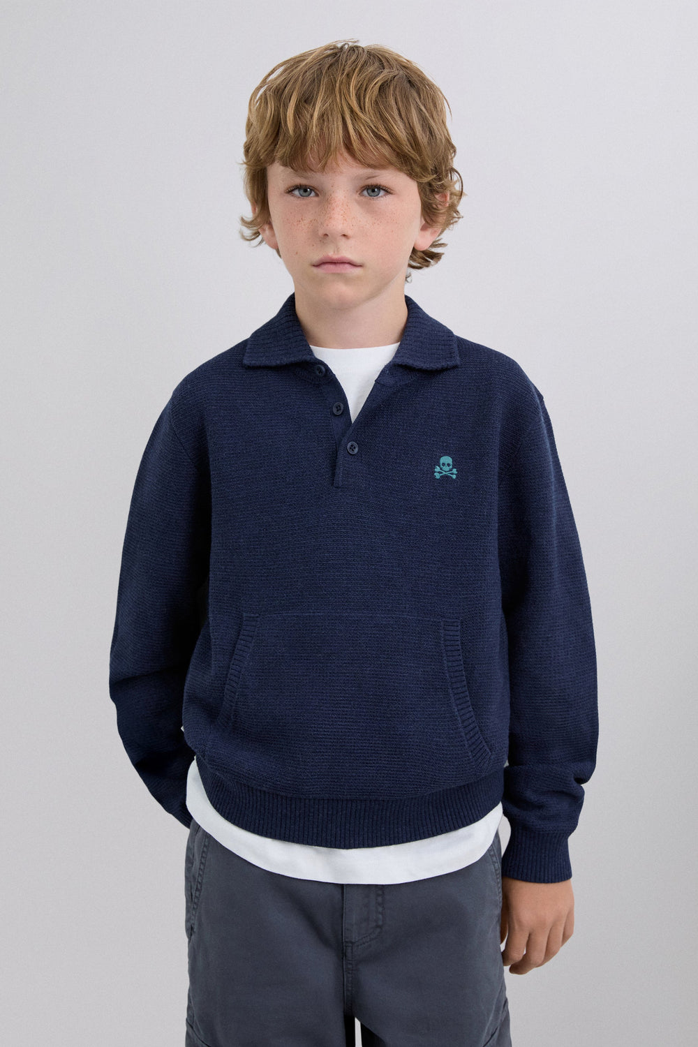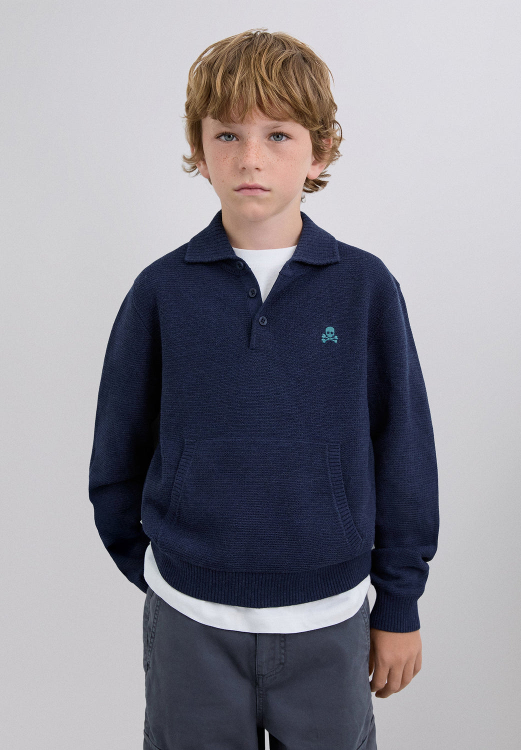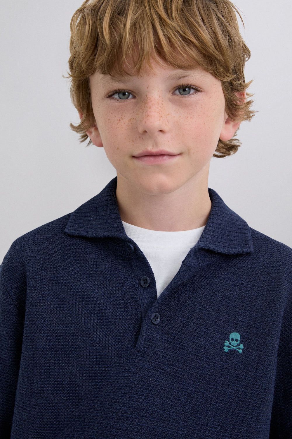 Jersey de punto. Cuello polo. Manga larga. Abotonadura en cuello. Logotipo bordado a contraste.