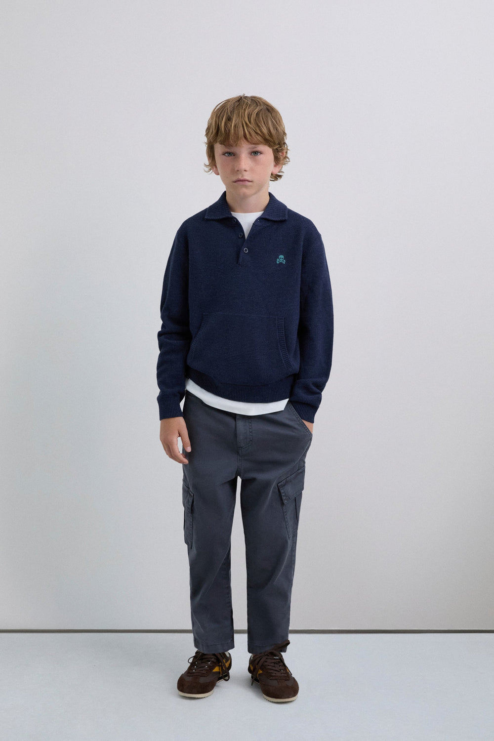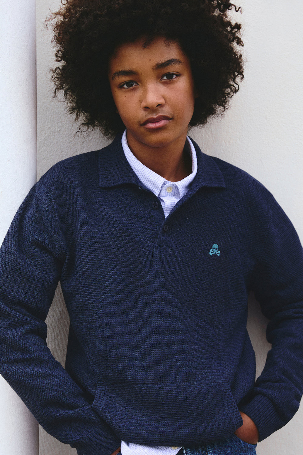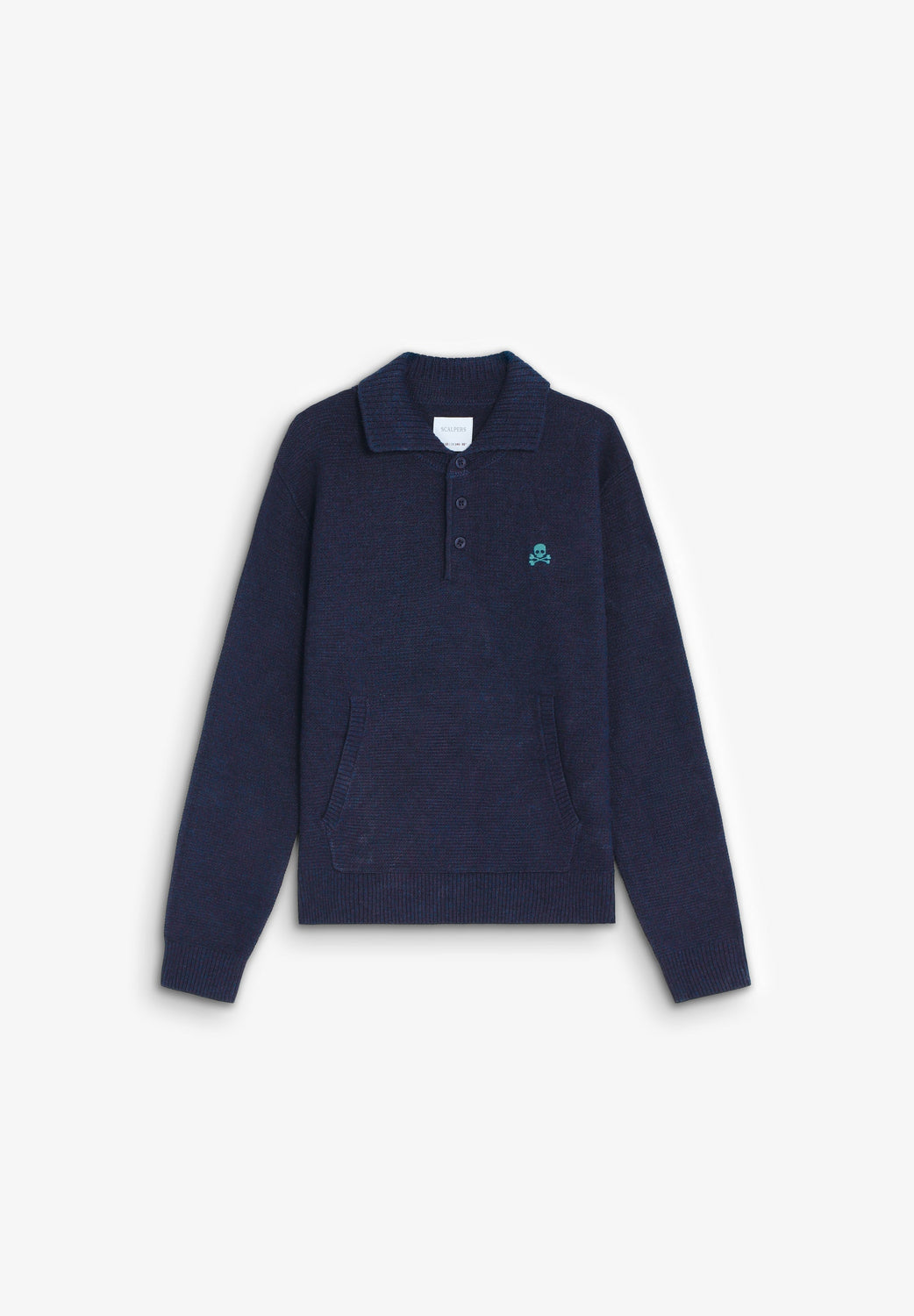 Jersey de punto. Cuello polo. Manga larga. Abotonadura en cuello. Logotipo bordado a contraste.