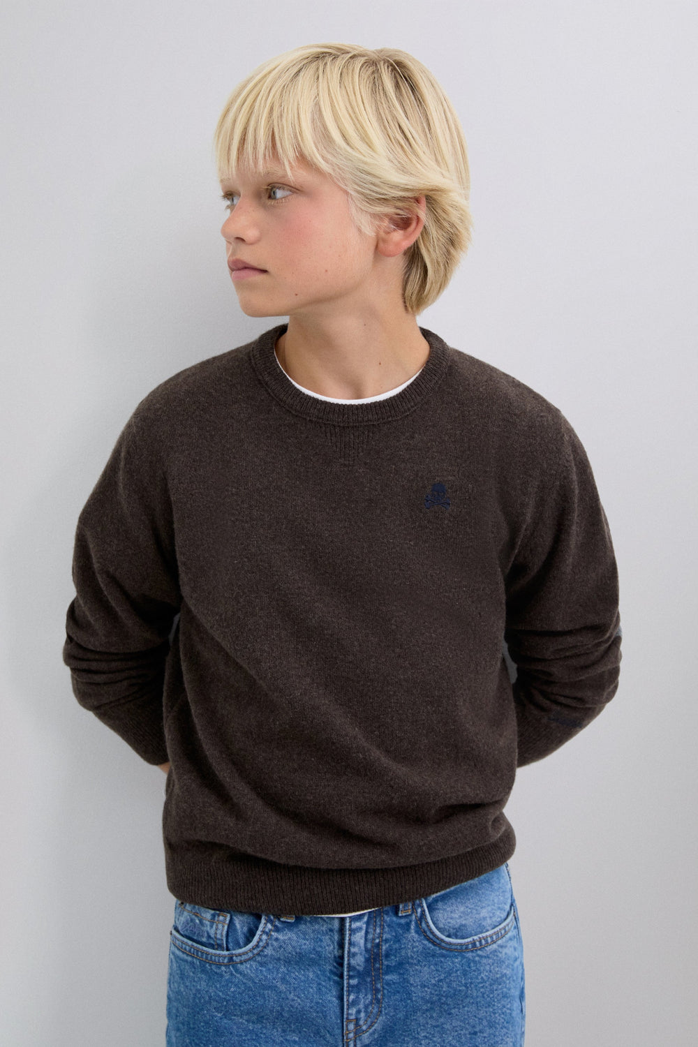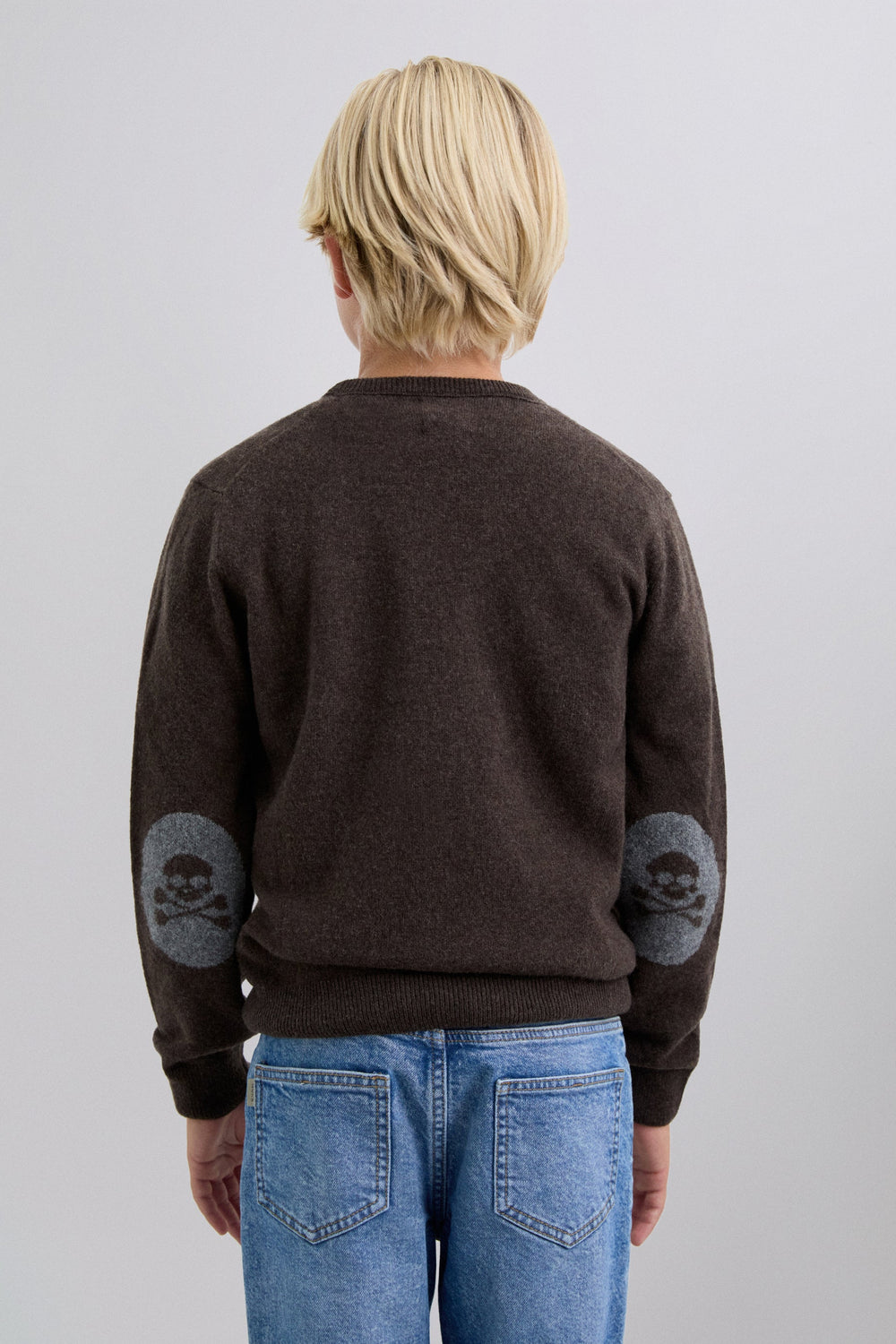 Jersey con calavera en coderas a contraste. Confeccionado en mezcla de lana. Corte Regular fit. Cuello redondo. Manga larga. Calavera pecho a contraste