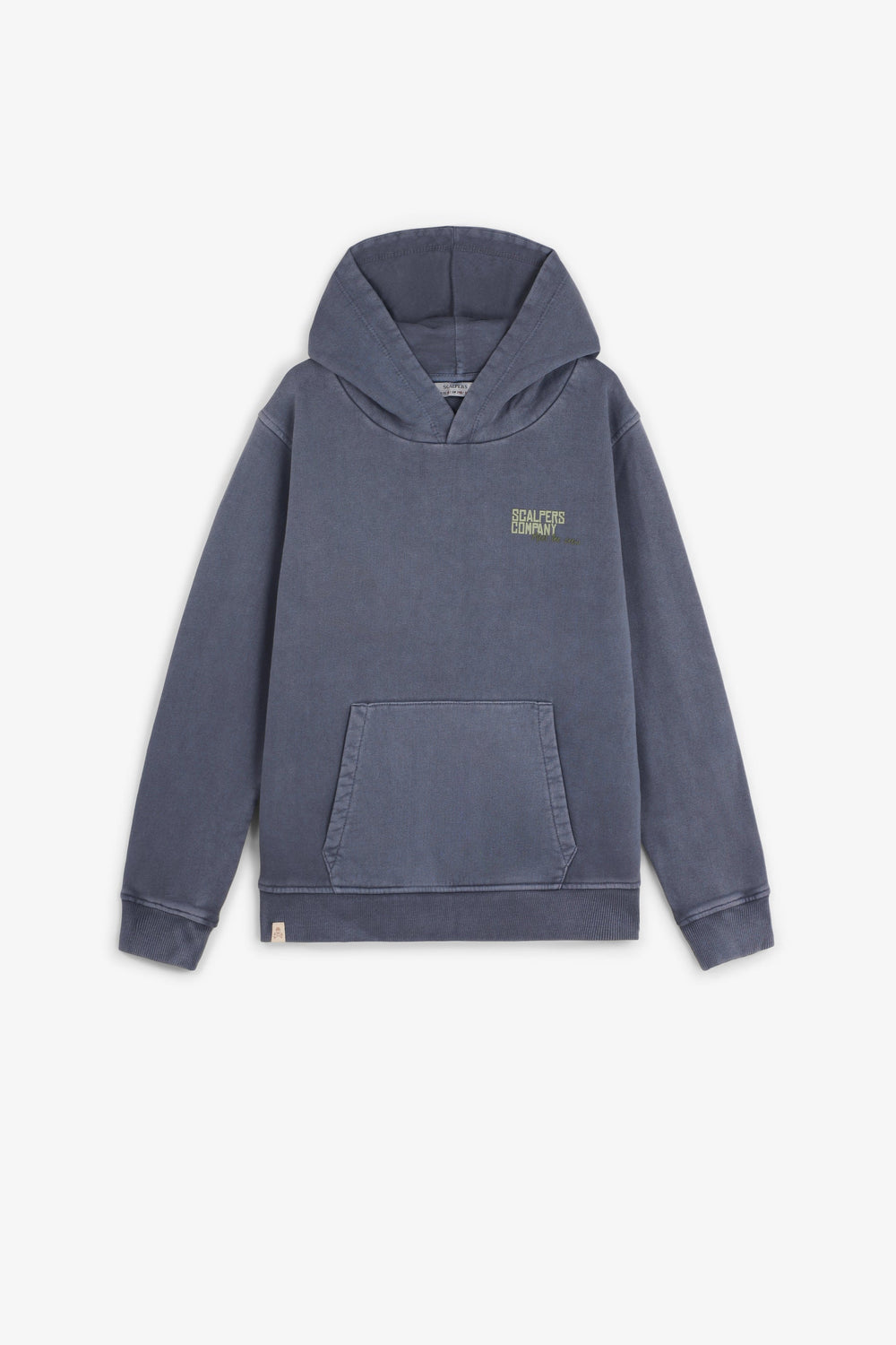 Sudadera con capucha confeccionada en 100% algodón BCI. Print en pecho y espalda. Manga larga con acabados en rib. Bolsillos tipo canguro en frontal. Detalle etiqueta calavera en cintura.