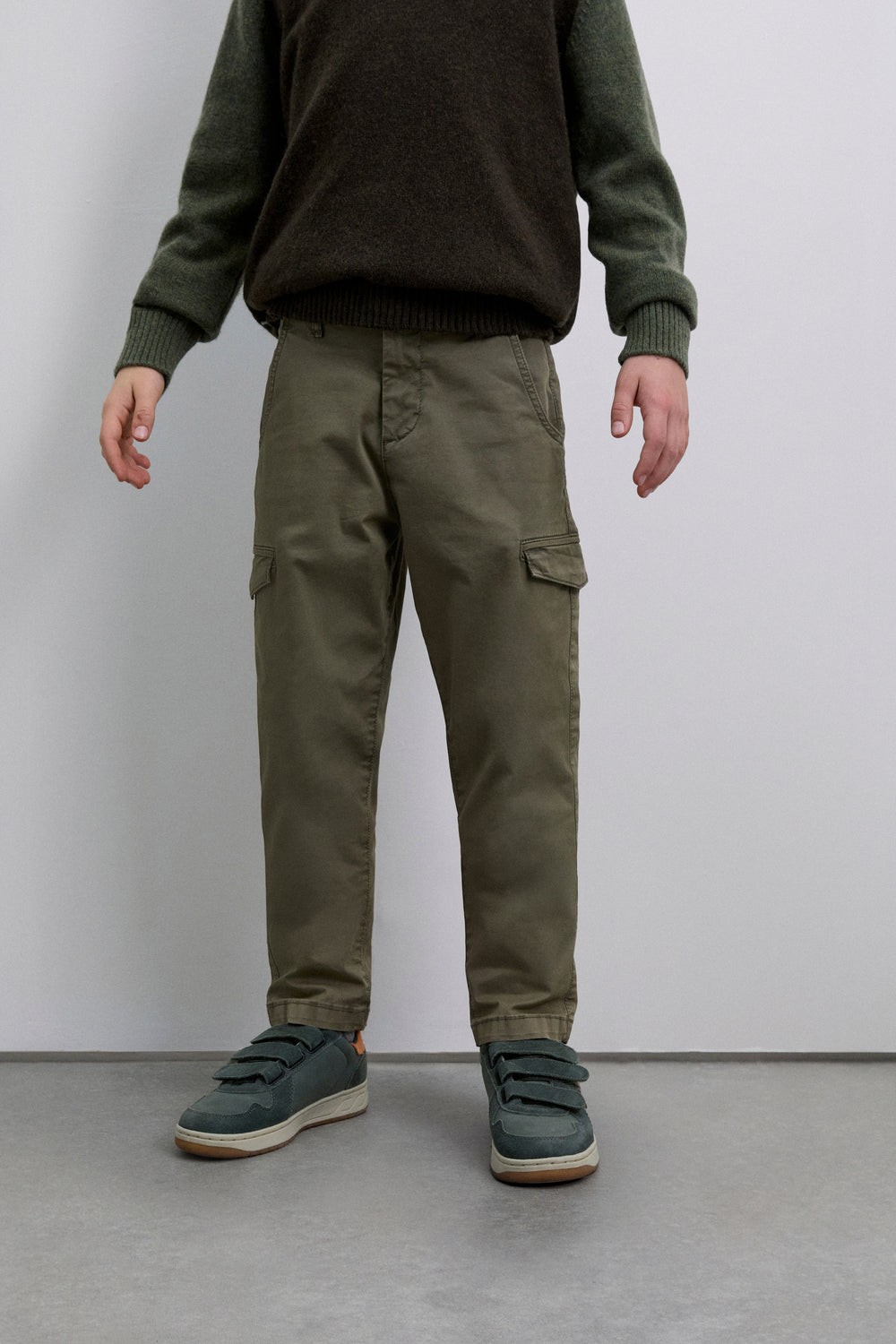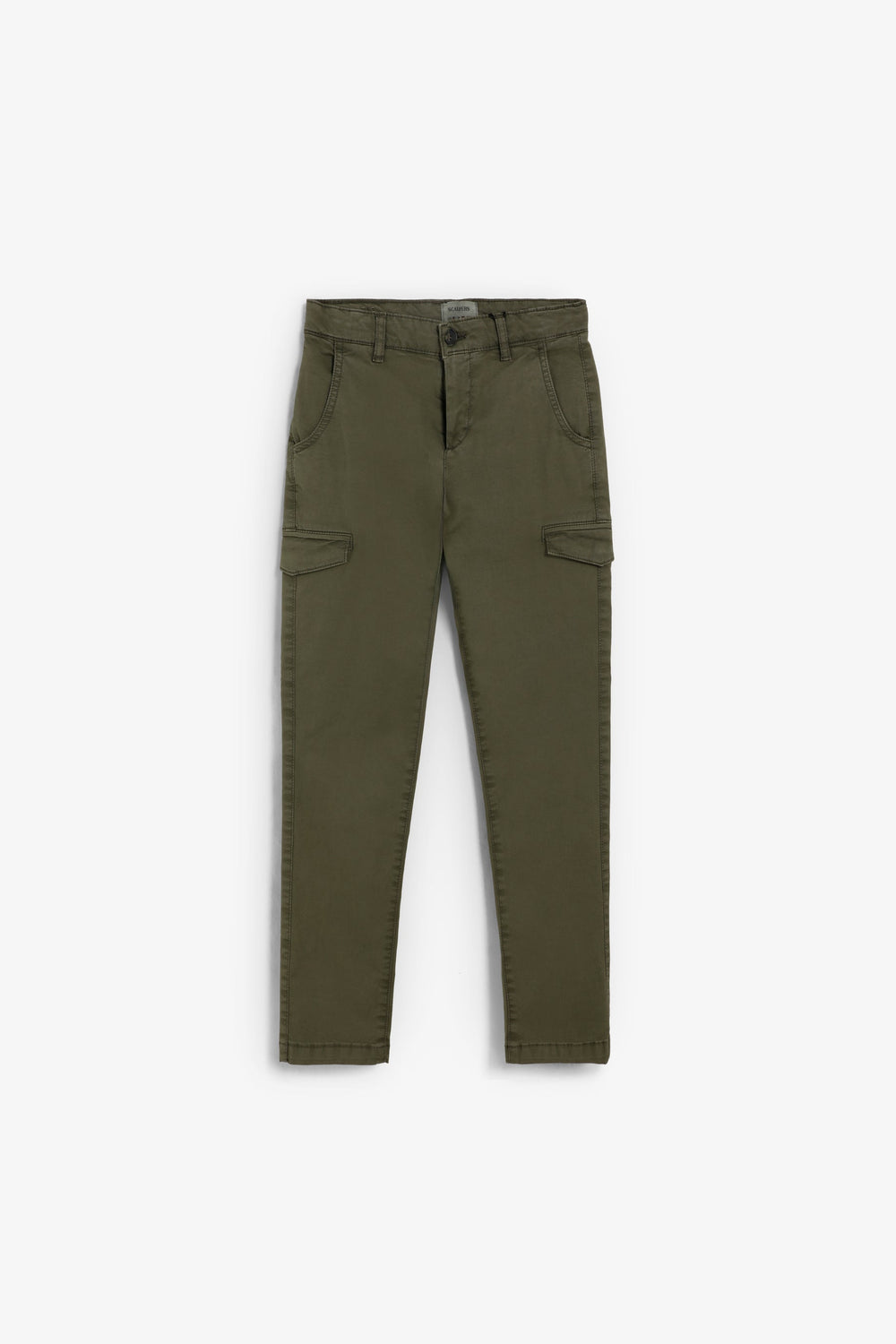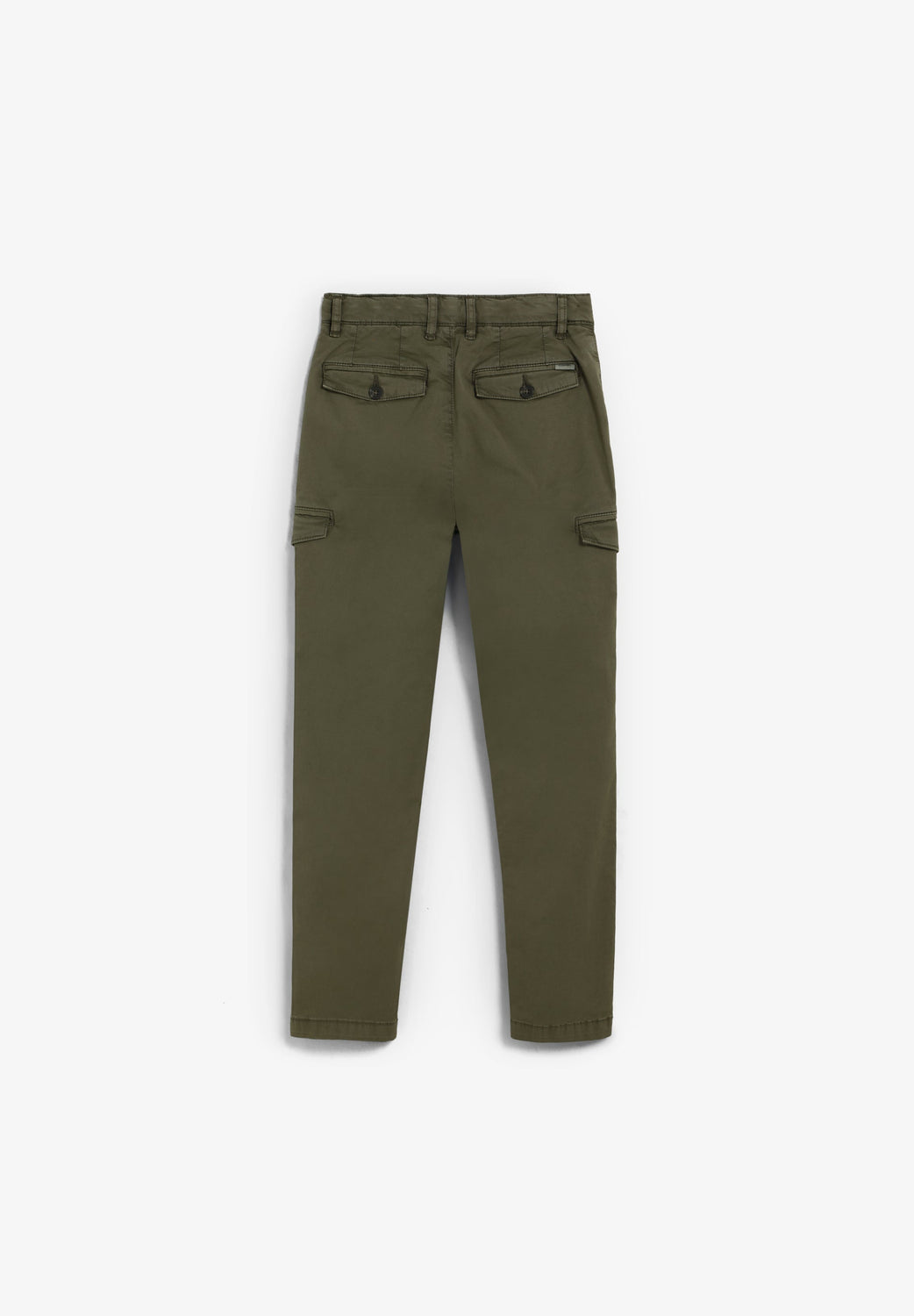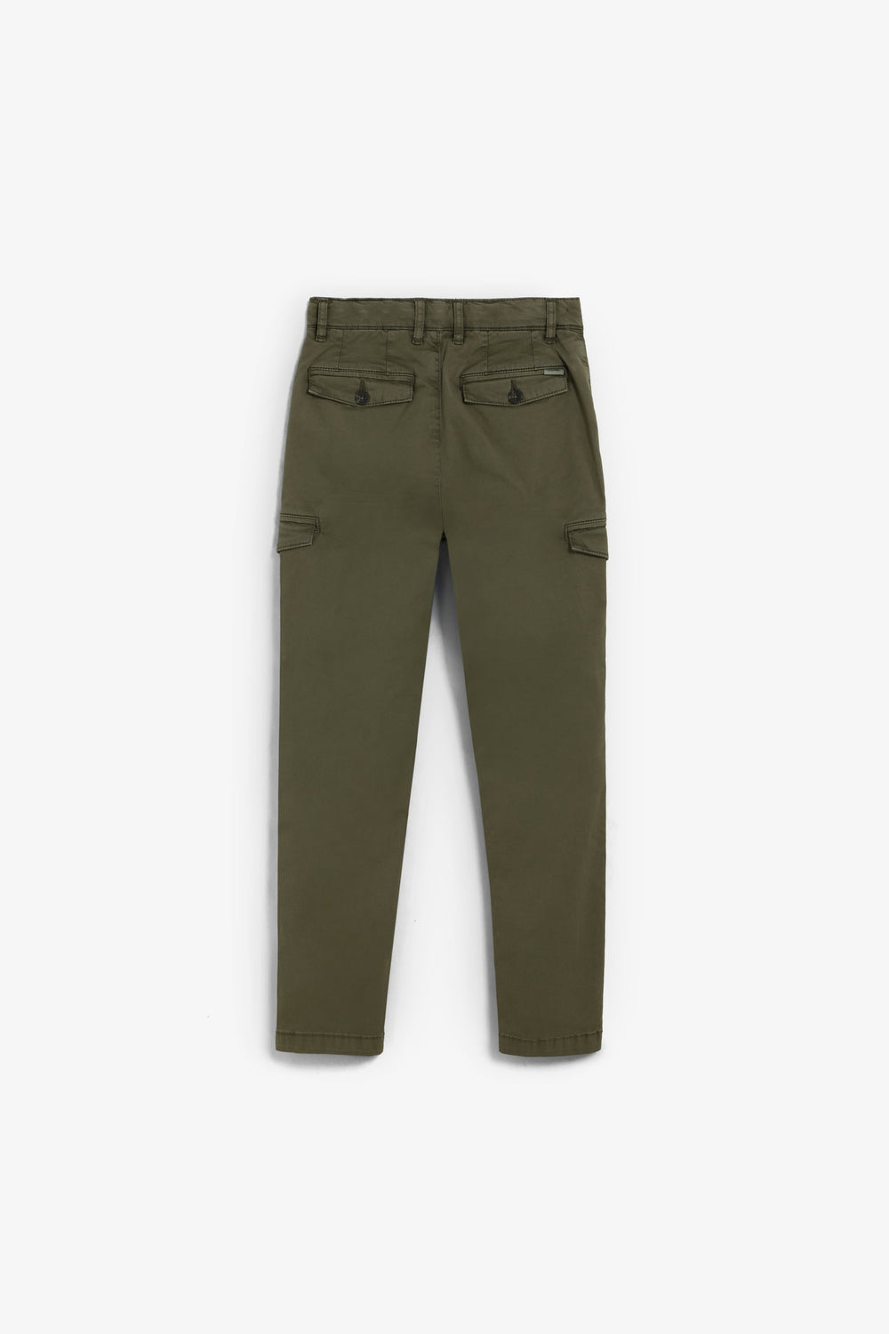Pantalón cargo confeccionado en algodón BCI ligeramente elástico. Regular fit, cierre con botón y cremallera y bolsillos laterales. Trabillas en cintura y bolsillos en pernera con tapeta.