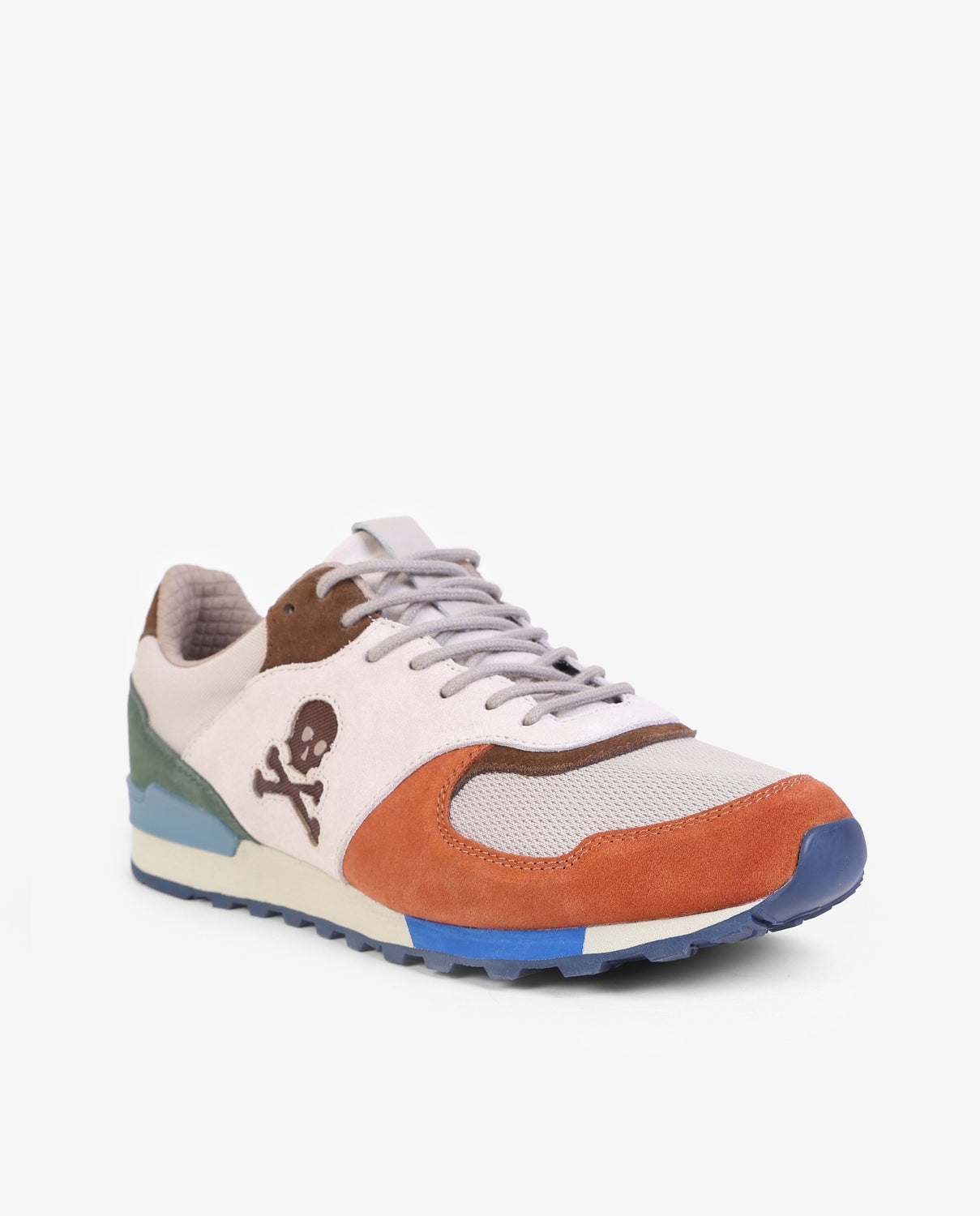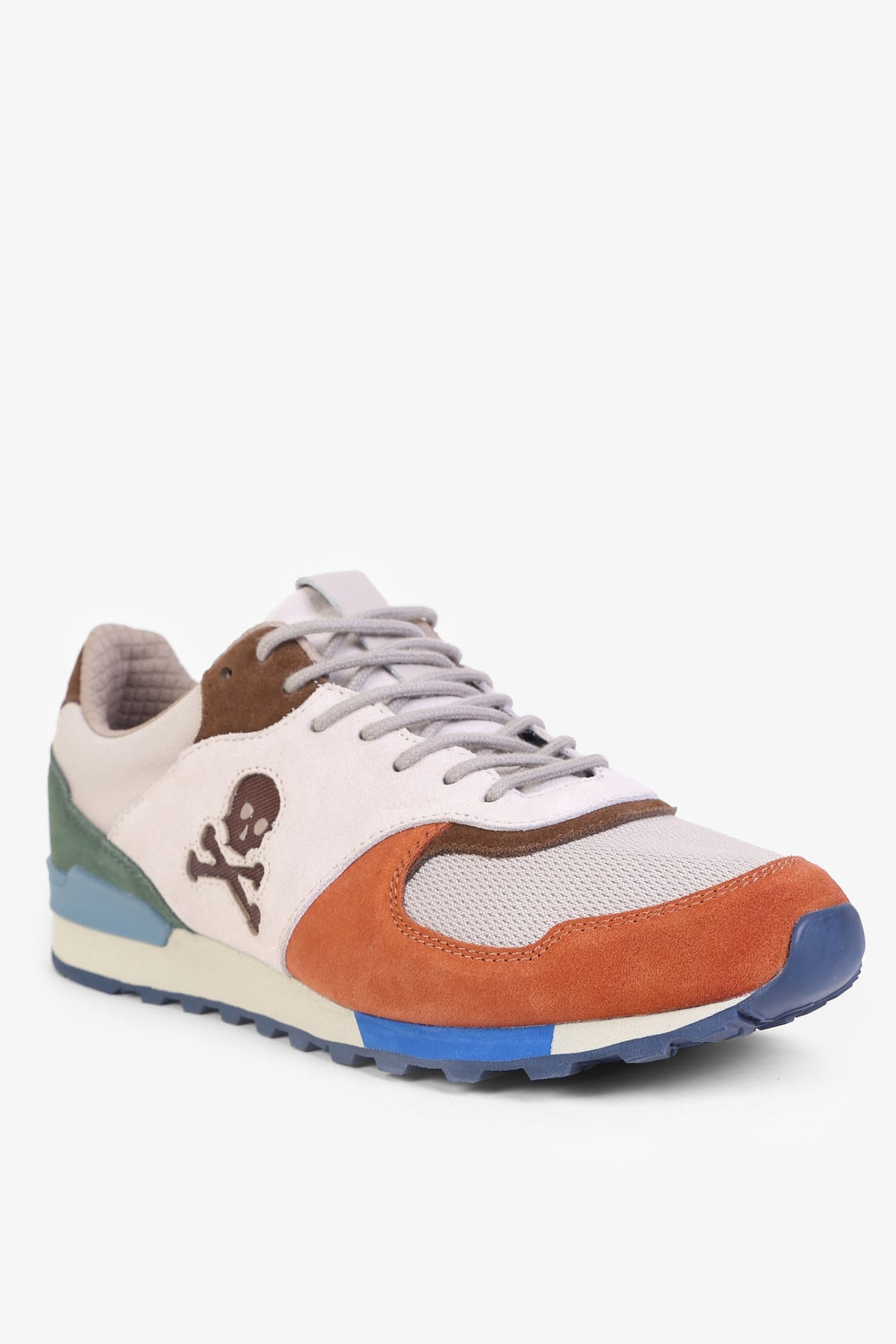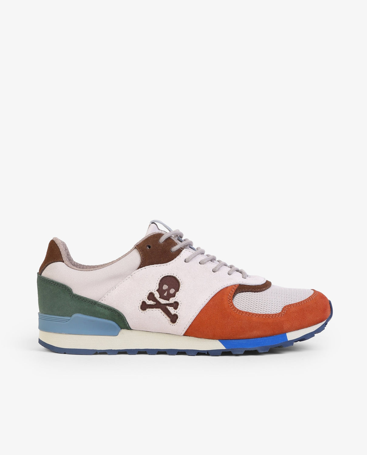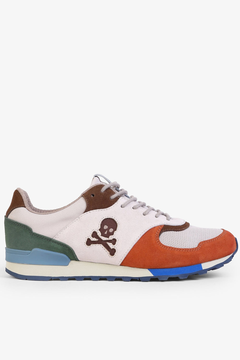 Zapatillas combinadas confeccionadas en serraje y piel. Cierre con cordones a tono. Suela de goma y estabilizador a contraste. Detalle de calavera en el lateral.